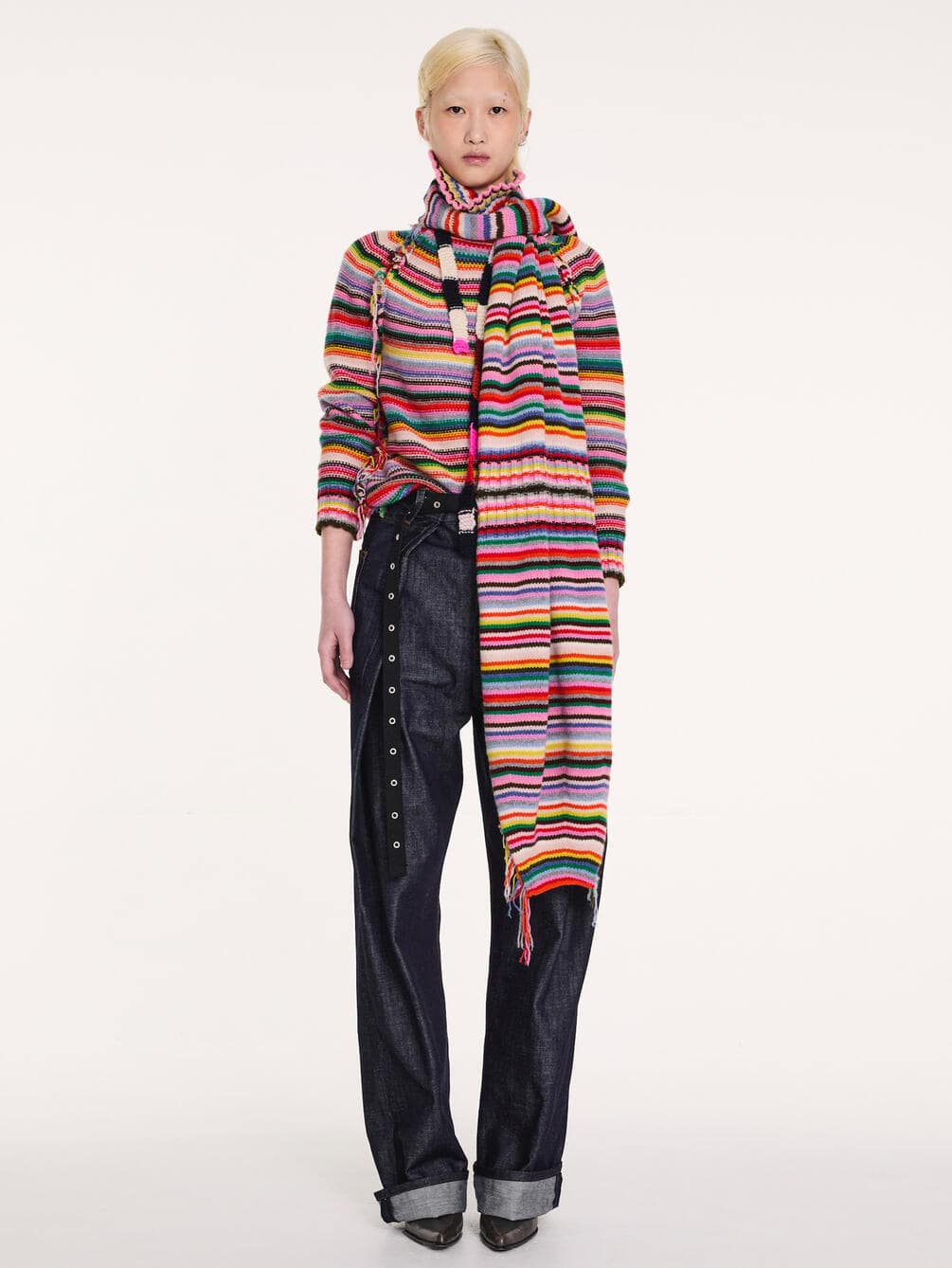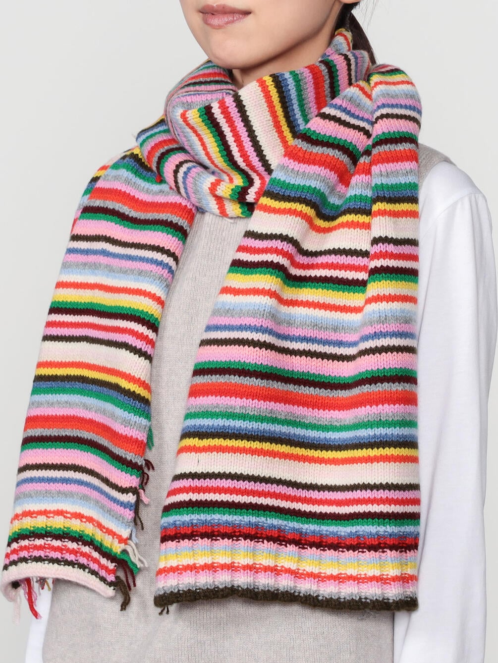 - マルチカラーのボーダーニットマフラー