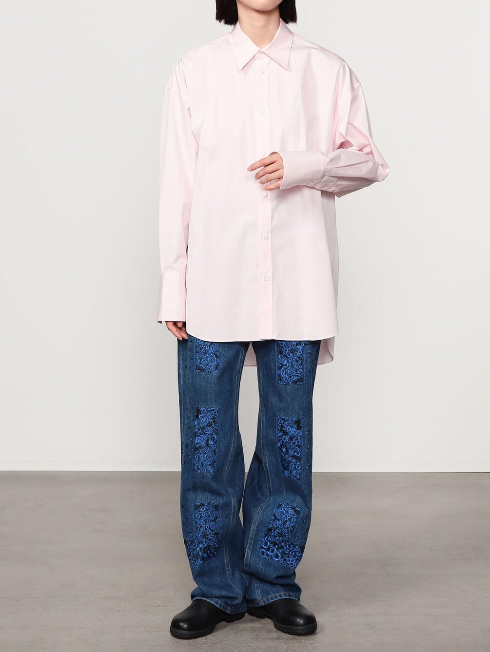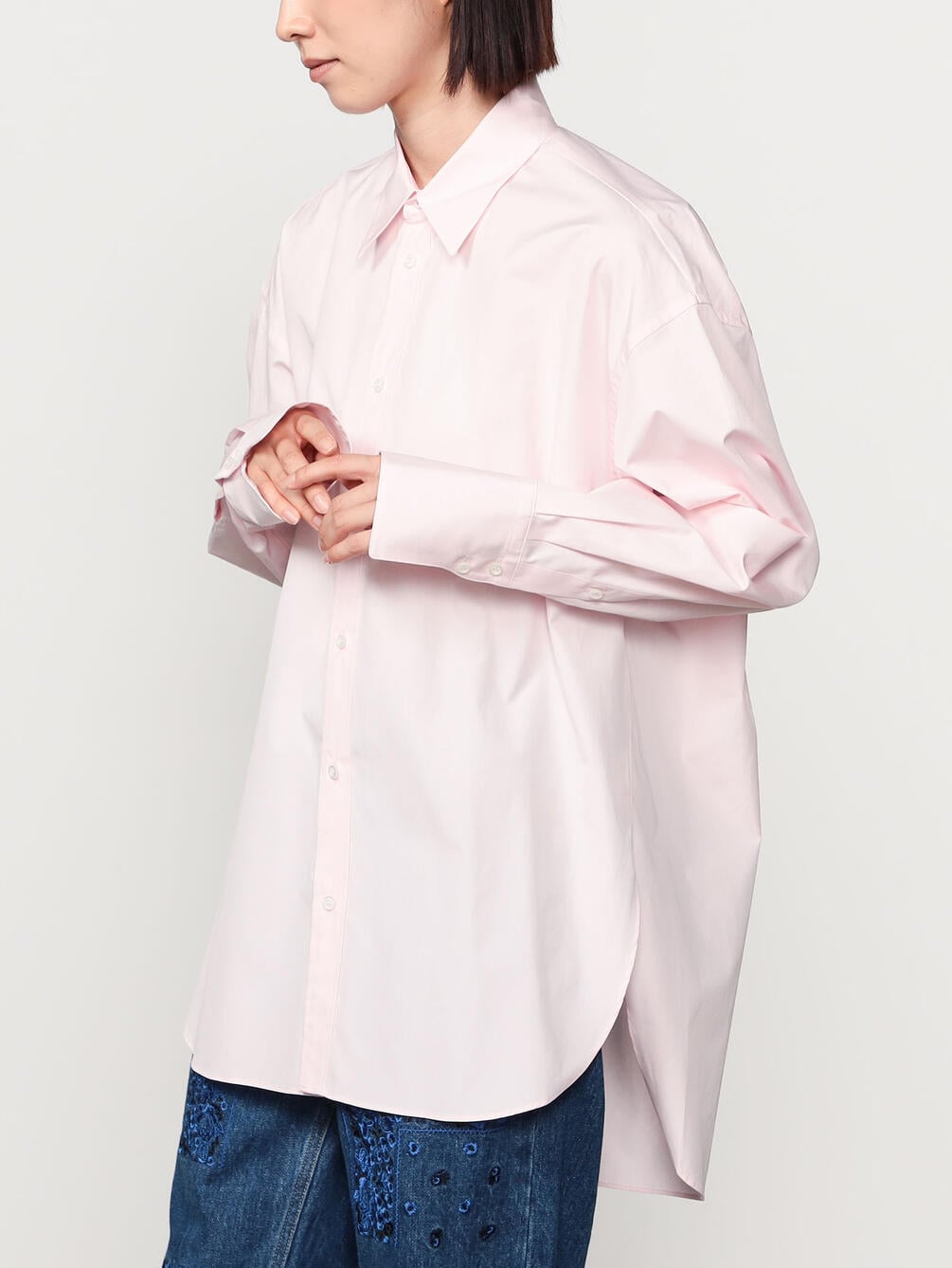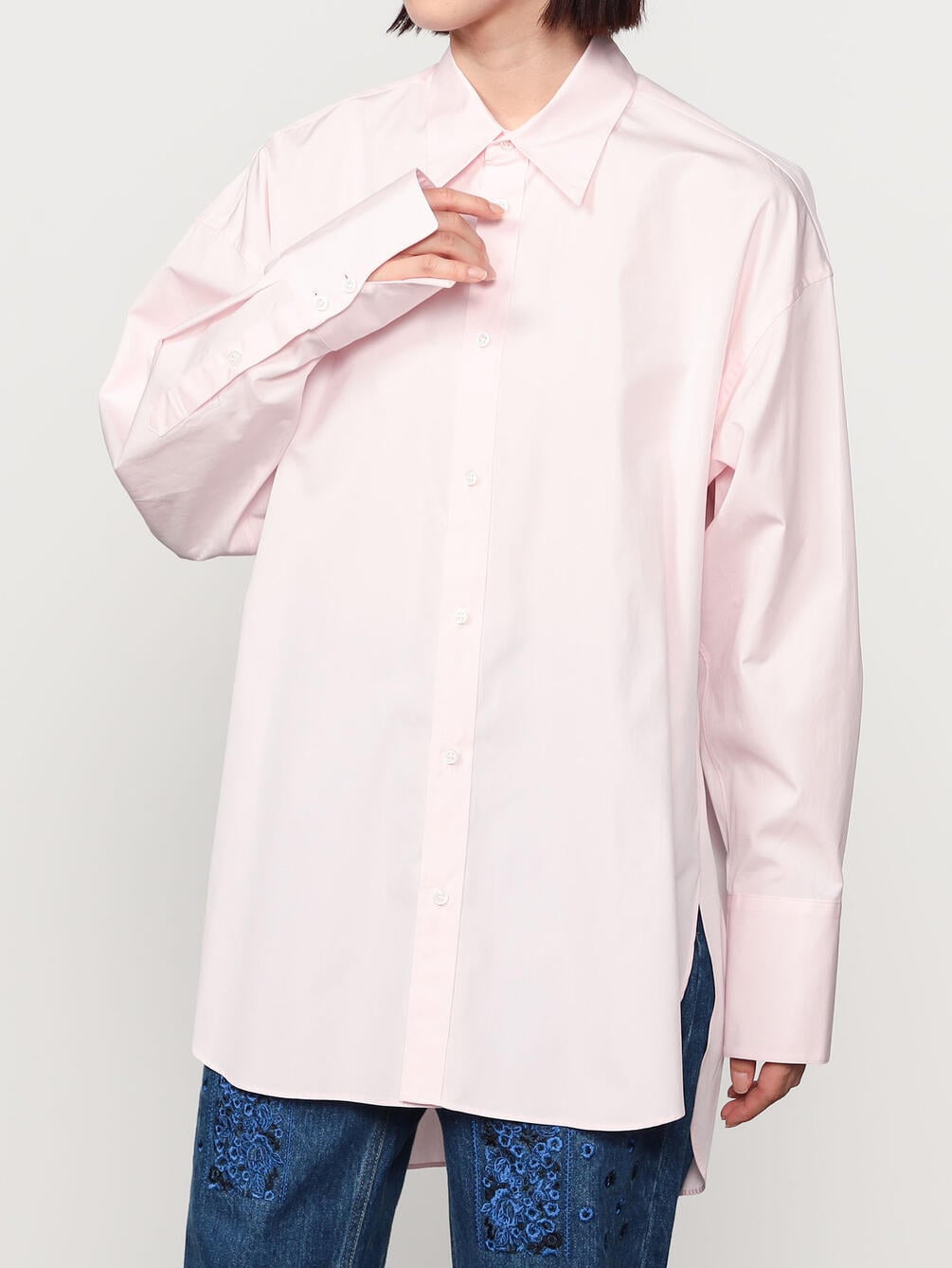 - 長袖のオーバーサイズシャツ