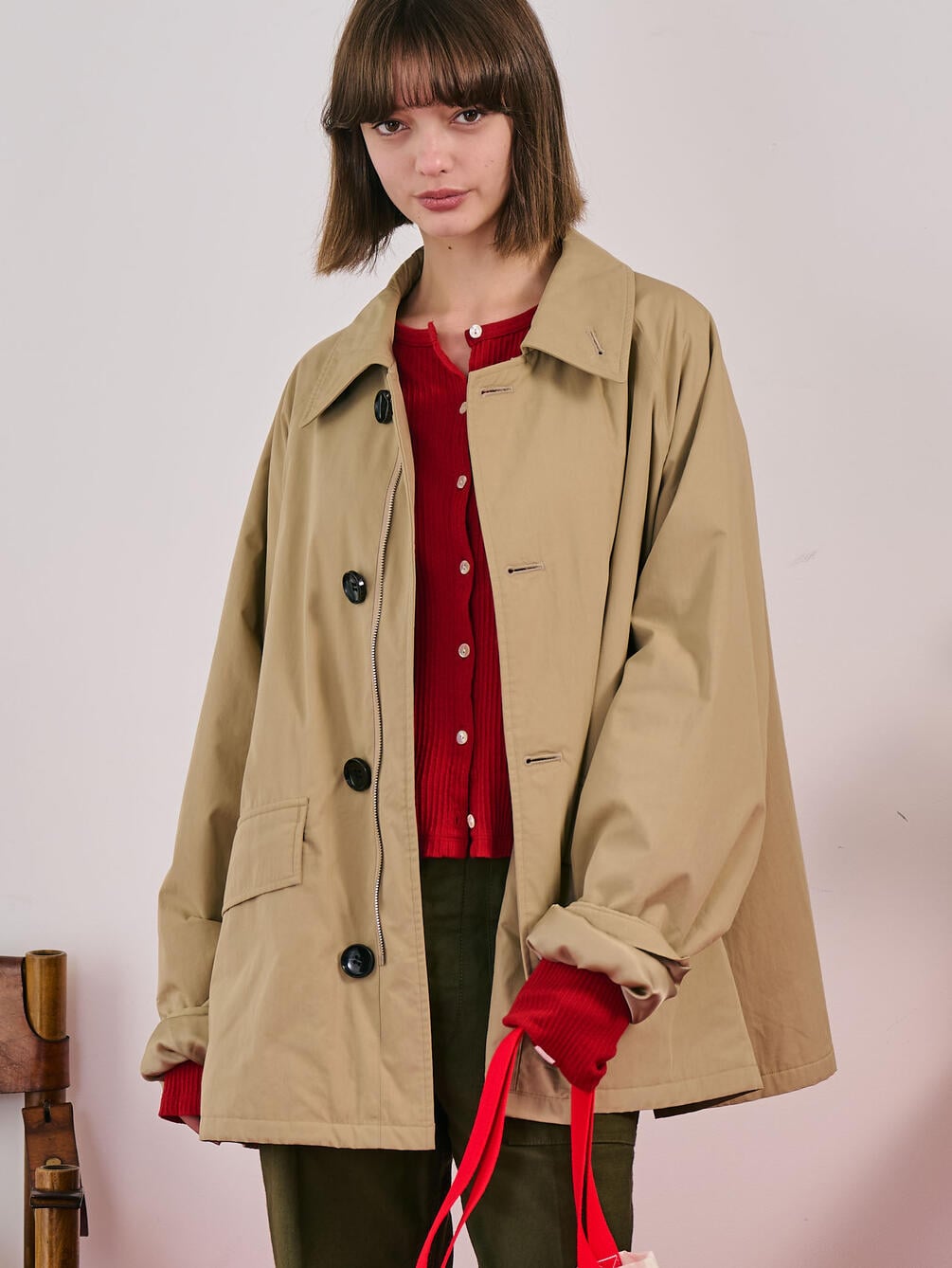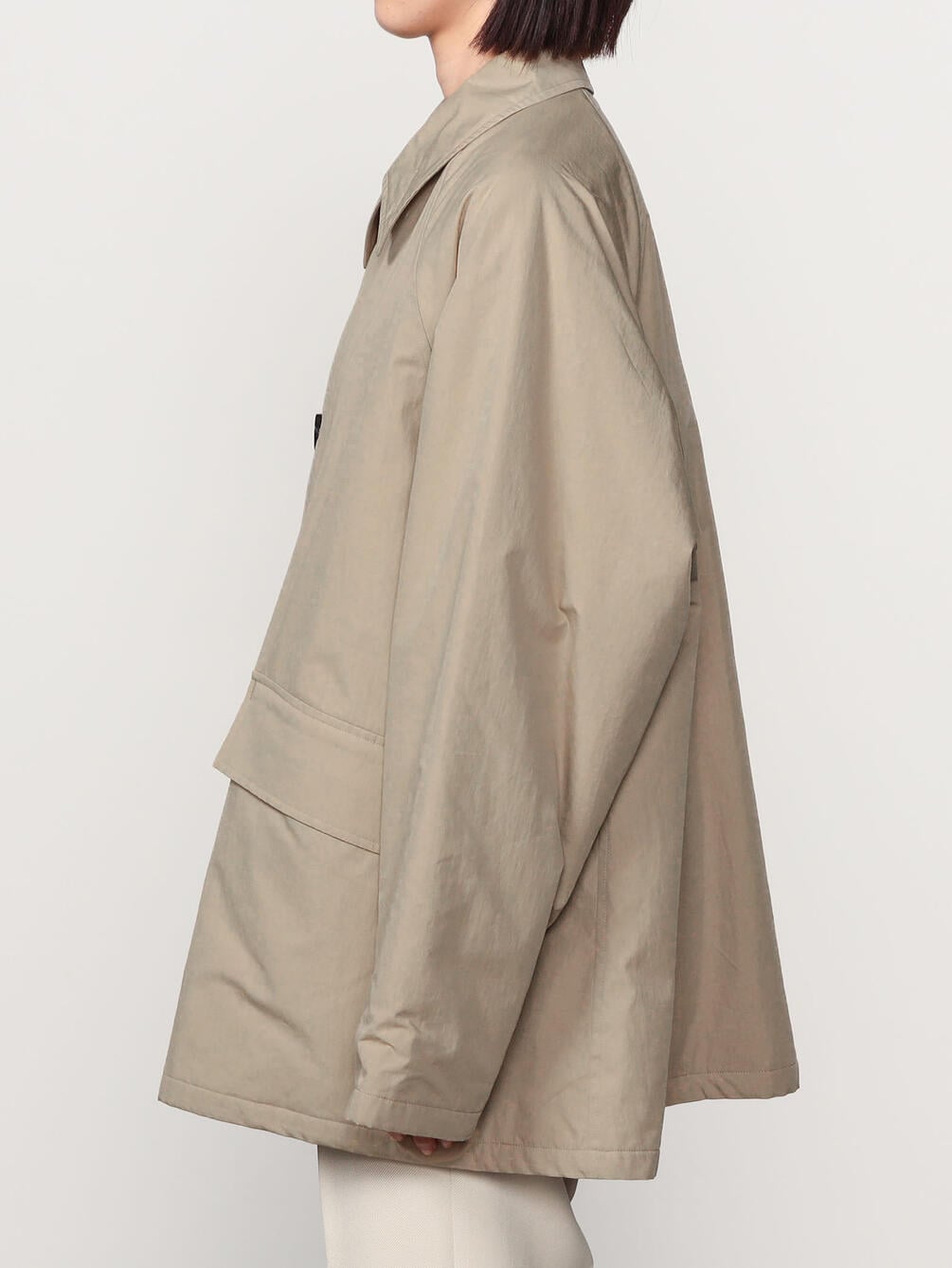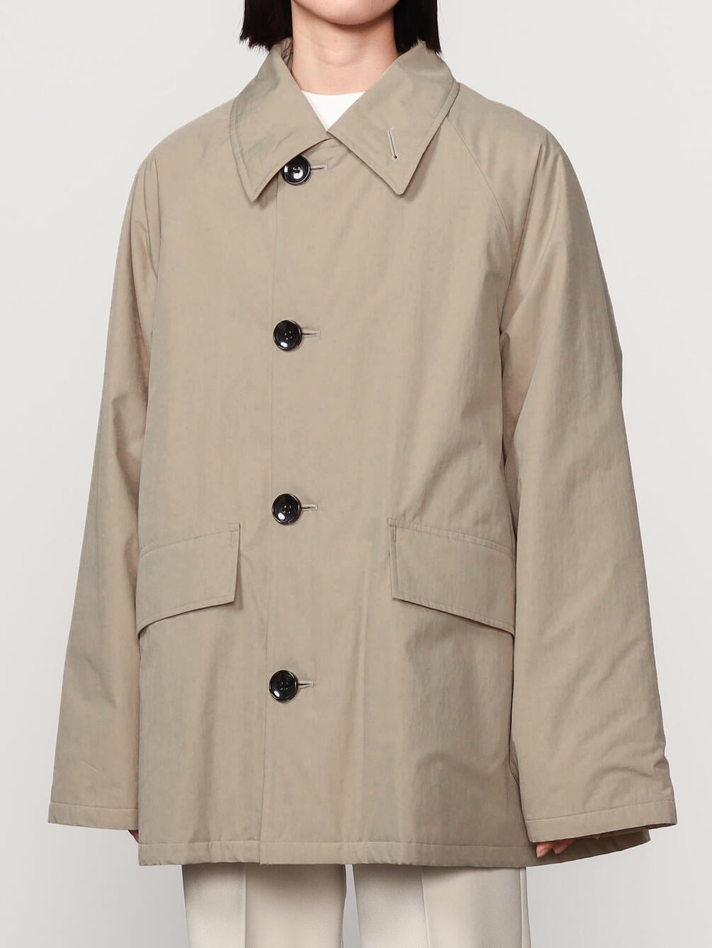 - ステンカラーの中綿ミドルコート