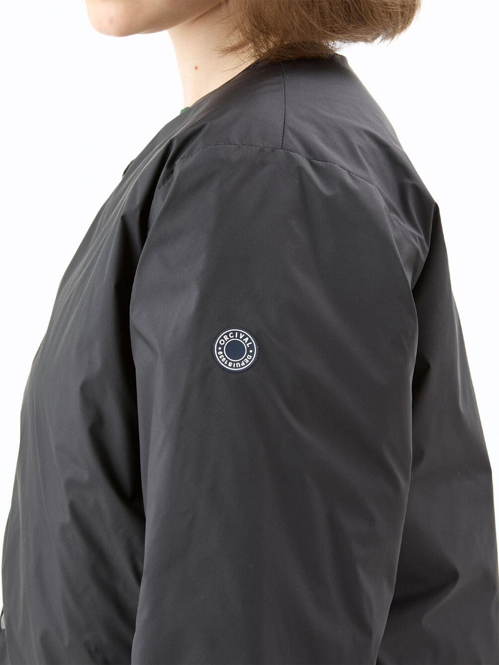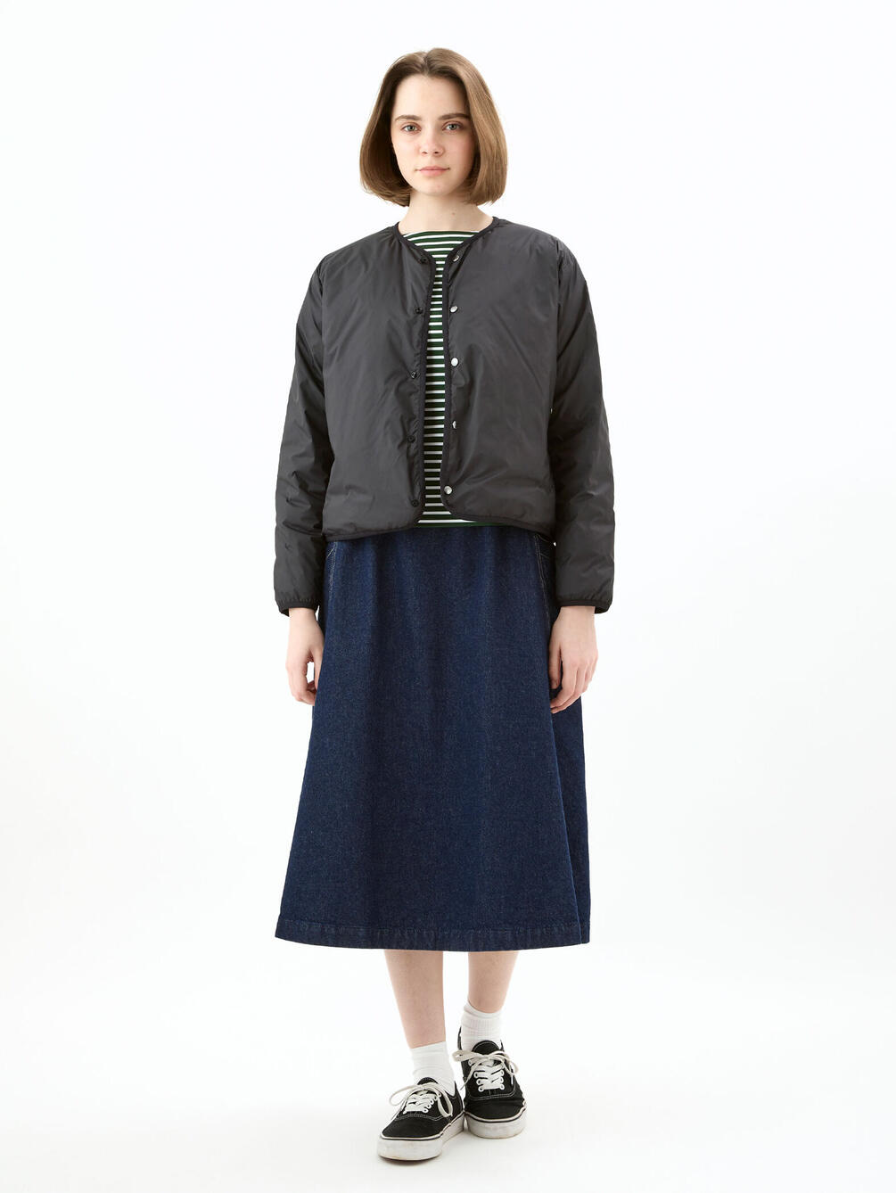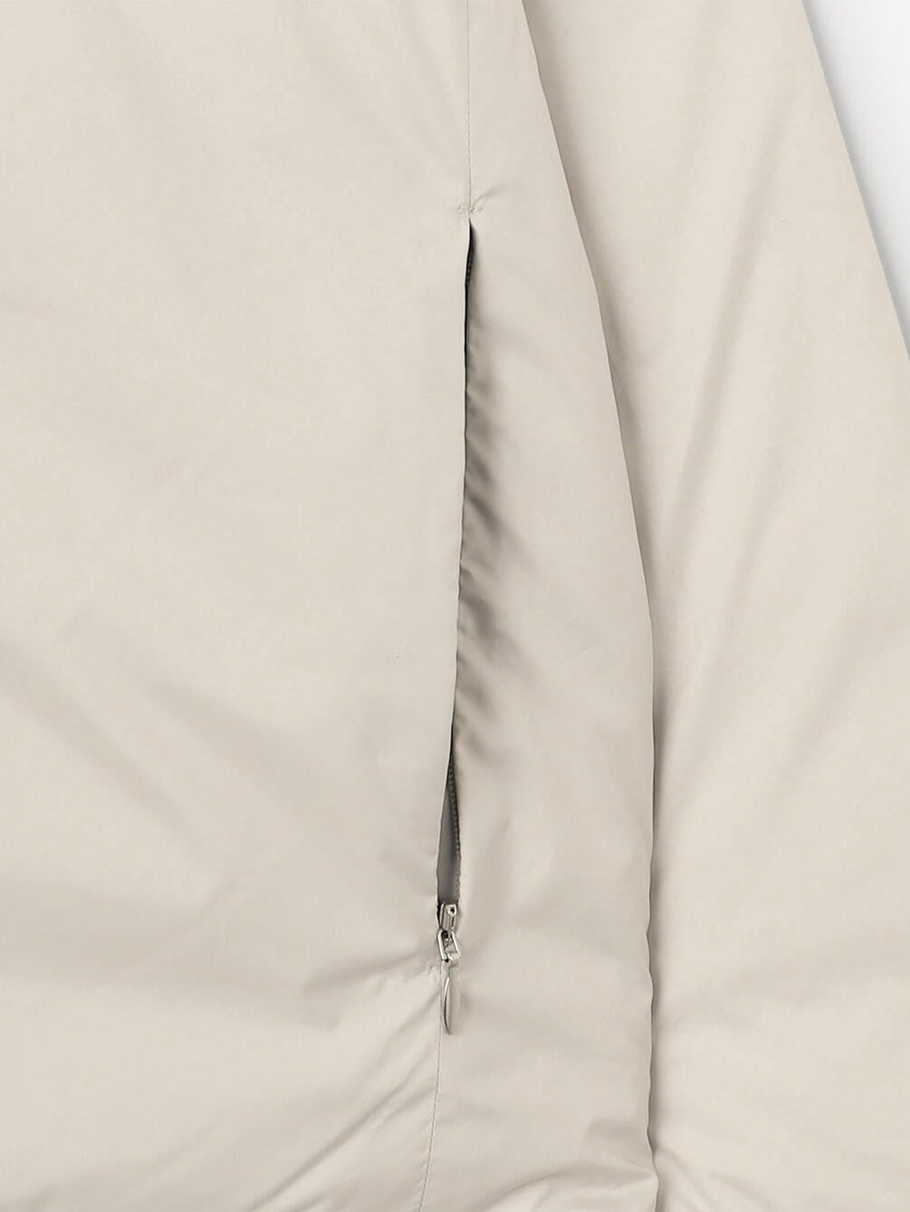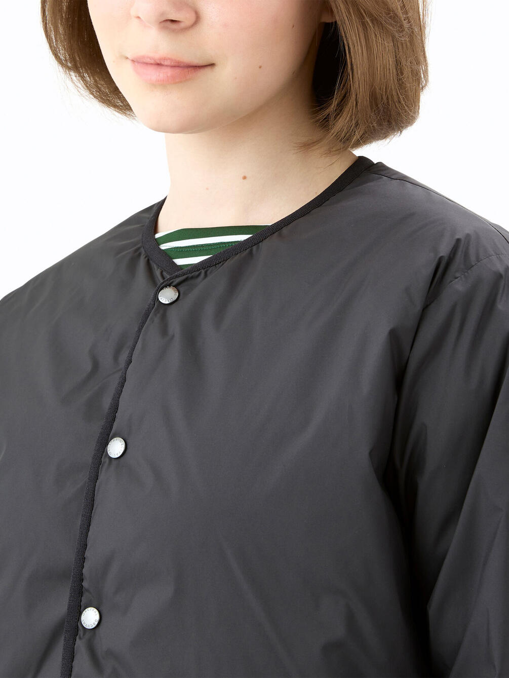 | 素材 | 表地:ポリエステル100% 裏地:ナイロン100% 詰物:ダウン90% フェザー10% パイピング部分:ポリエステル90% ポリウレタン10% |