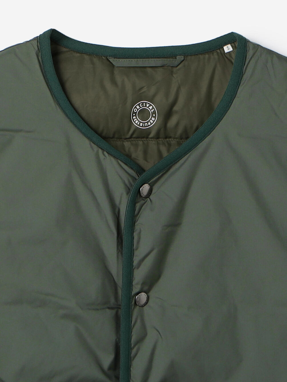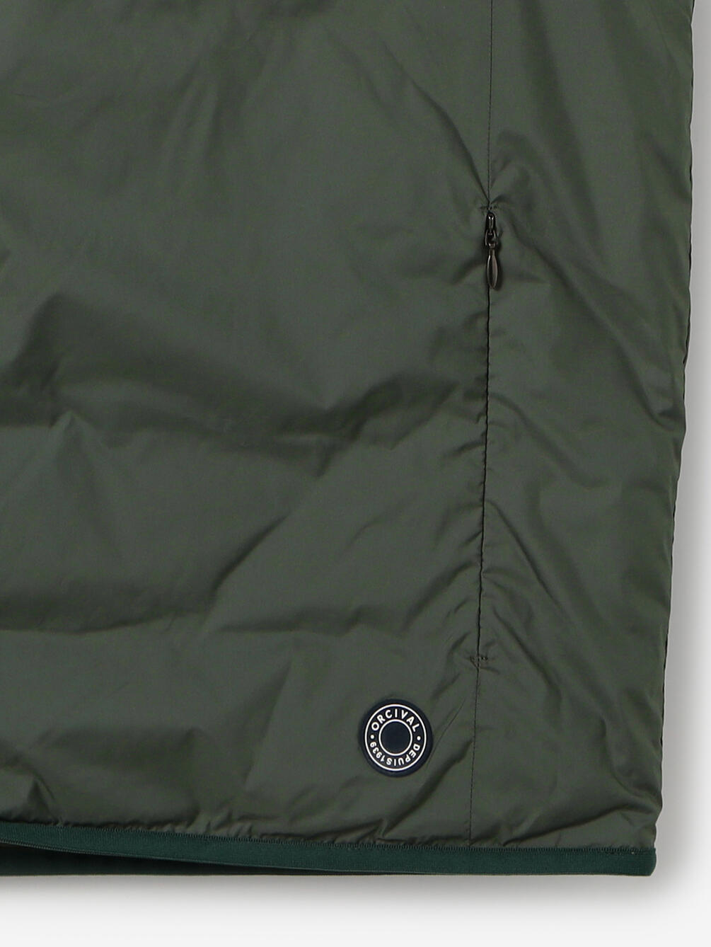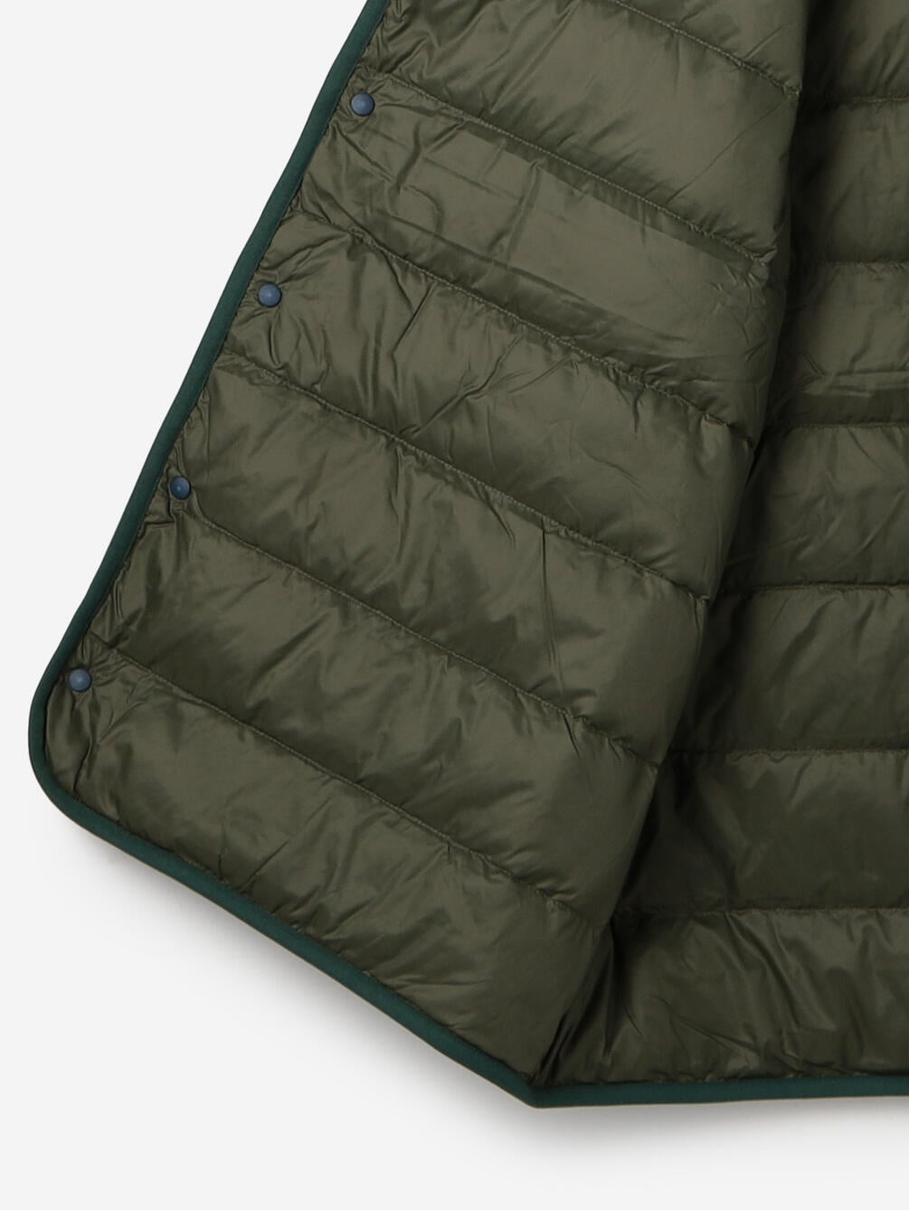 素材 | 表地:ポリエステル100% 裏地:ナイロン100% 詰物:ダウン90% フェザー10% パイピング部分:ポリエステル90% ポリウレタン10% |