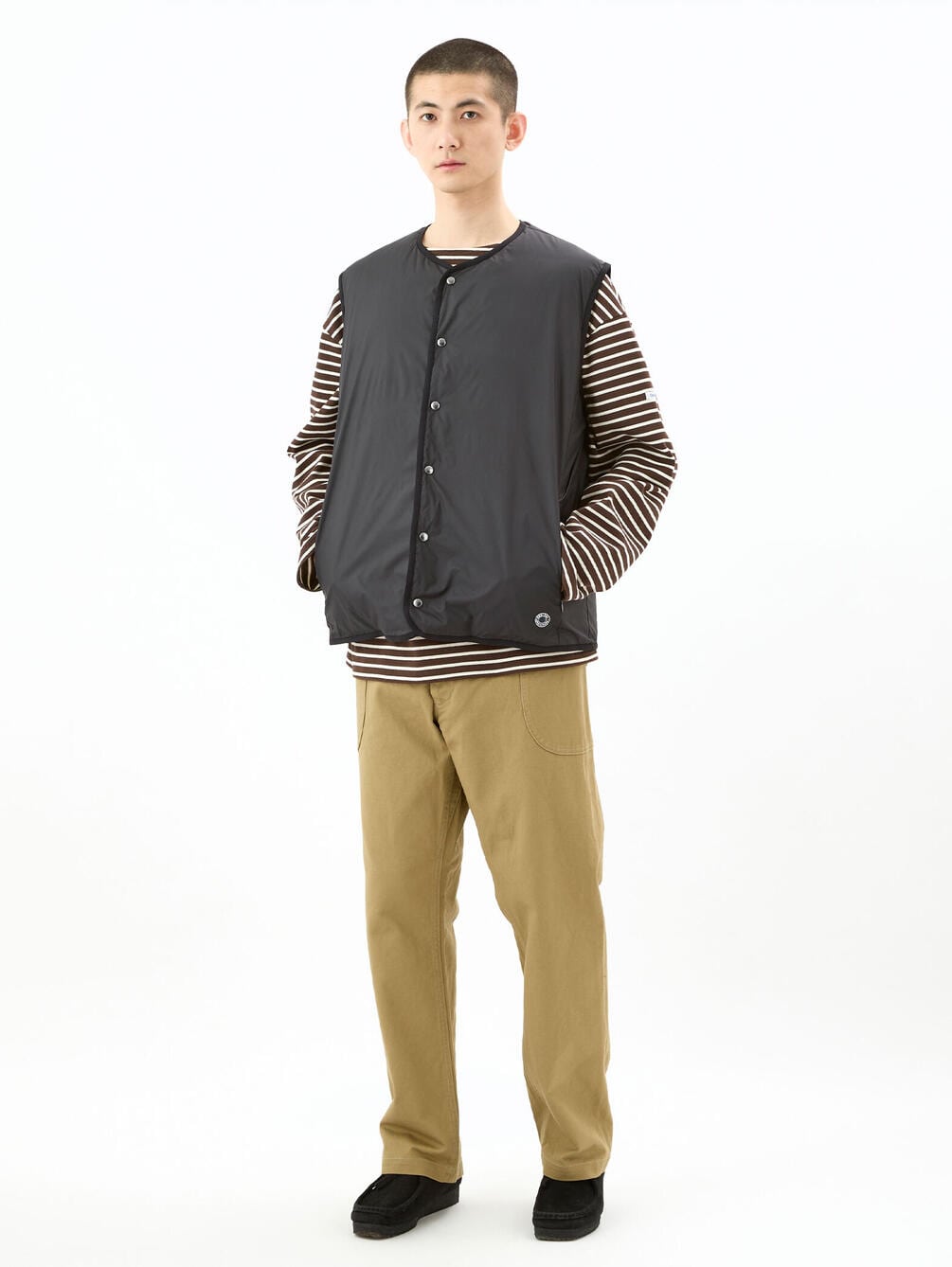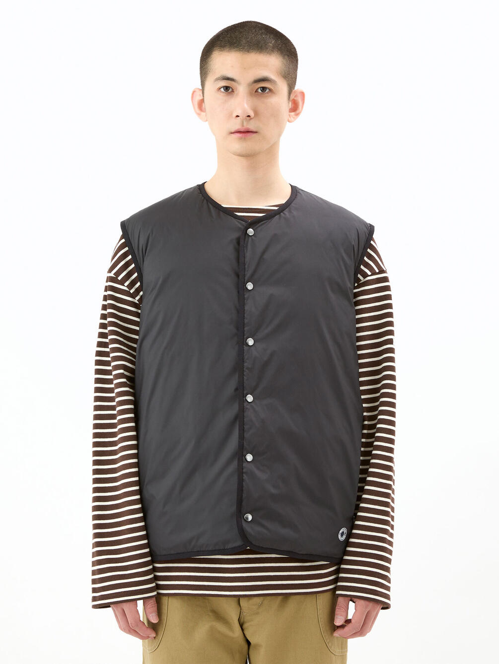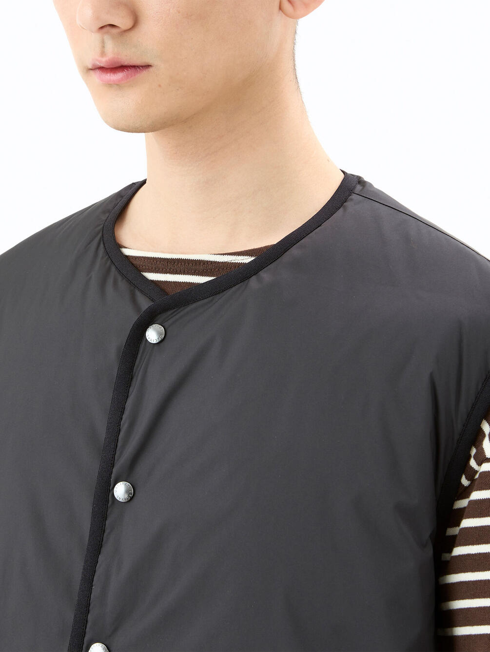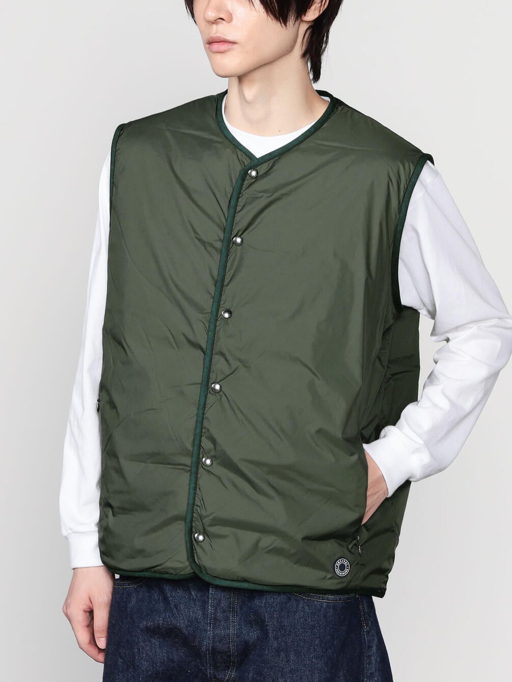 素材 | 表地:ポリエステル100% 裏地:ナイロン100% 詰物:ダウン90% フェザー10% パイピング部分:ポリエステル90% ポリウレタン10% |
