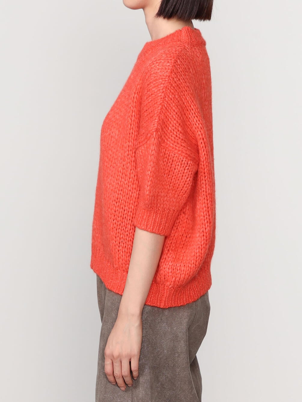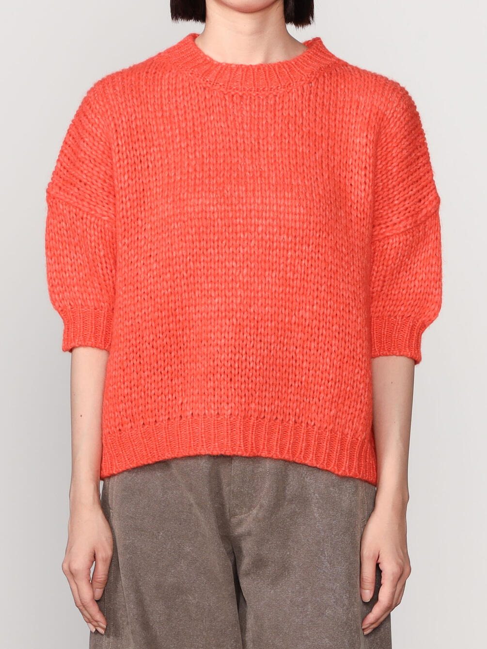 - 5分袖のクルーネックニット