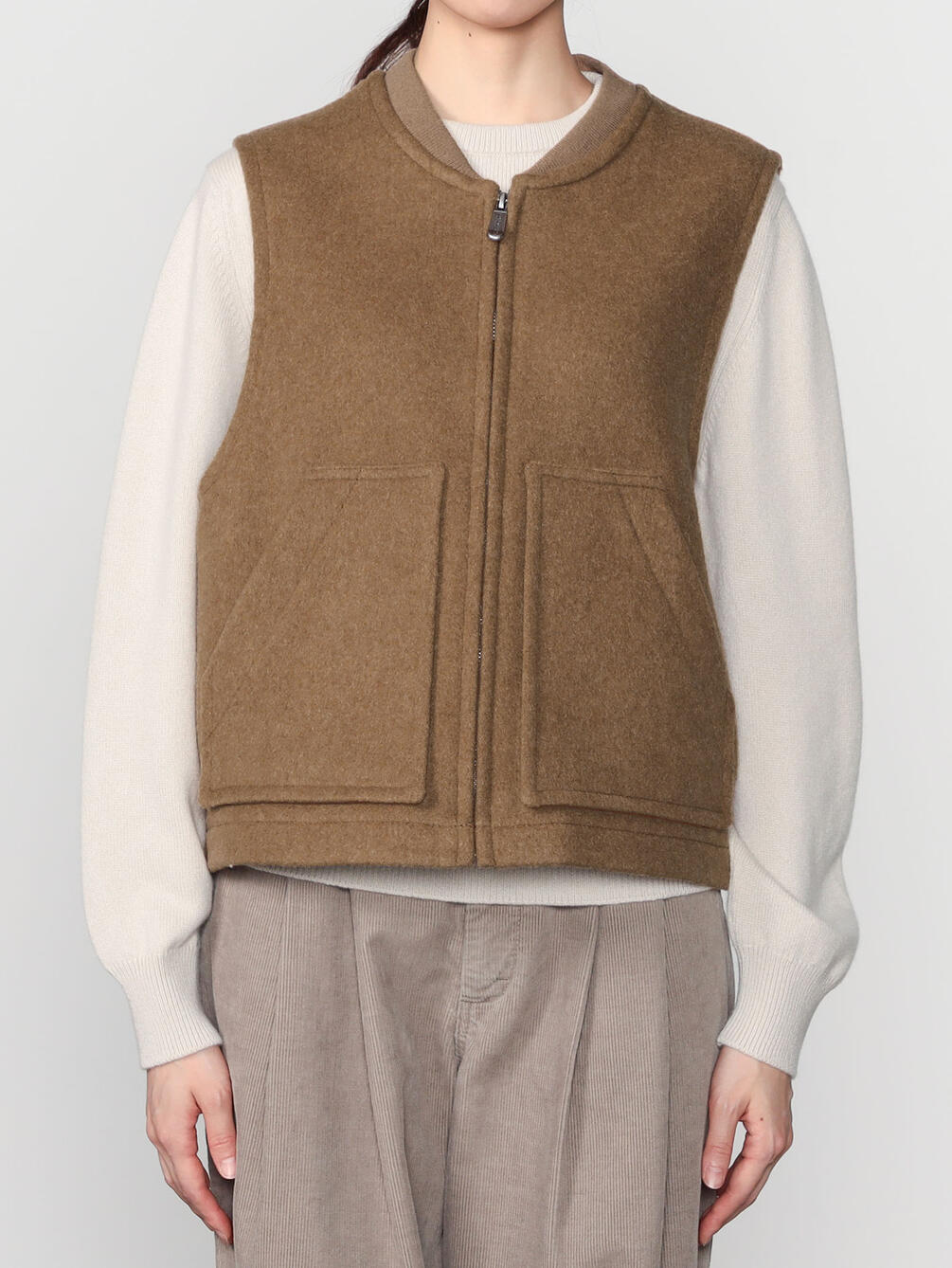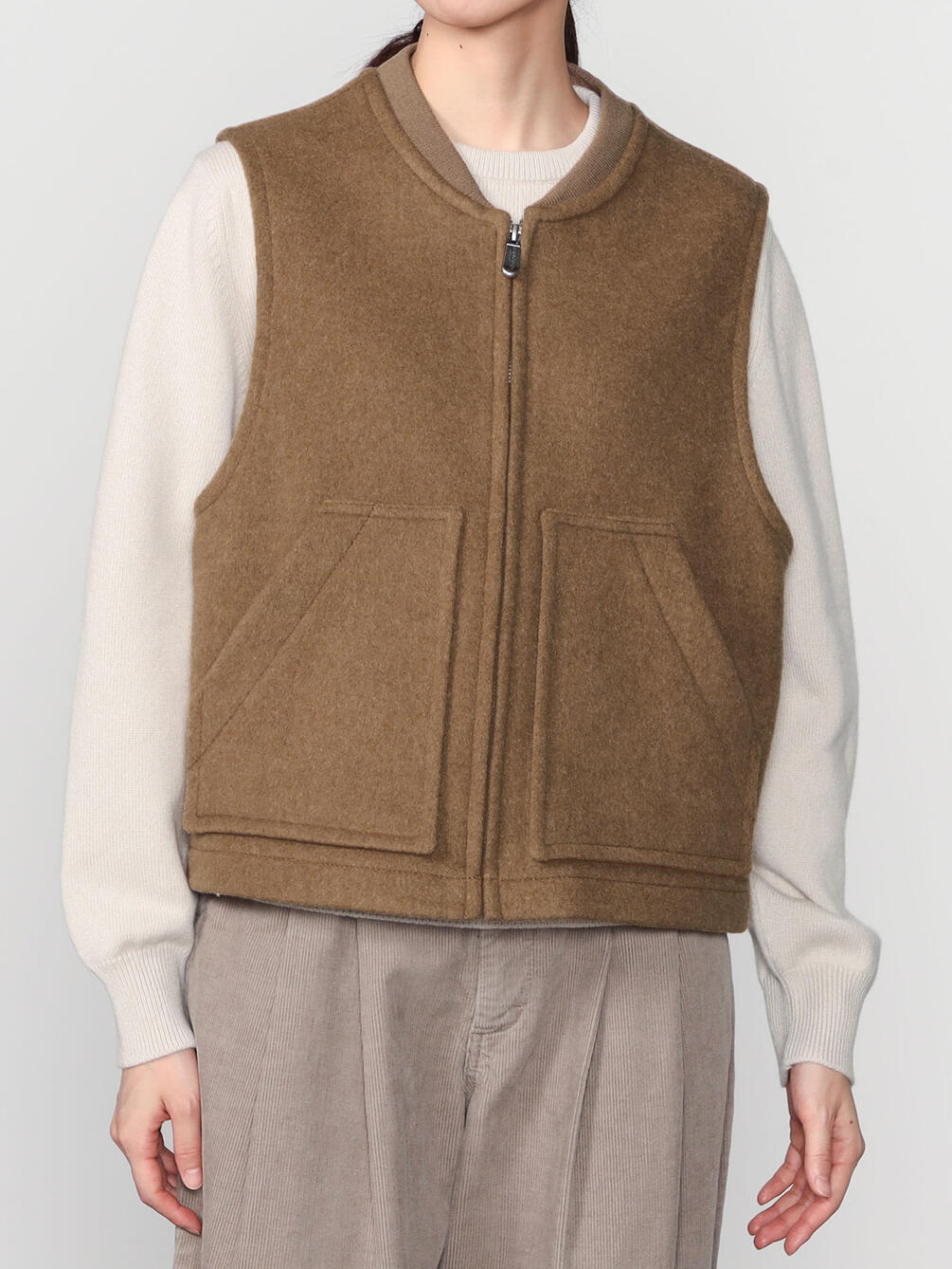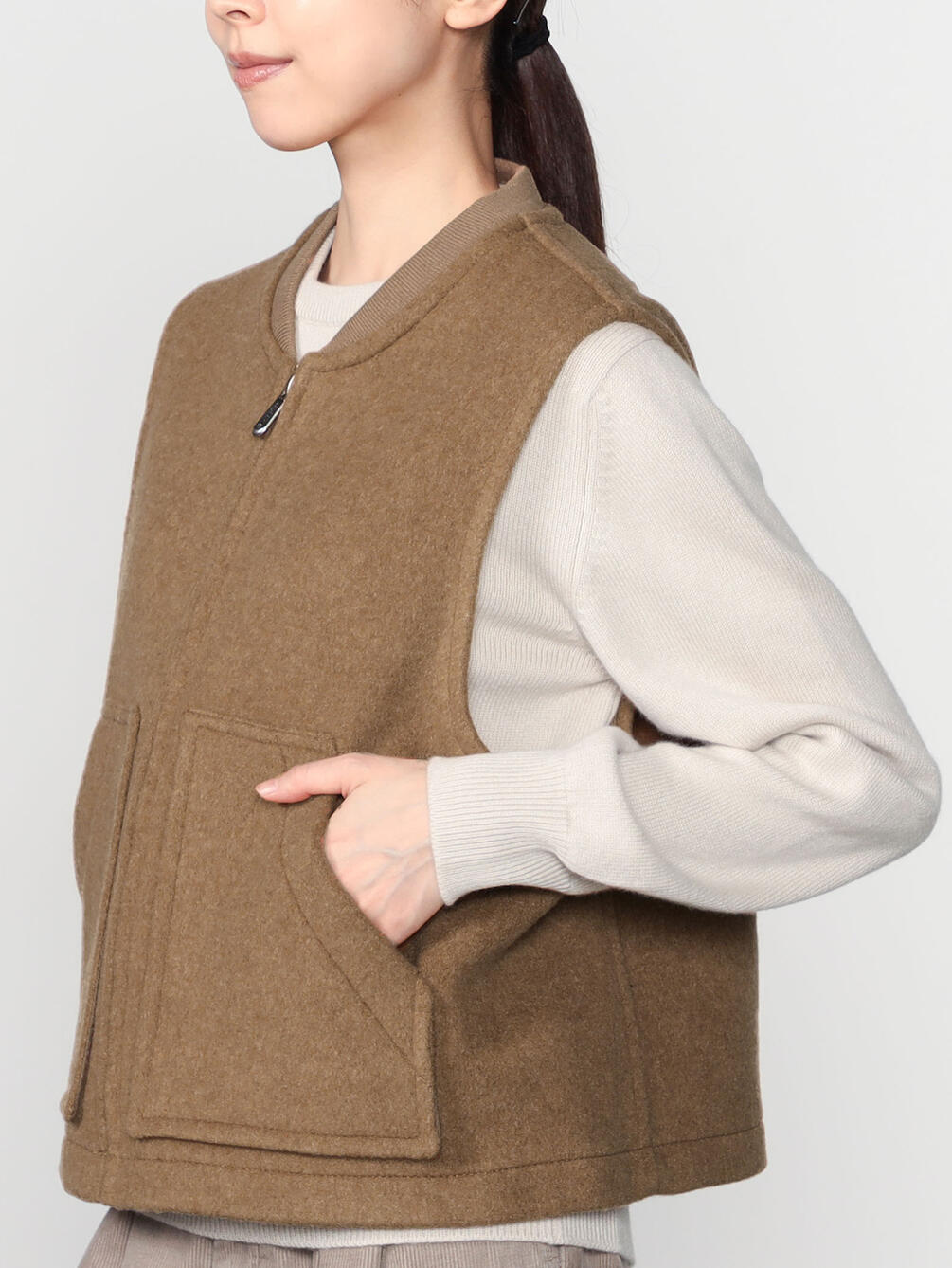 - メンズのワークベストから着想を得たジップベスト