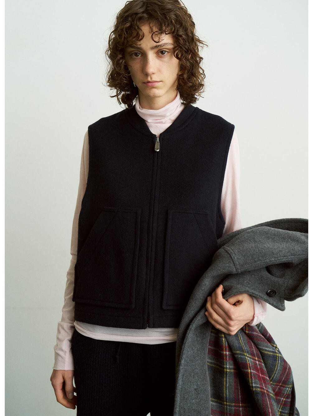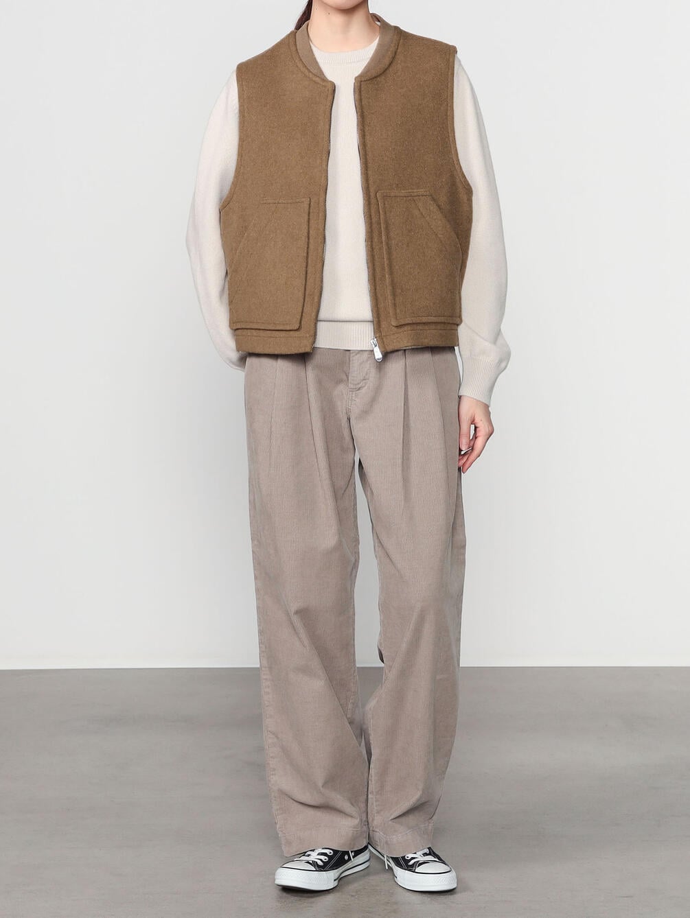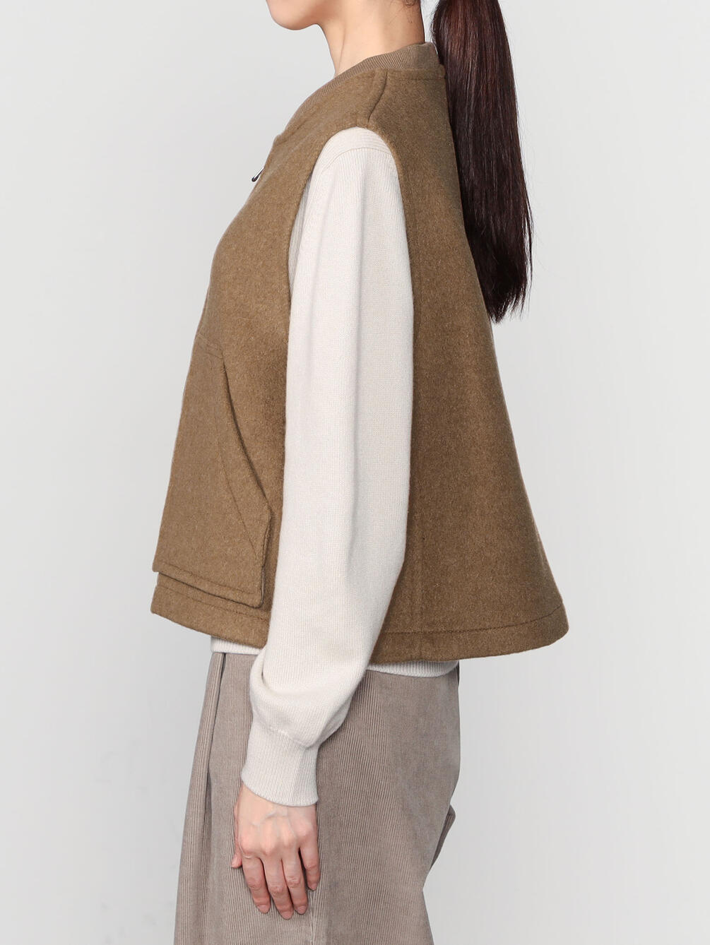 - メンズのワークベストから着想を得たジップベスト