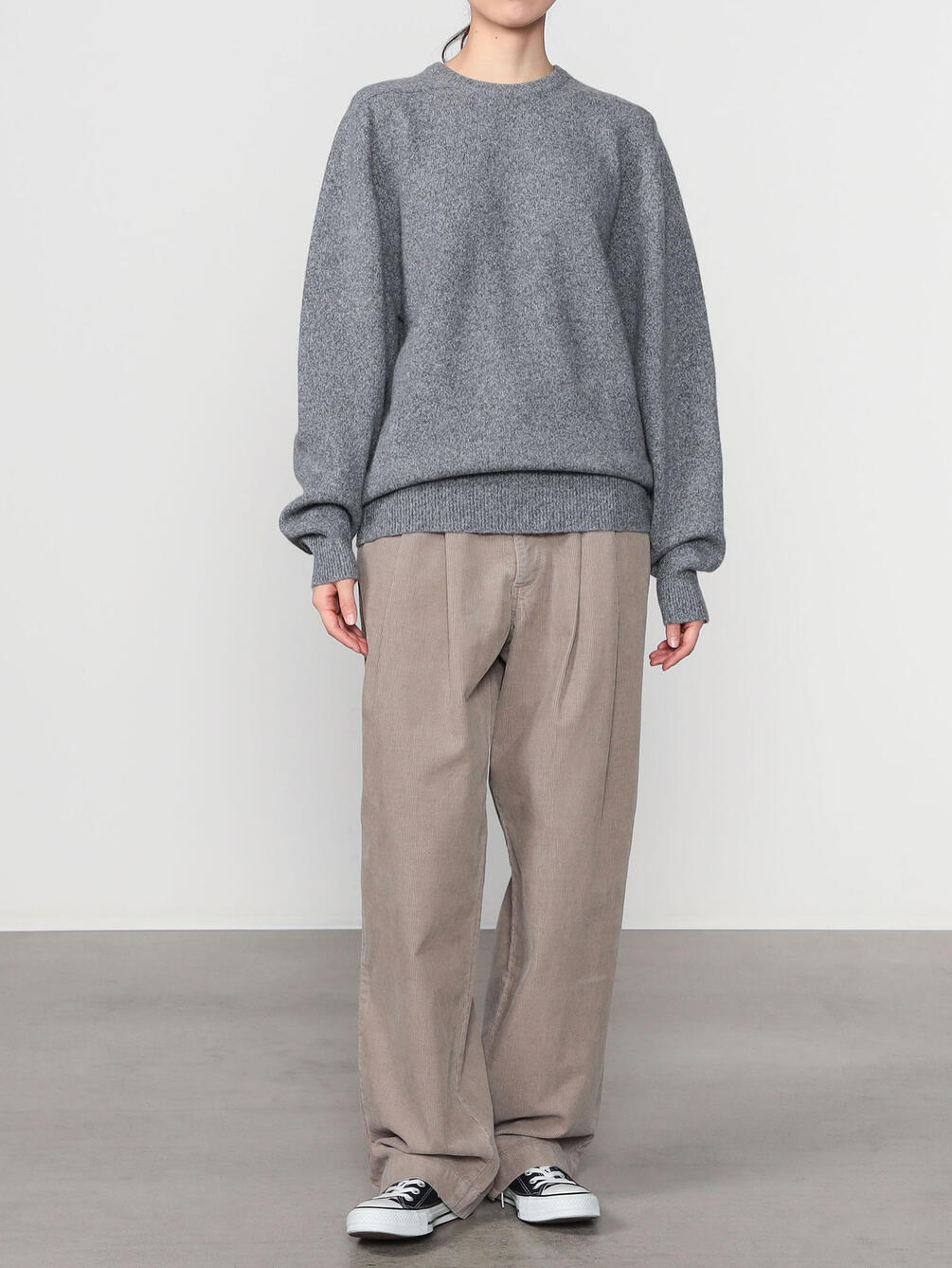 - クラシカルなクルーネックニット