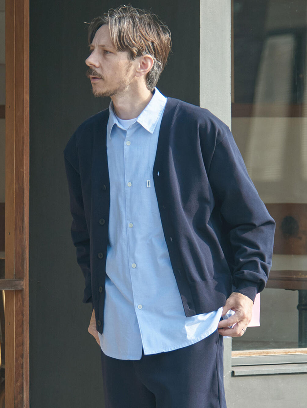 - ミニマルなVネックカーディガン