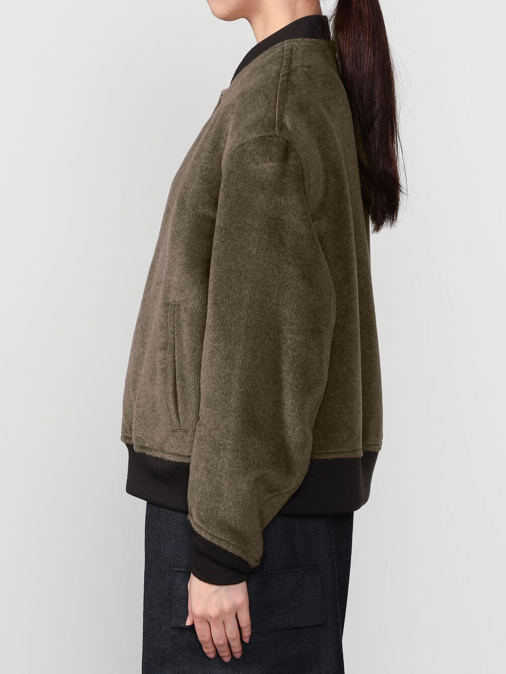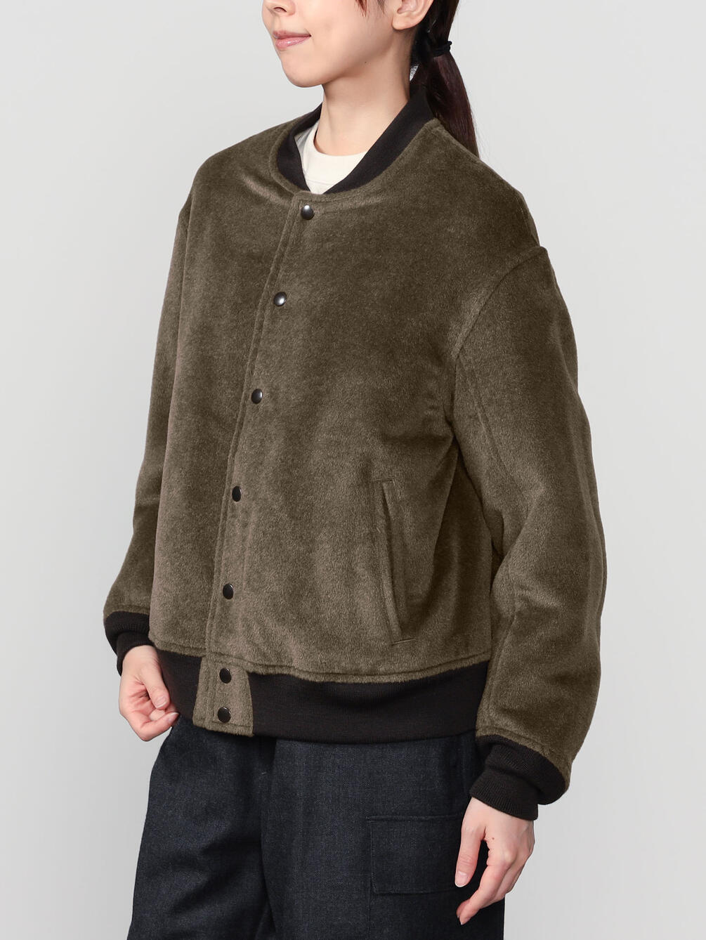 | 素材 | 表地:アルパカ55% ウール31% シルク14% 別布リブ:ウール100% 裏地:レーヨン57% 綿43% |