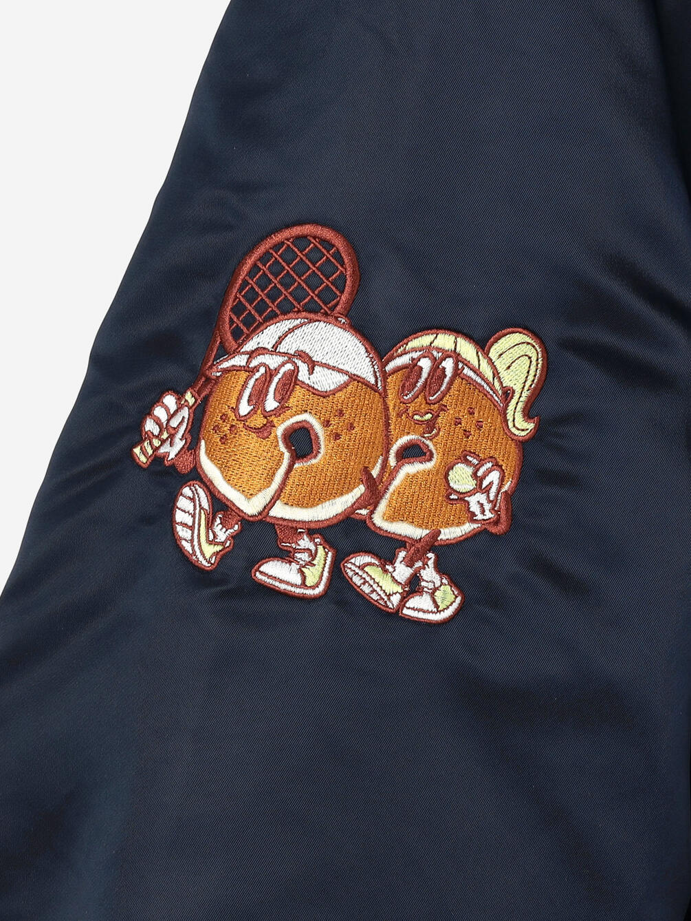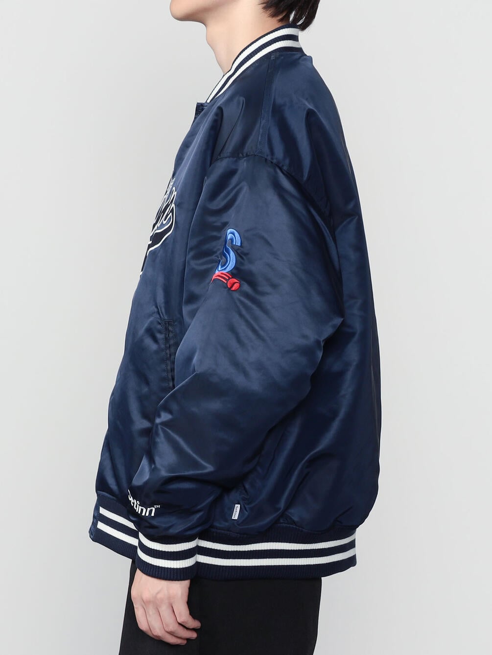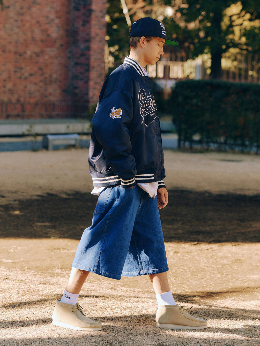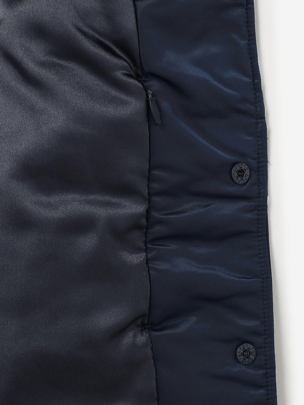 素材 | 表地:ナイロン100% 裏地:ポリエステル100% 中わた:ポリエステル100% 刺繍部分:ポリエステル100% 別布:コットン100% リブ部分:アクリル85% ポリエステル13% ポリウレタン2% |