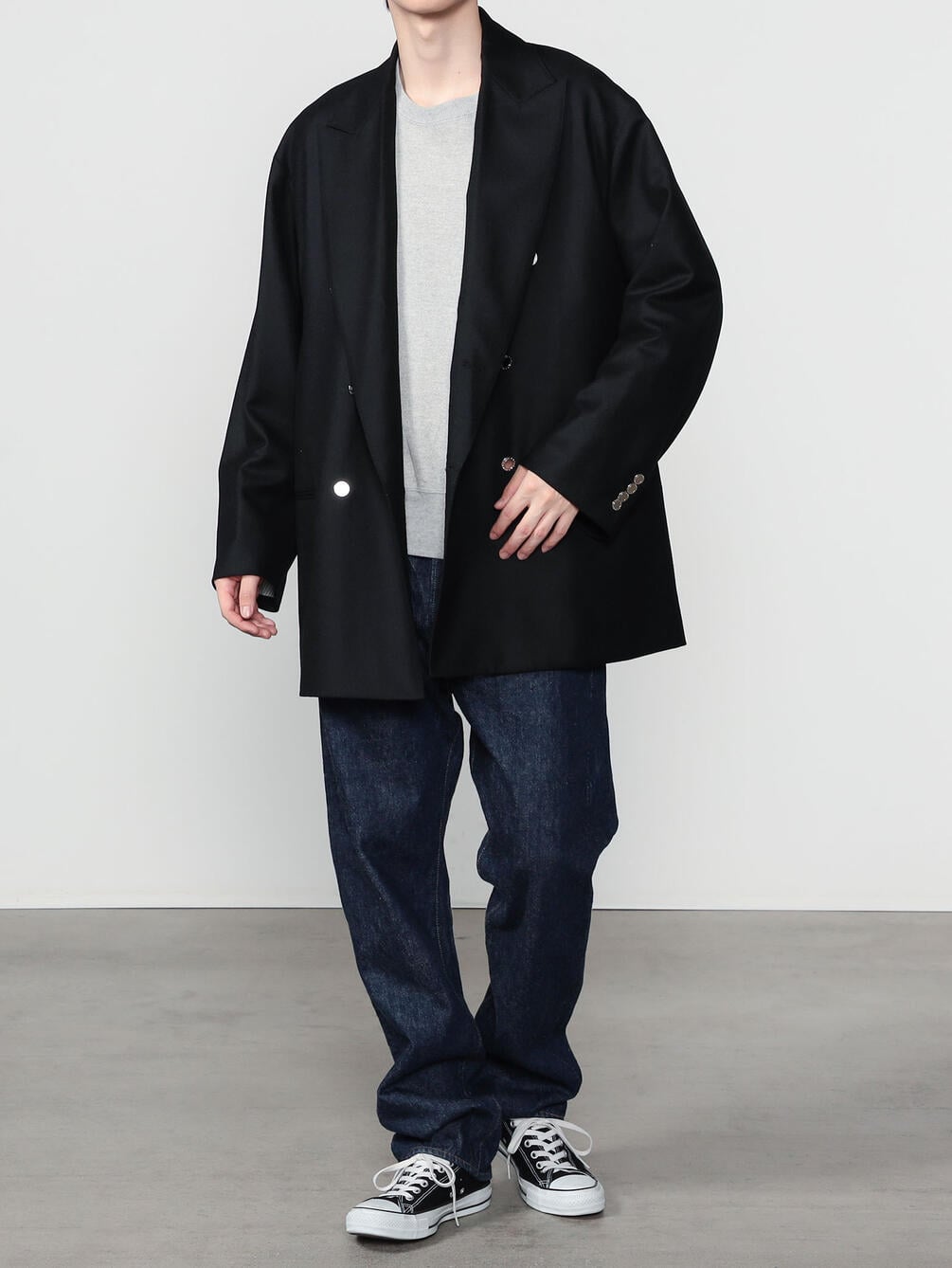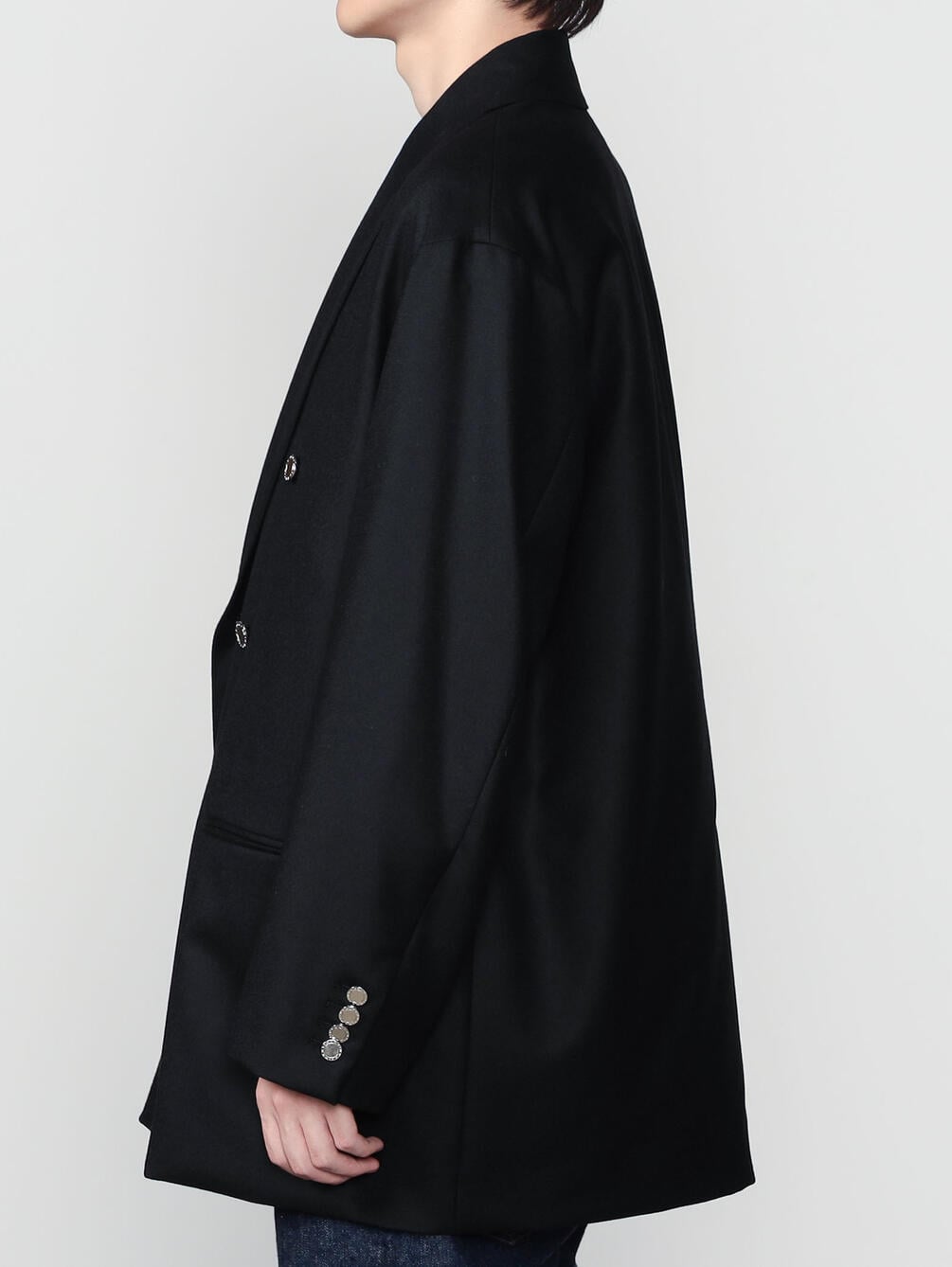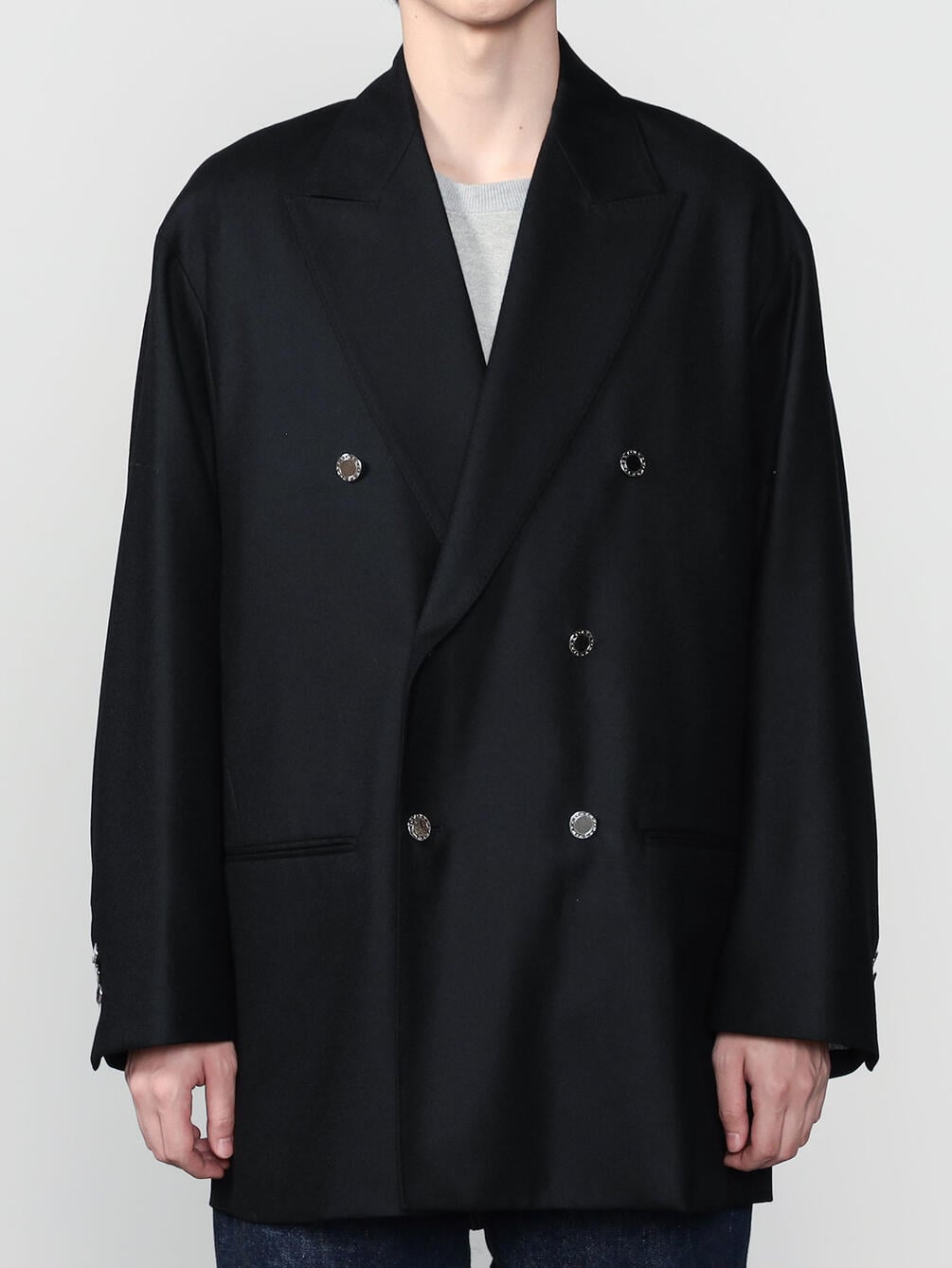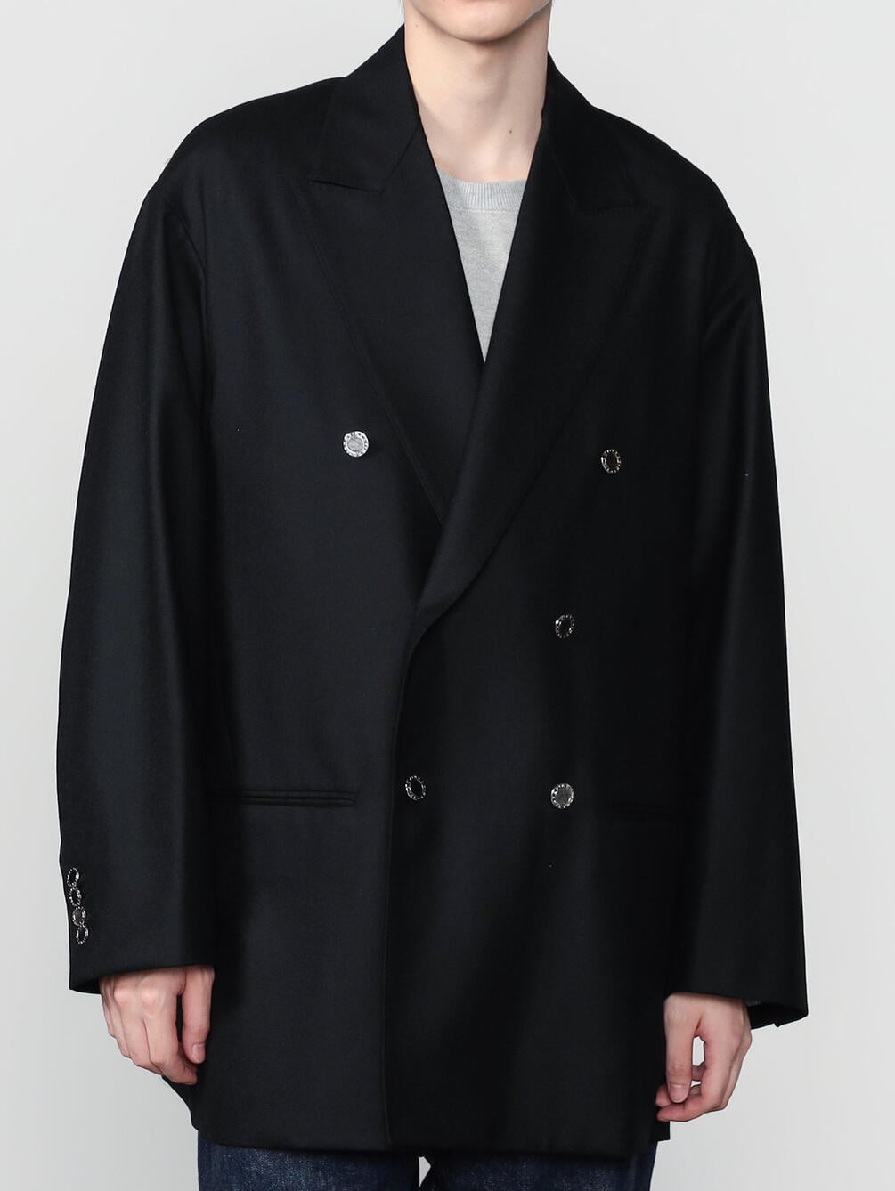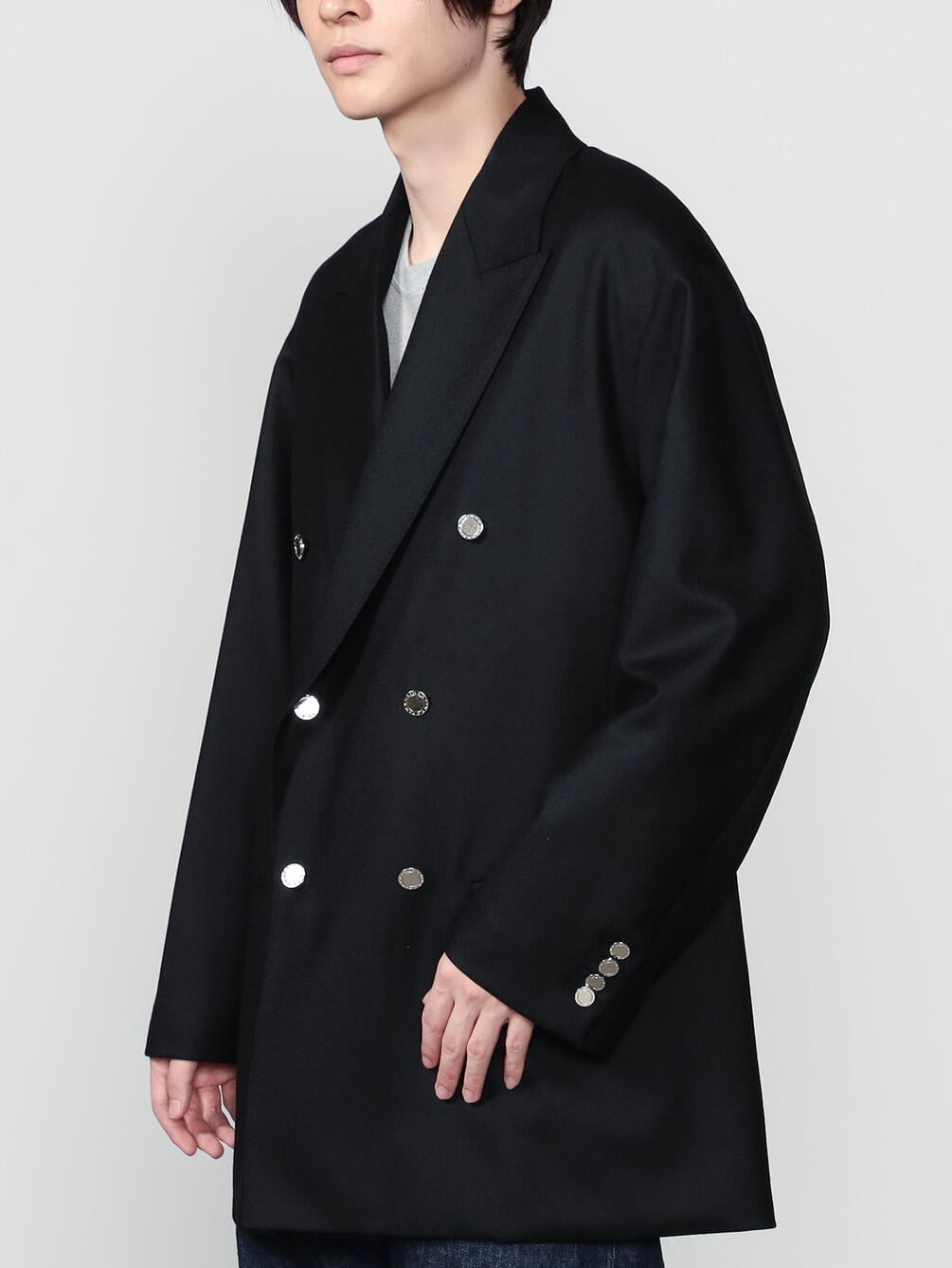 - ハーフ丈のダブルブレストコート