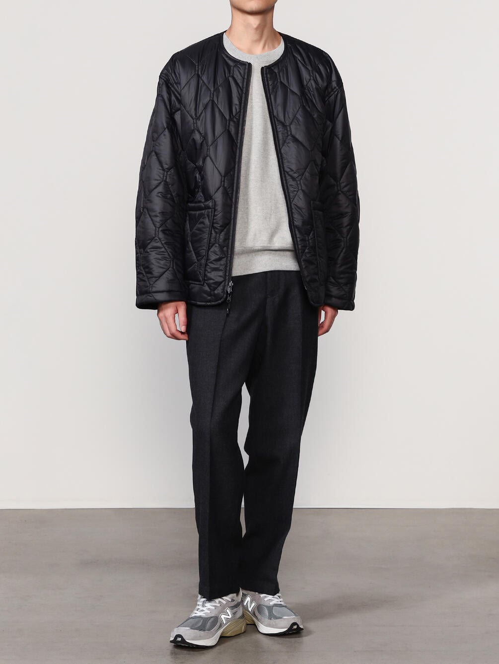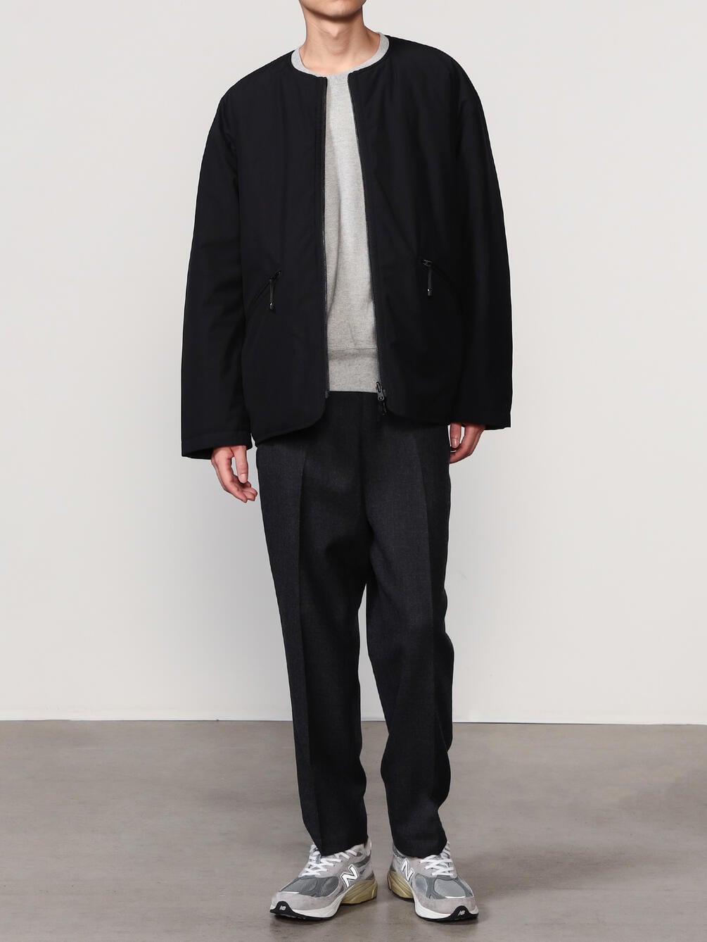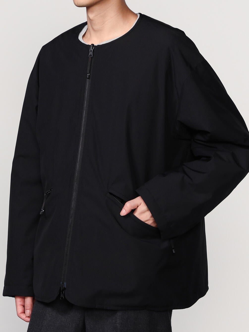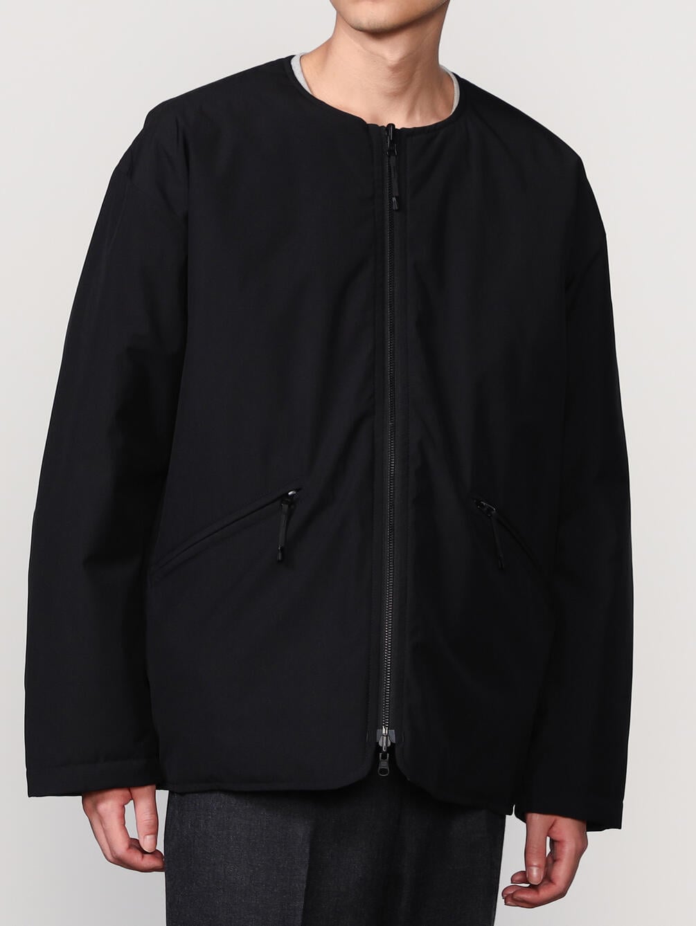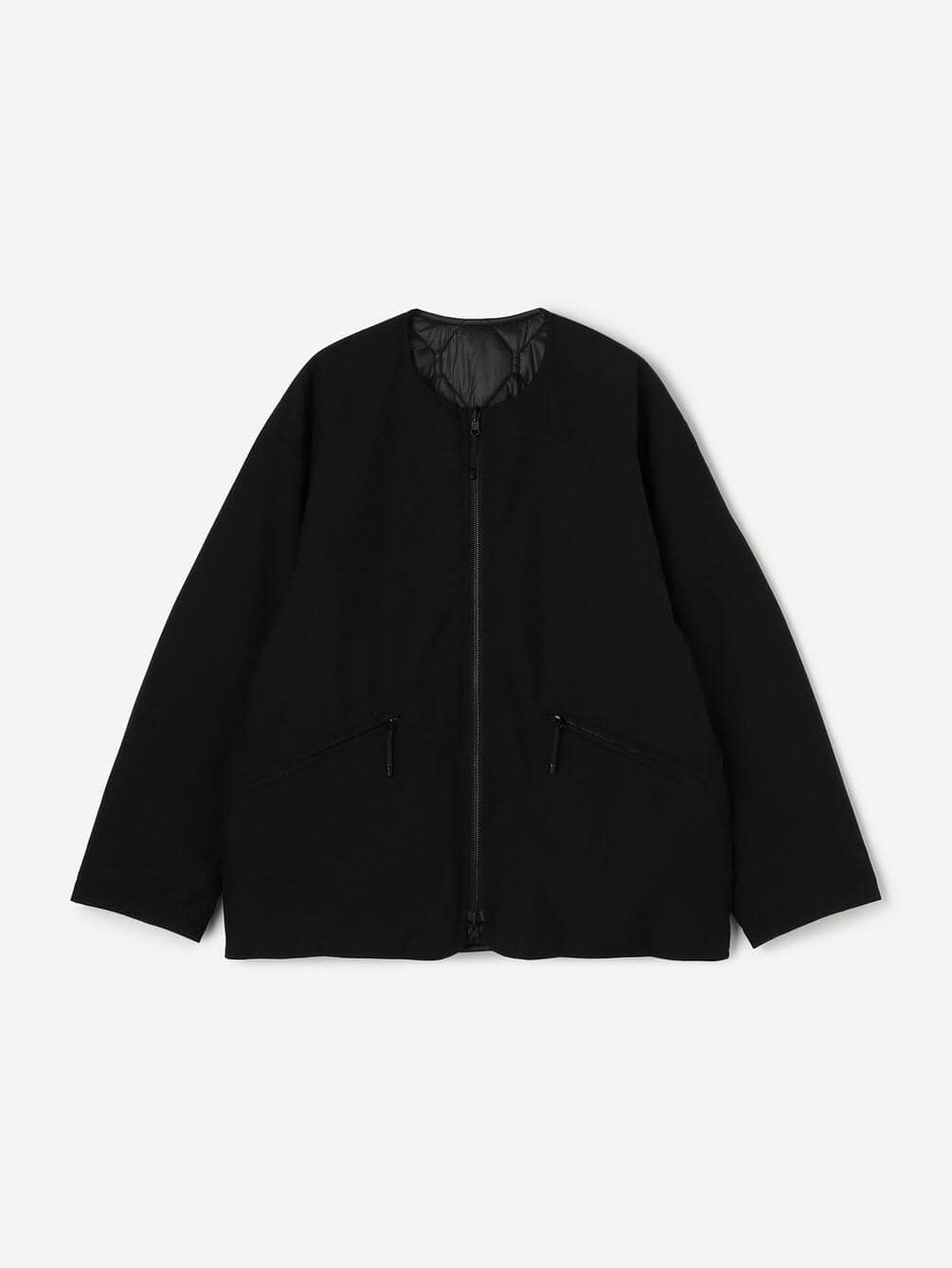 - ミニマルなデザインのノーカラーインサレーションジャケット