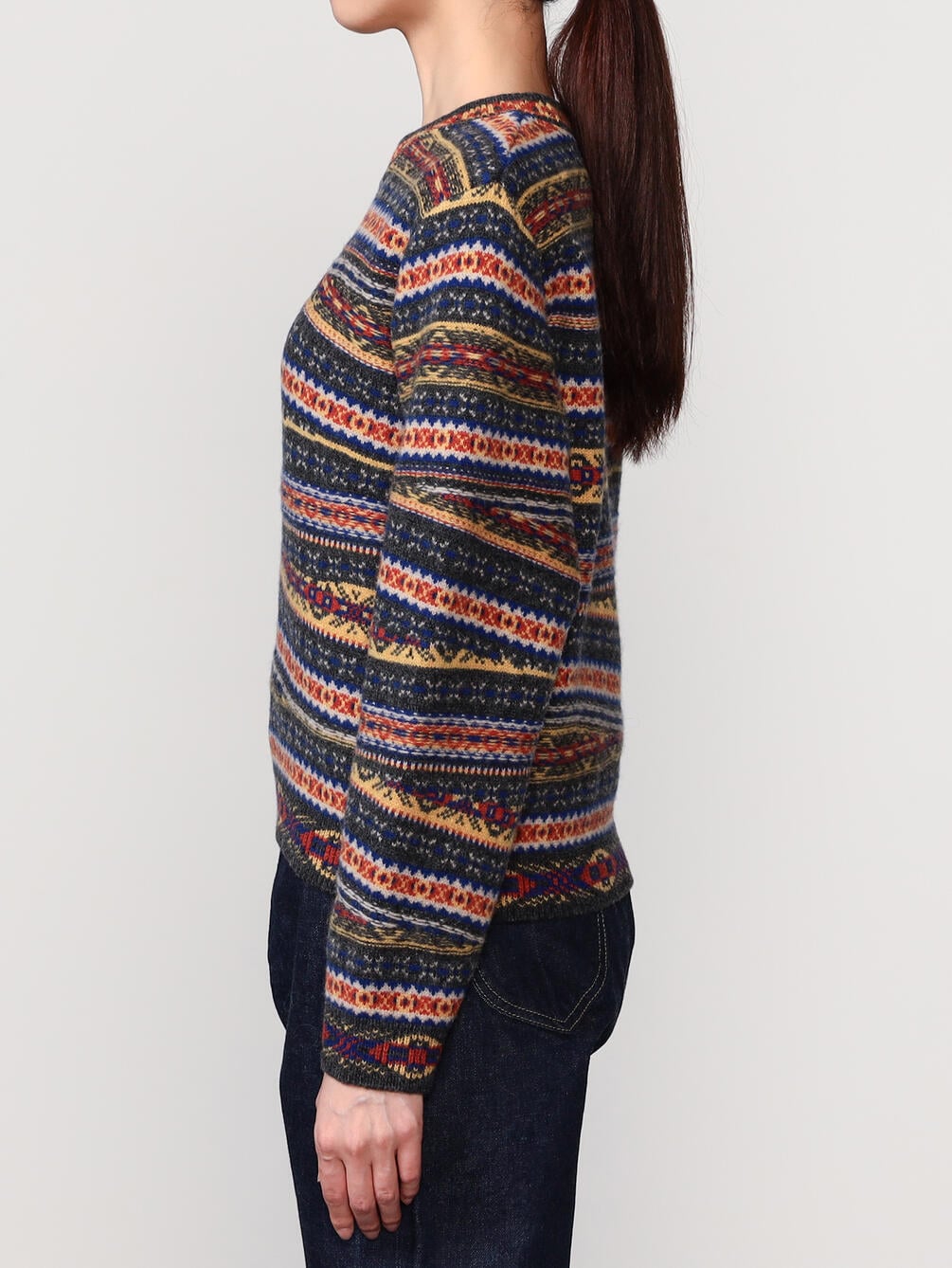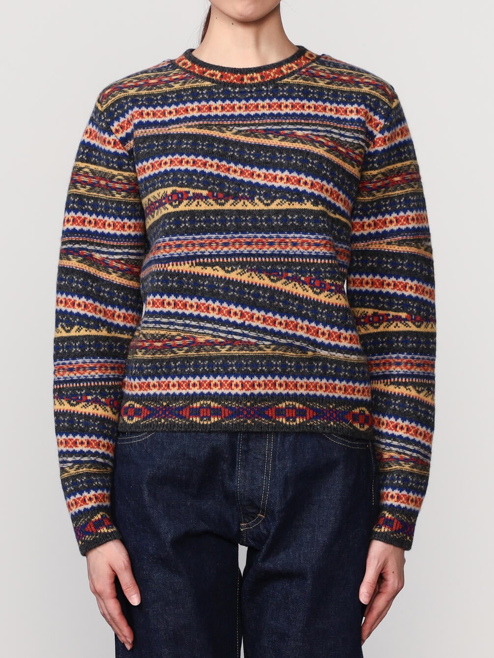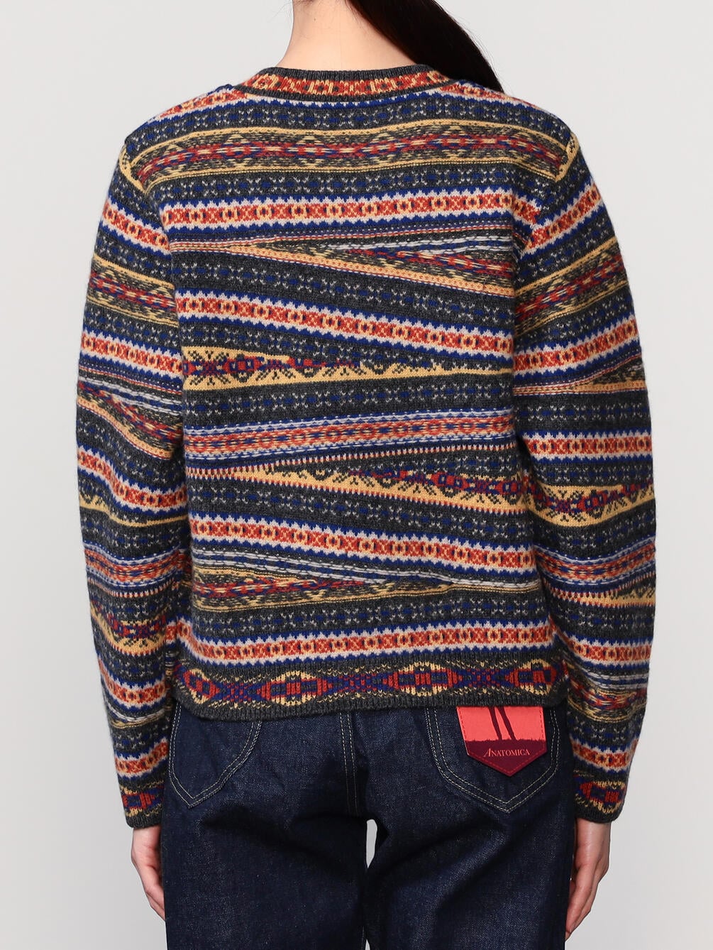 - 柄を歪ませたミドルゲージ長袖ニットプルオーバー