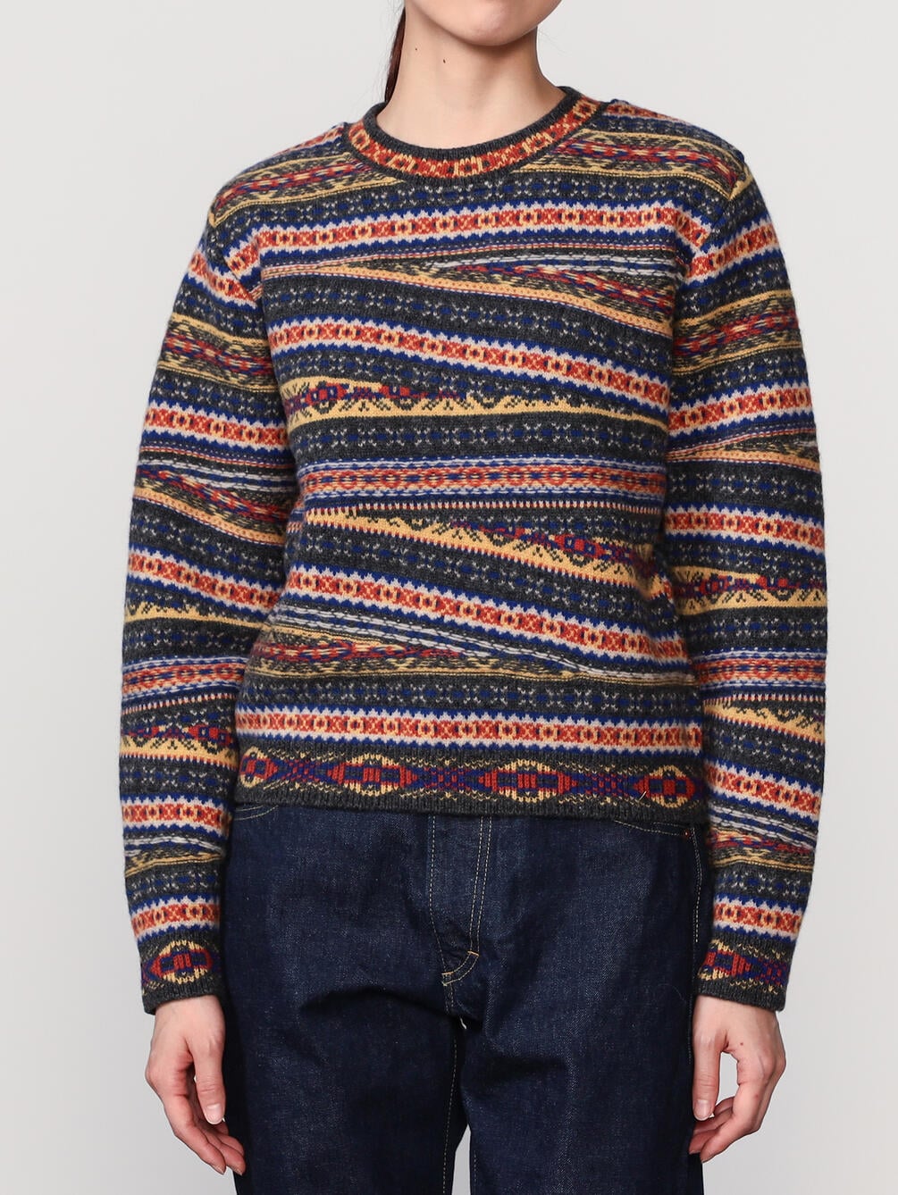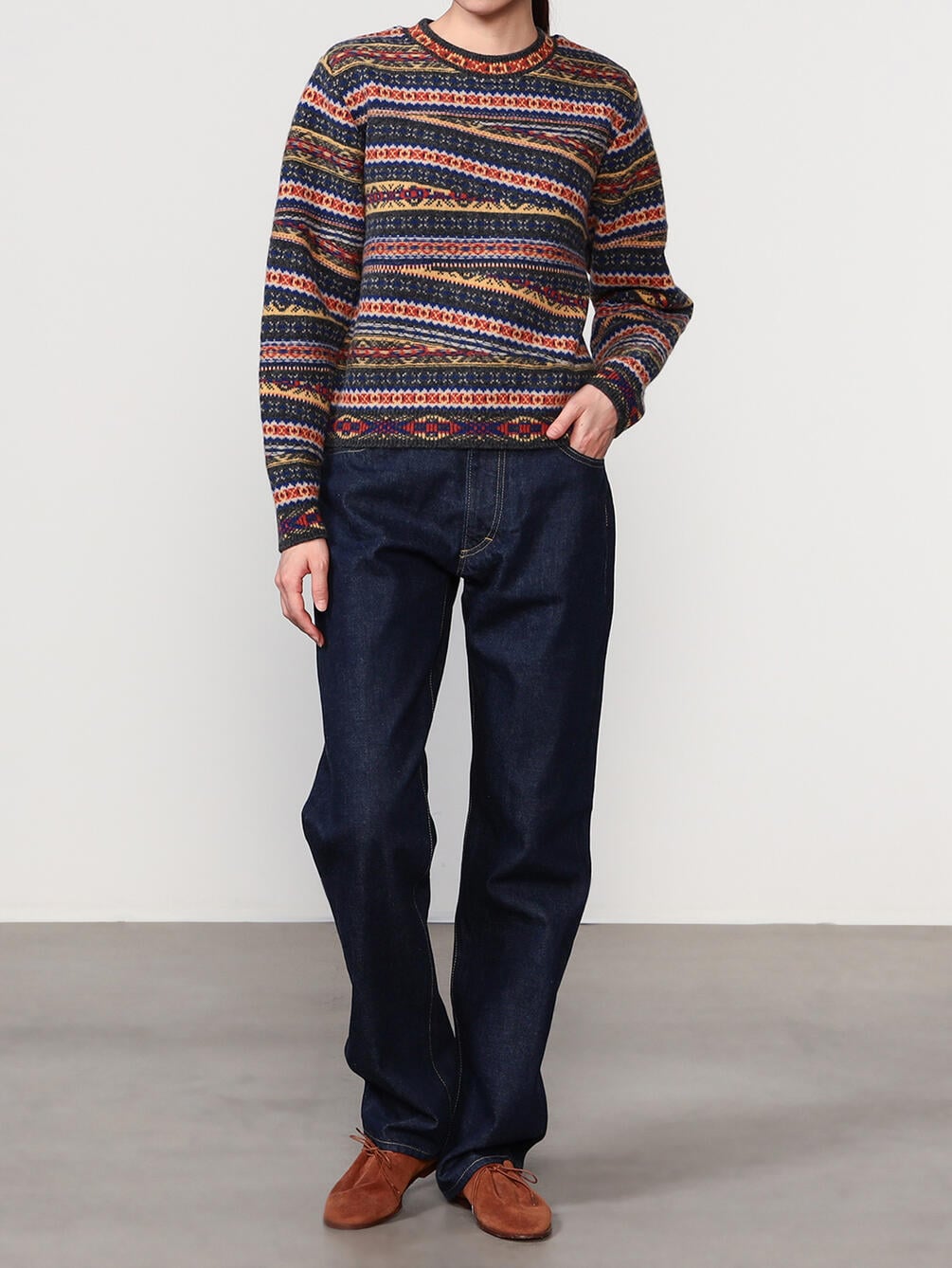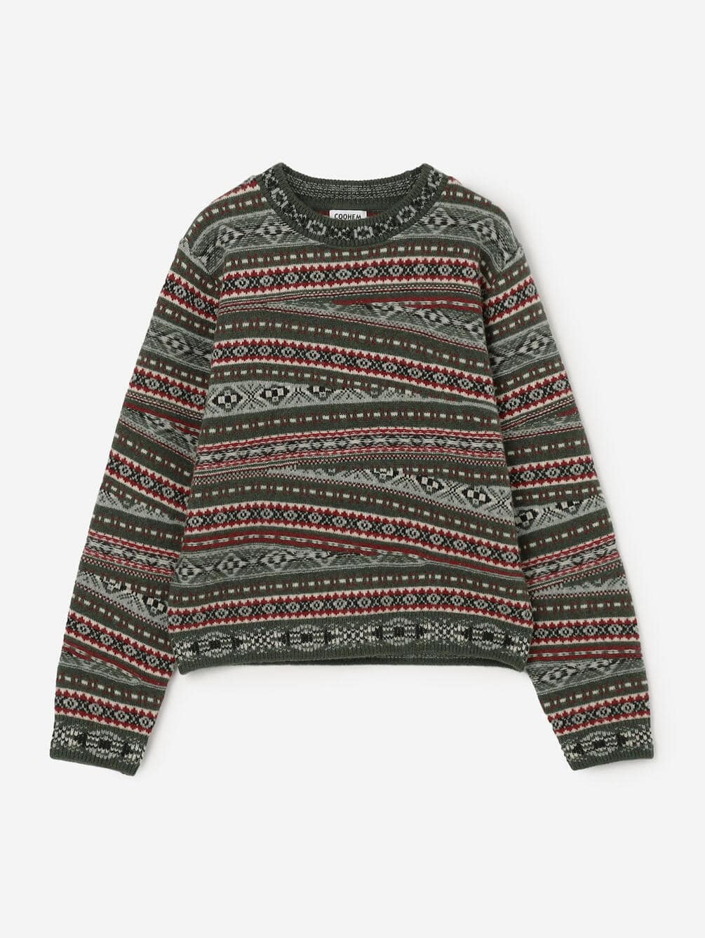 - 柄を歪ませたミドルゲージ長袖ニットプルオーバー