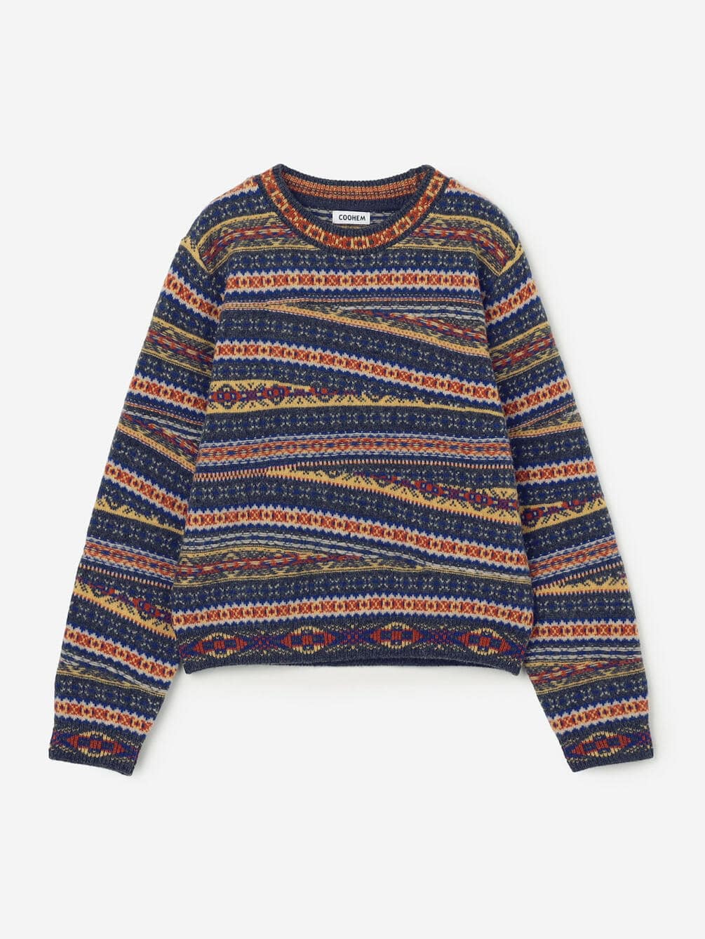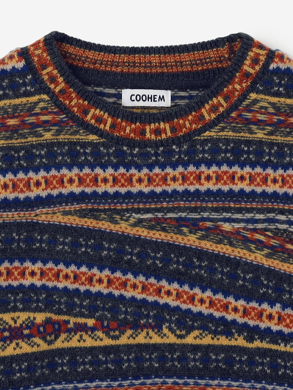 ブランド名は「交編 | こうへん)」に由来する造語。「交編」とは形状の異なる複数の素材を組み合わせて編み立て、新しい素材を産み出す技術を指し、「COOHEM」はこうして誕生したニットツイードと呼ばれる独自のテキスタイルを用い、まったく新しいトラディショナルウェアを表現している。すべての工程が一箇所で完結する希少なファクトリーから、日本のモノづくりカルチャーを世界に発信している。