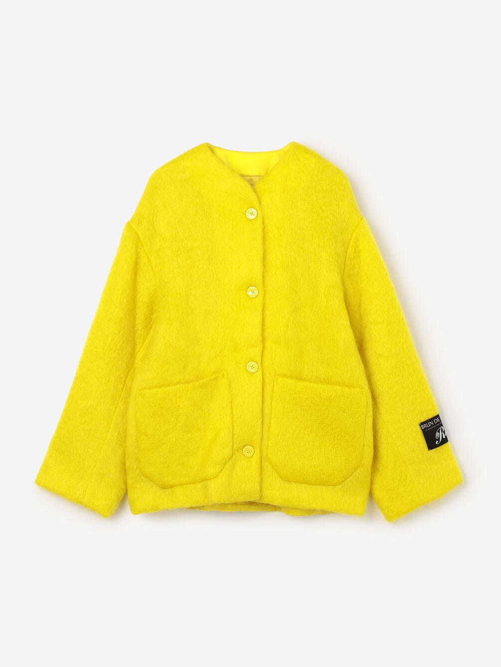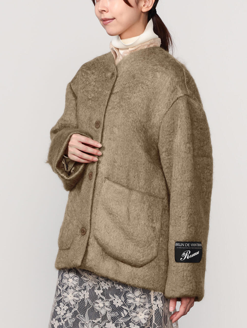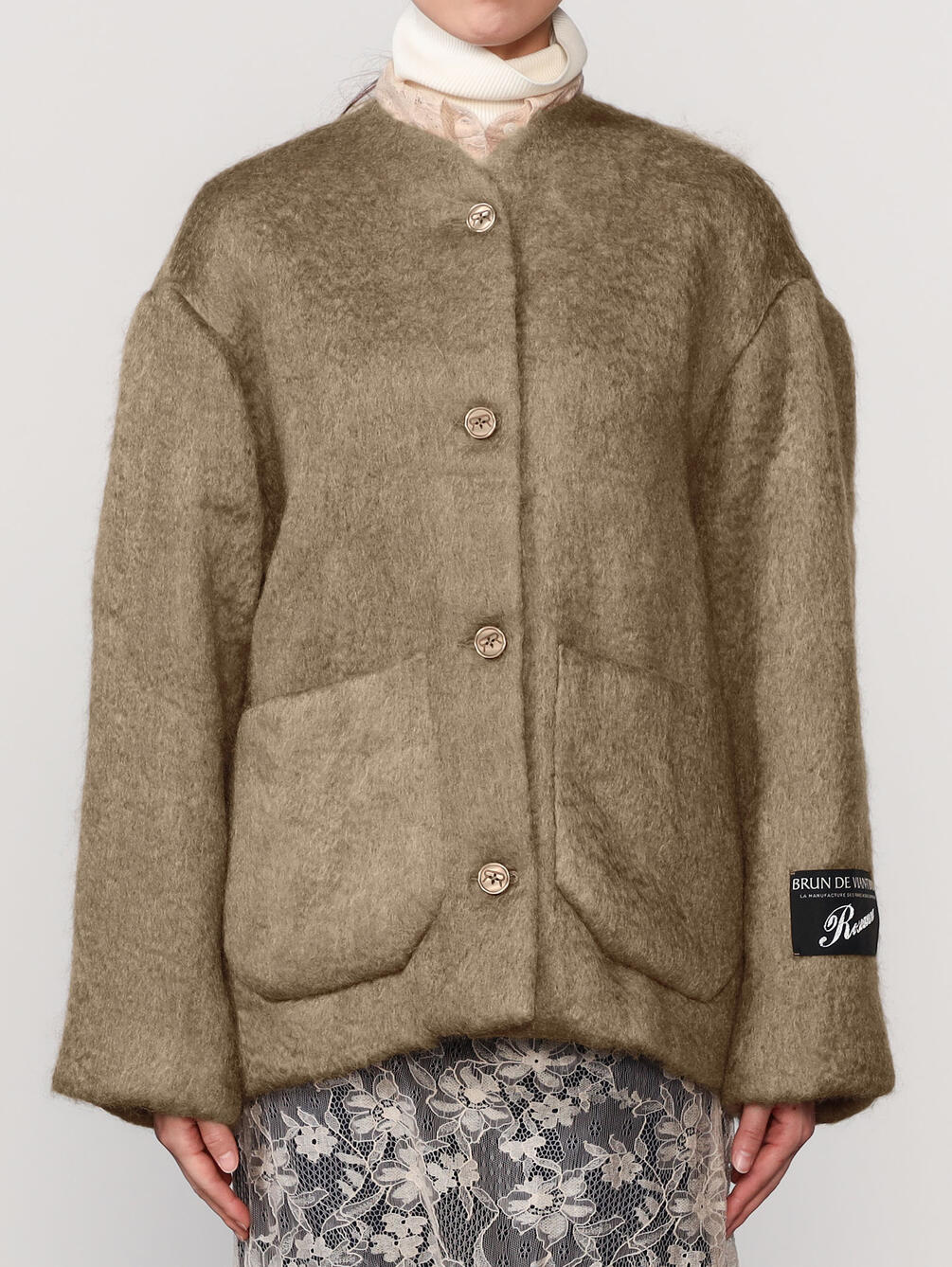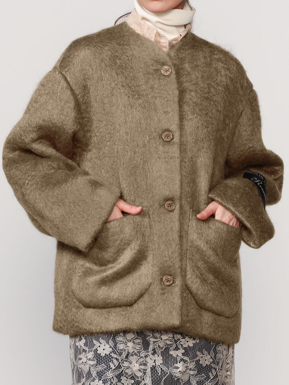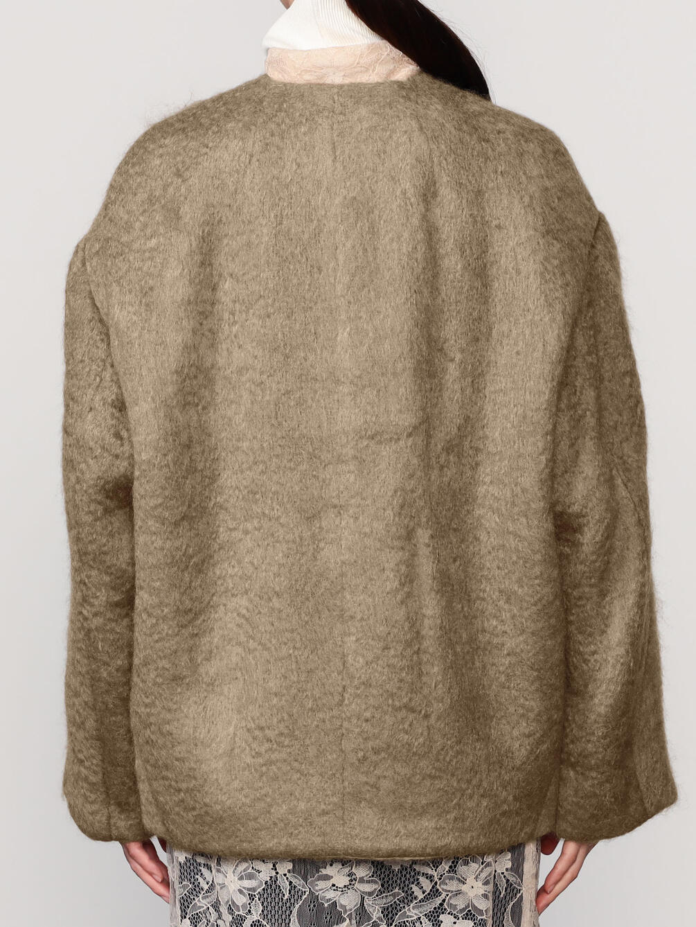 - ノーカラーのニットジャケット