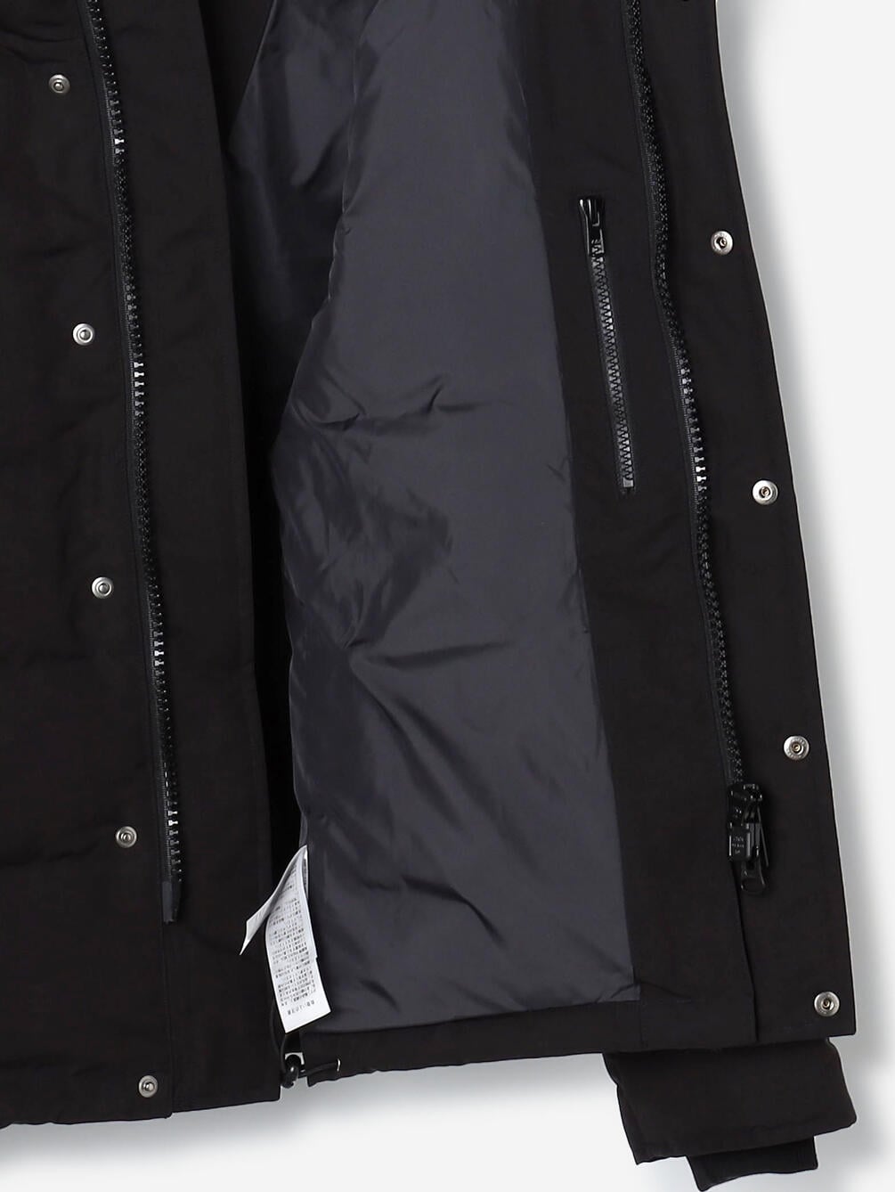 | 素材 | 表地:ポリエステル100% 裏地:ポリエステル100% 詰物:ダウン90% フェザー10% リブ部分:ポリエステル97% ポリウレタン3% ファー部分 基布:ポリエステル100% パイル:ポリエステル100% |