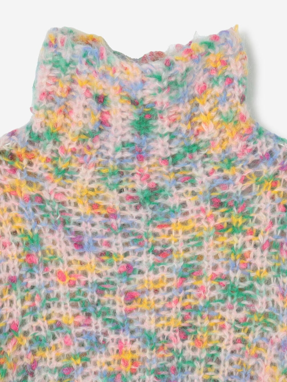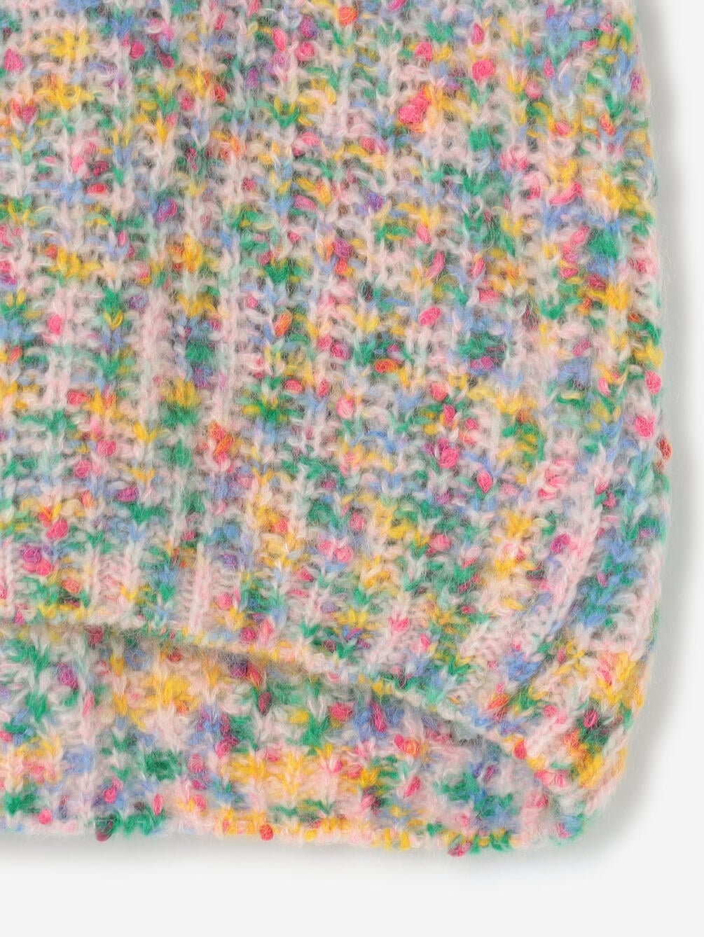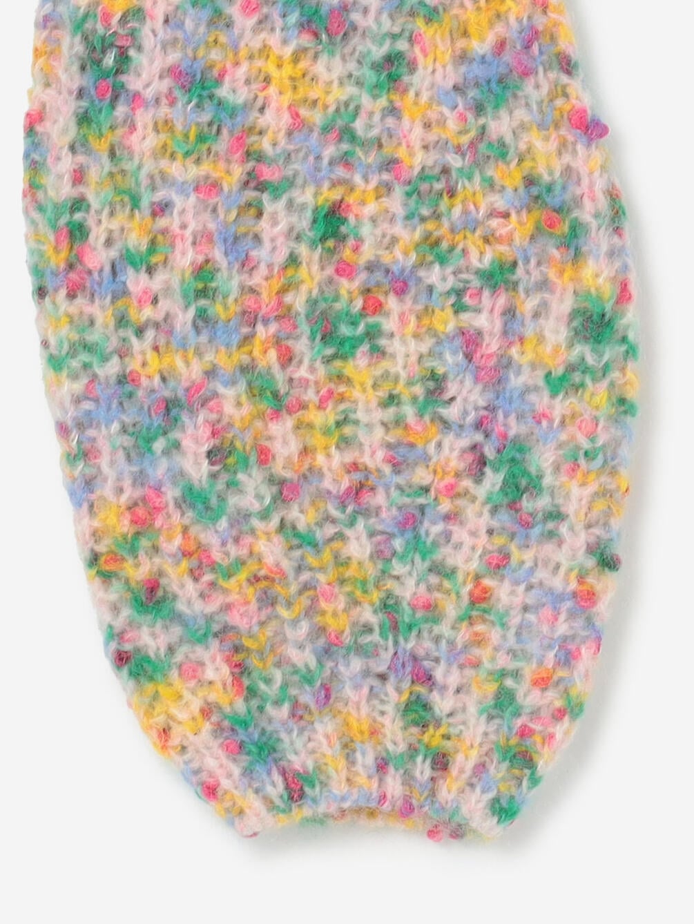 - カラフルな絣染めをした起毛糸に鮮やかなコットンネップをMIX