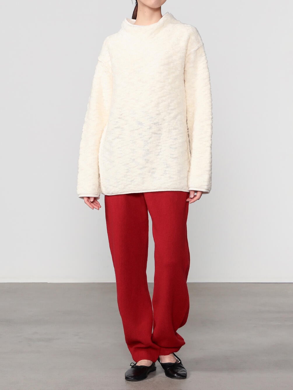 - 少し強めの縮絨加工により膨らませるように仕上げた編地