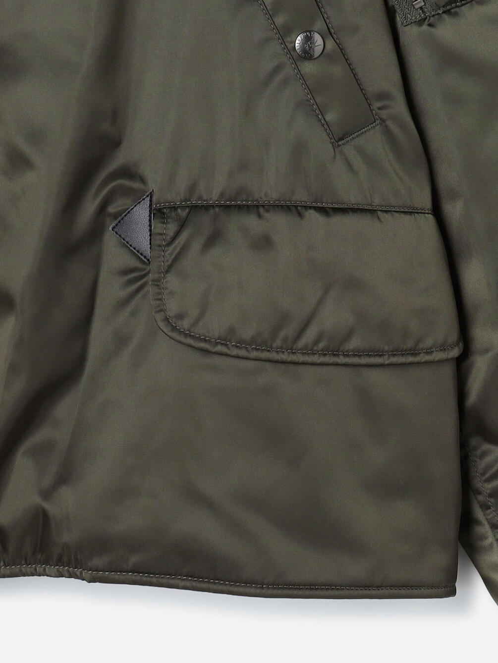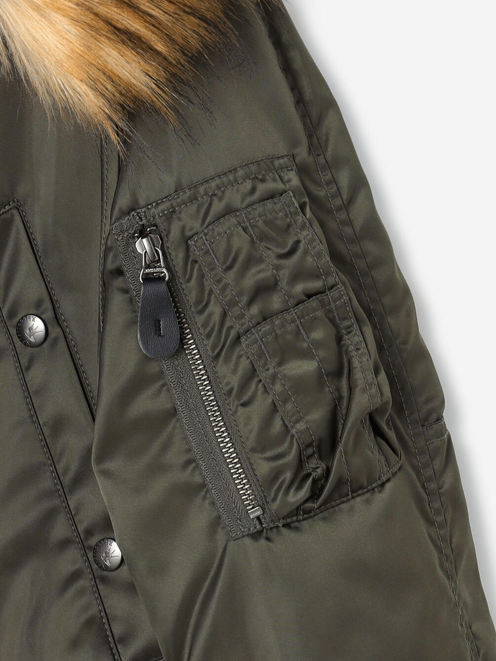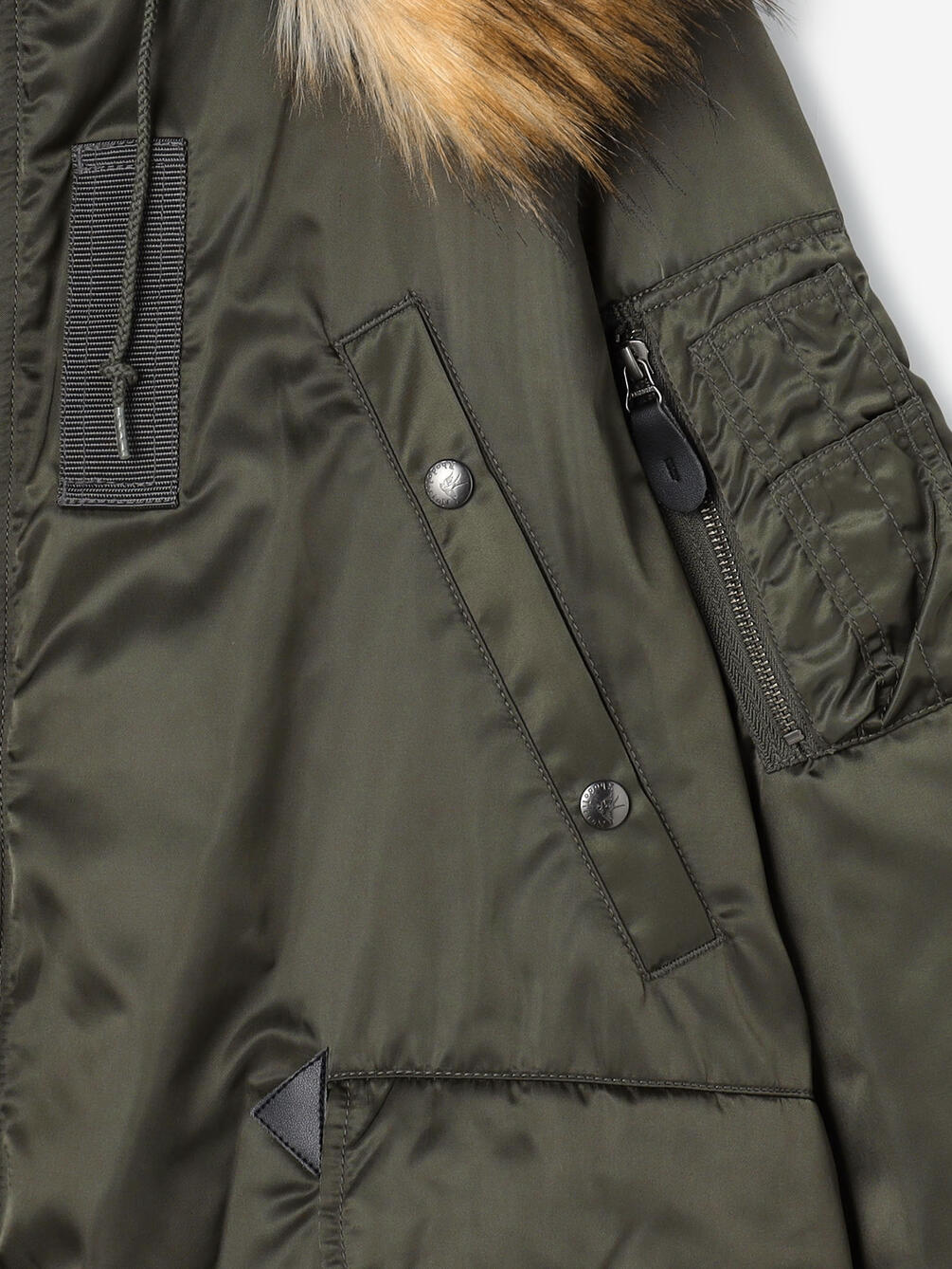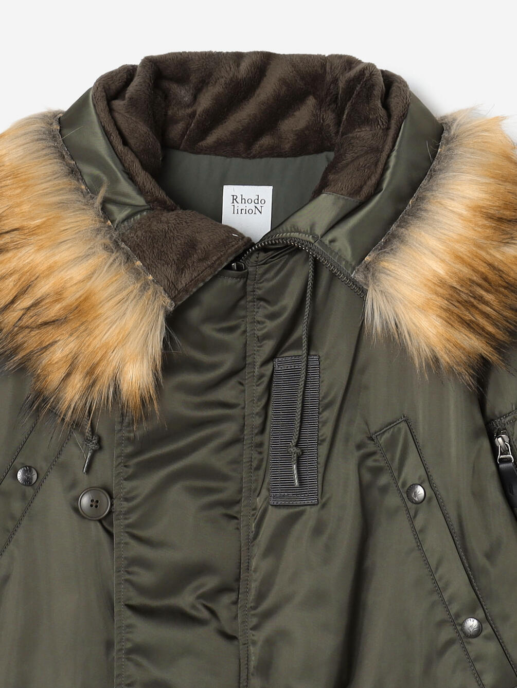 | 素材 | 表地:ナイロン100% 裏地:ポリエステル100% 別布:ポリエステル65% レーヨン35% リブ部分:コットン95% ポリウレタン5% 中わた:ポリエステル100% フード周りファーパイル:アクリル100% フード周りファー基布:ポリエステル100% ファー:ポリエステル100% 紐:アクリル100% |
