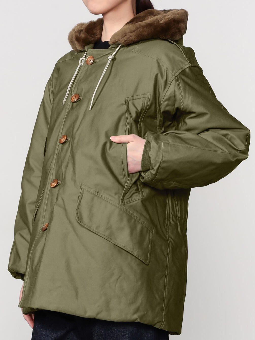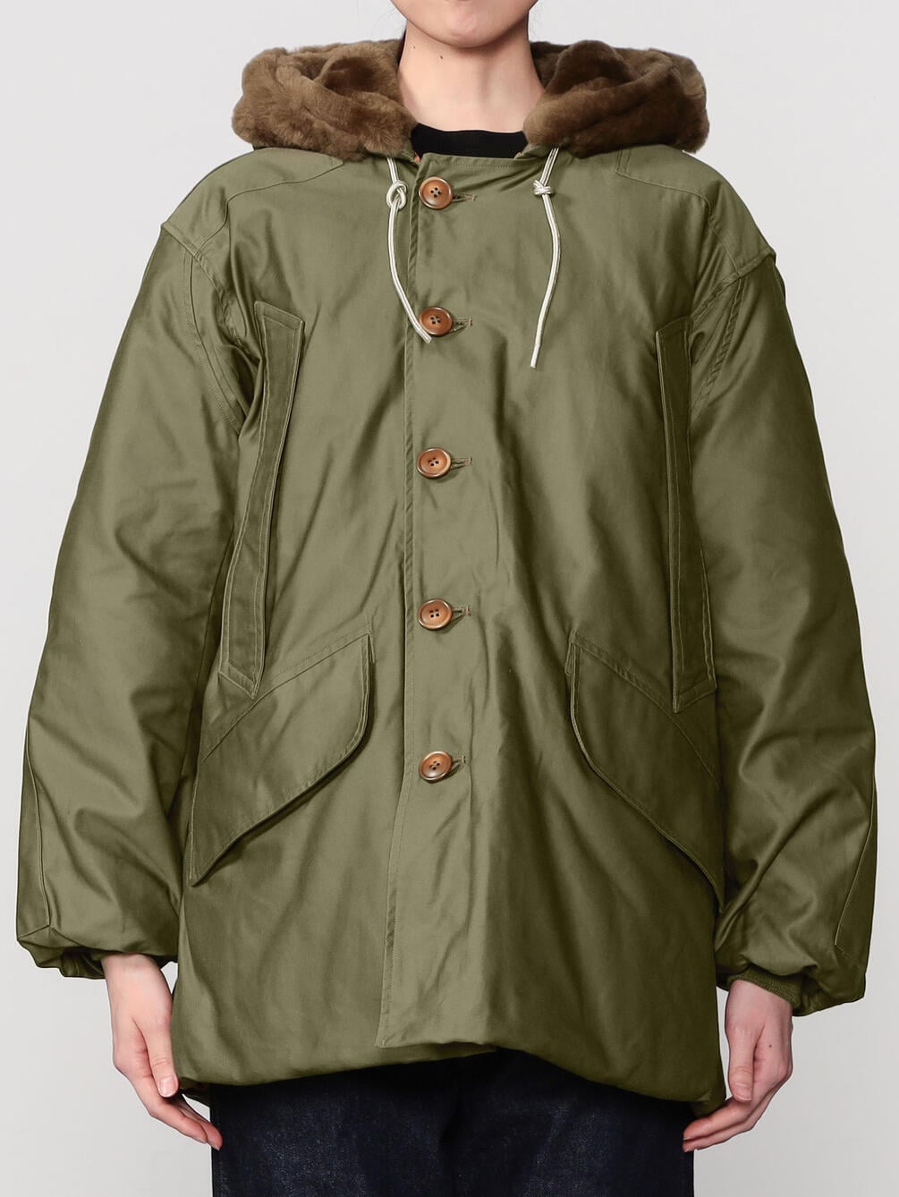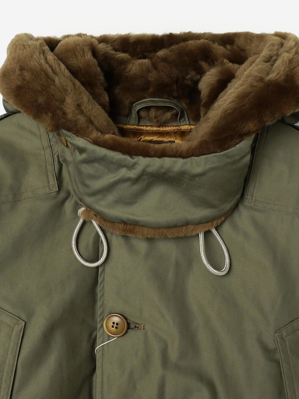 | 素材 | 表地:コットン100% 裏地:キュプラ100% 詰物:ダウン90% フェザー10% リブ部分:ウール100% 毛革部分:羊 皮革部分:馬革 |