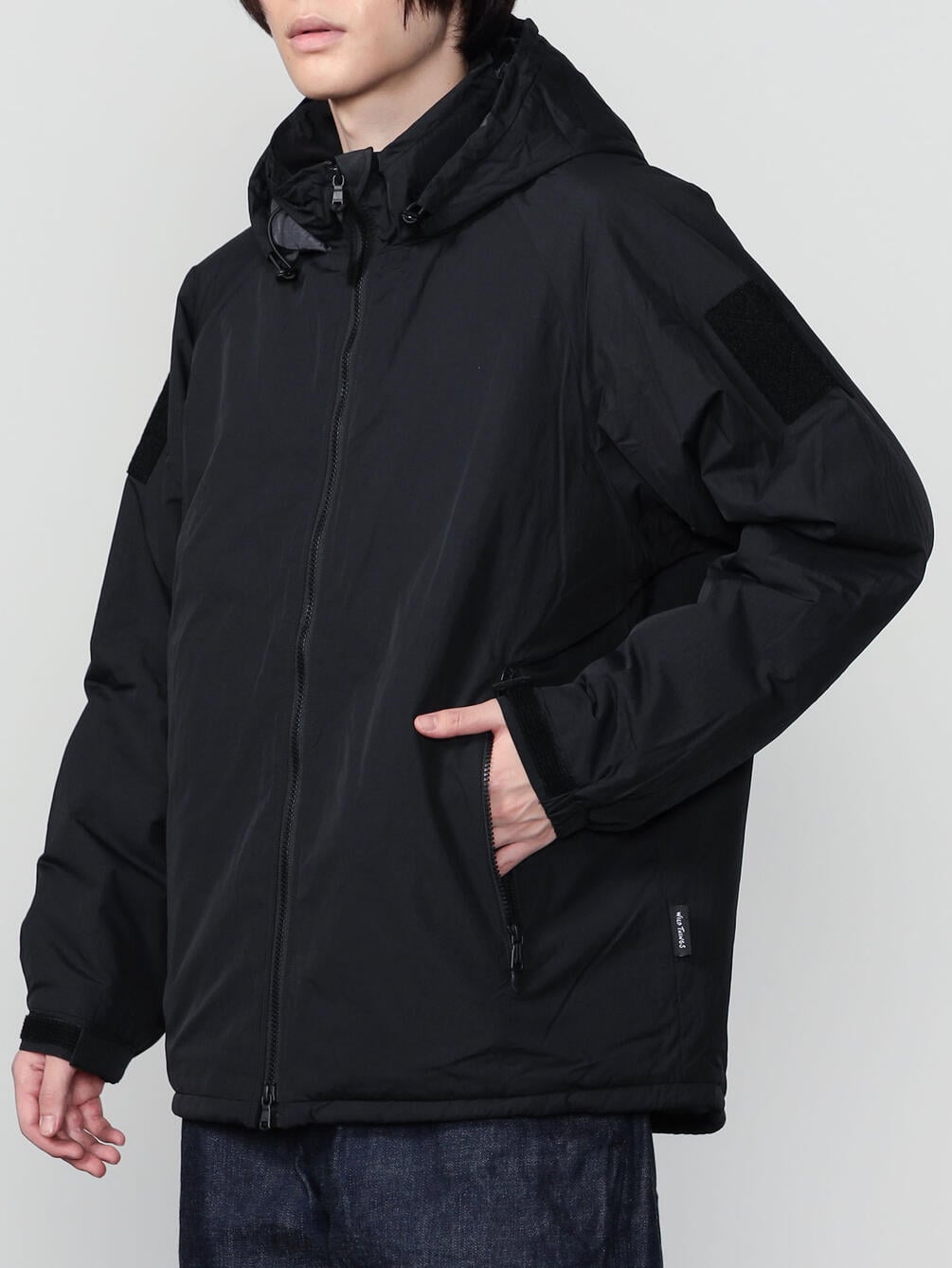 - スタンドタイプの衿回り / ベルクロポケットにフードが収納可能