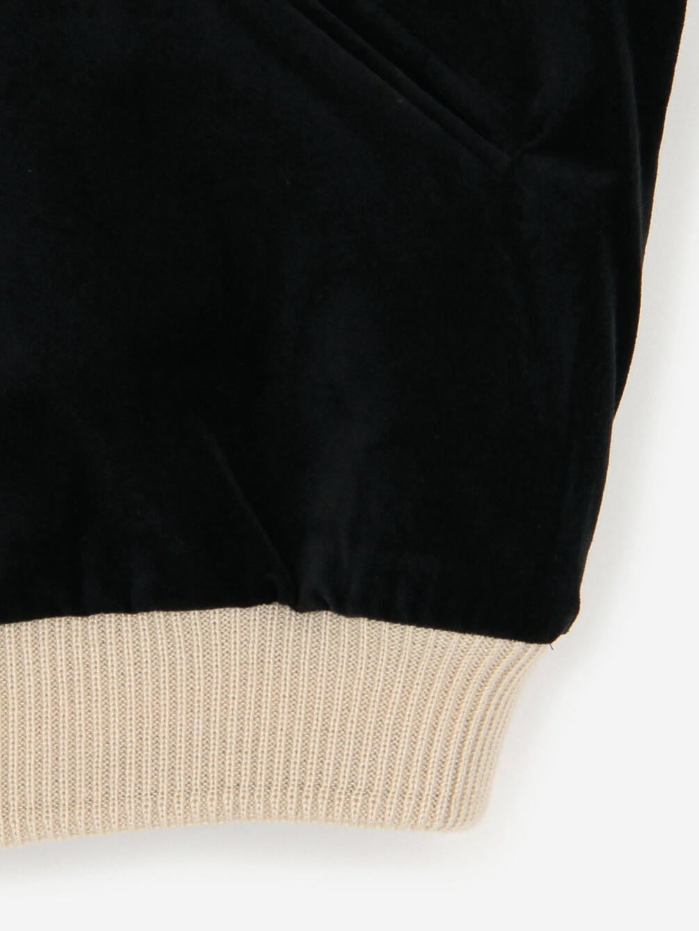 - 襟・袖口・裾にリブの切り替え
