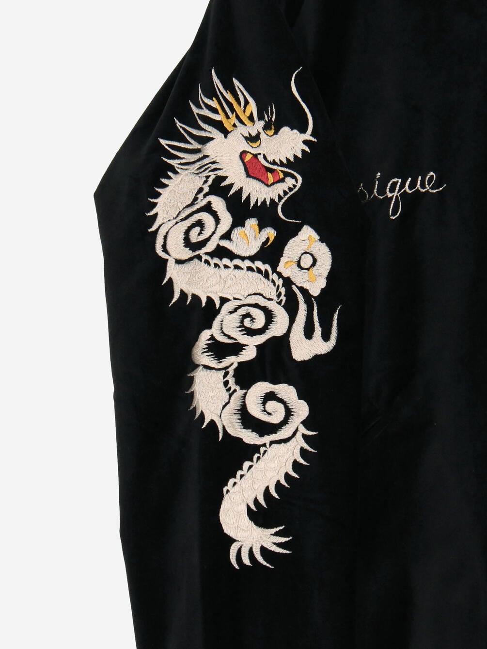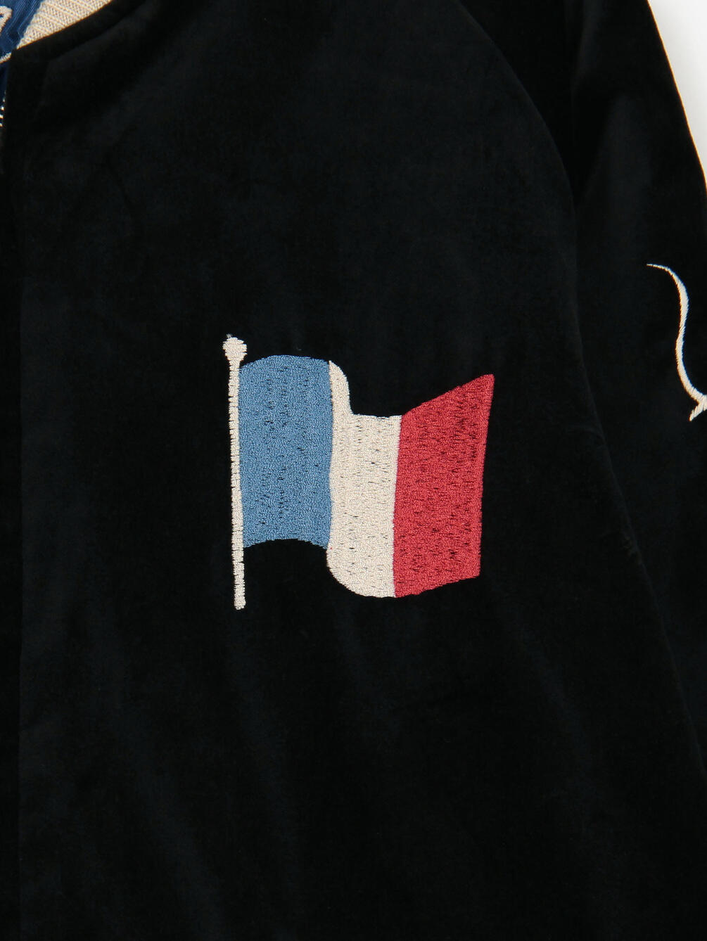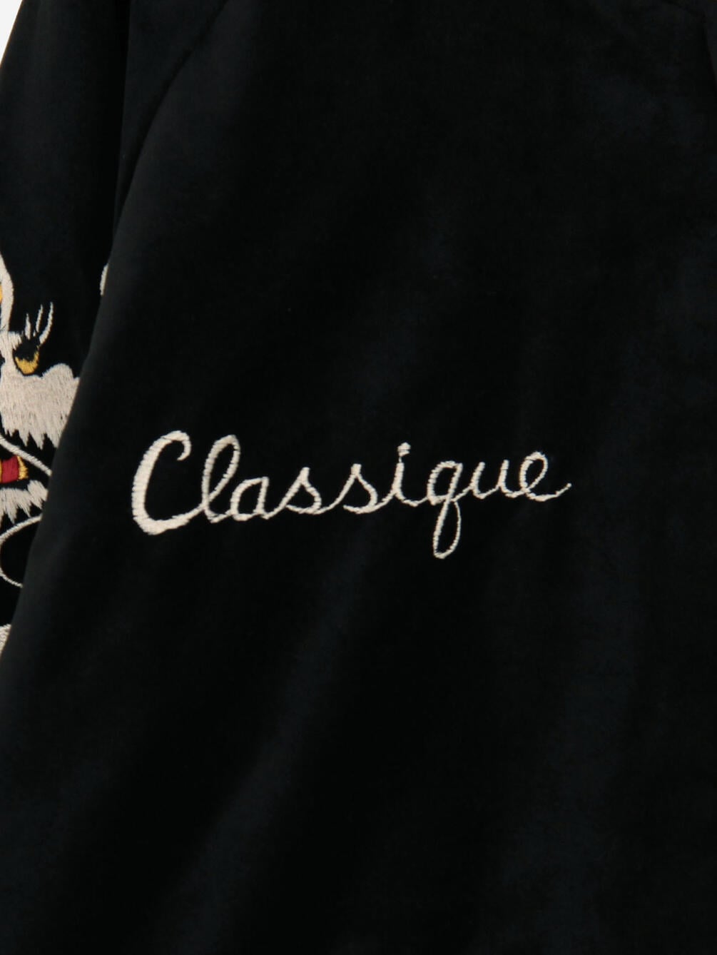 - 凹凸感のある横振り刺繍の技法を駆使したヴィンテージさながらの風合い