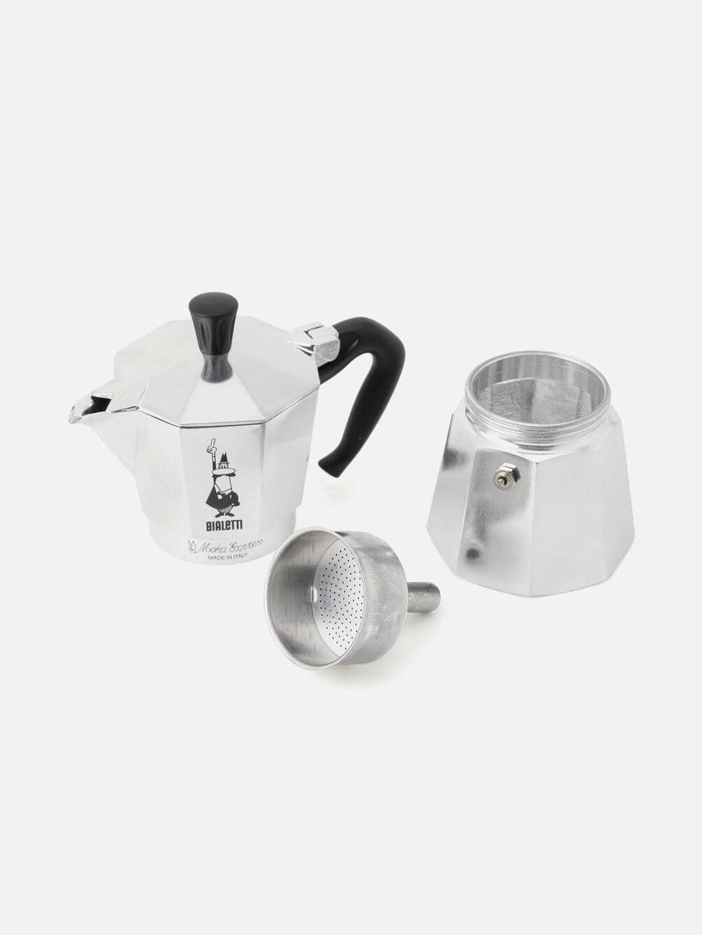 1930年代にAlfonso Bialettiによって作られたエスプレッソメーカー。沸騰した水の蒸気圧でコーヒーを抽出する直火式エスプレッソマシンの原型とも言われ、”髭おじさん”のトレードマークで親しみのある、イタリアの老舗「ビアレッティ社」の定番モデル。イタリア本国では一家に一台は必ずあるとまで言われているシェアNo1商品です。
