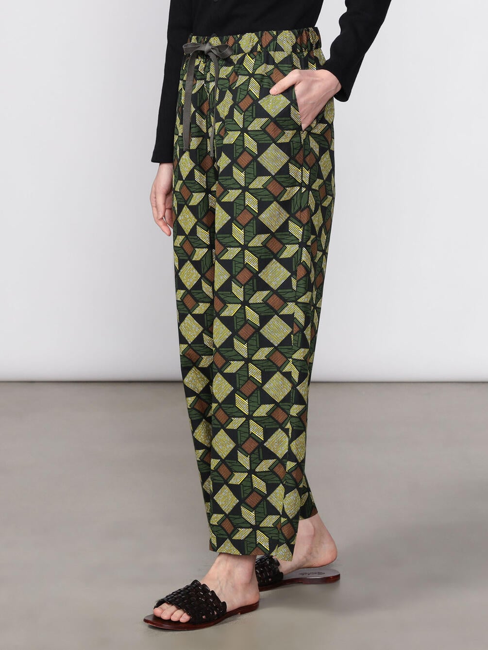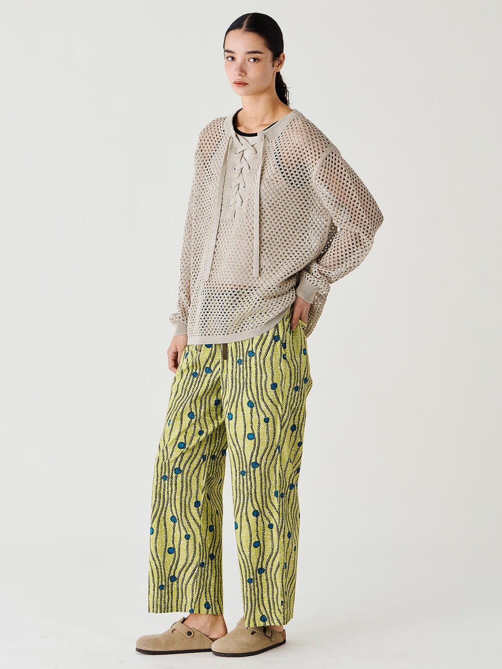 - ゴムウエストにドローコードを通したイージー仕様