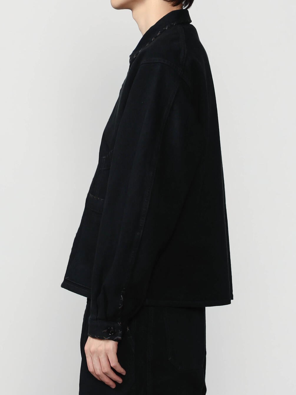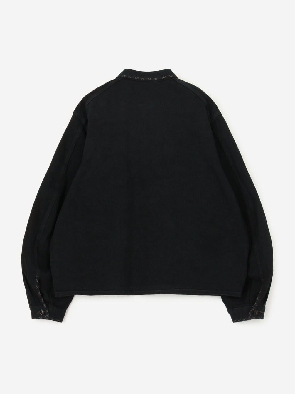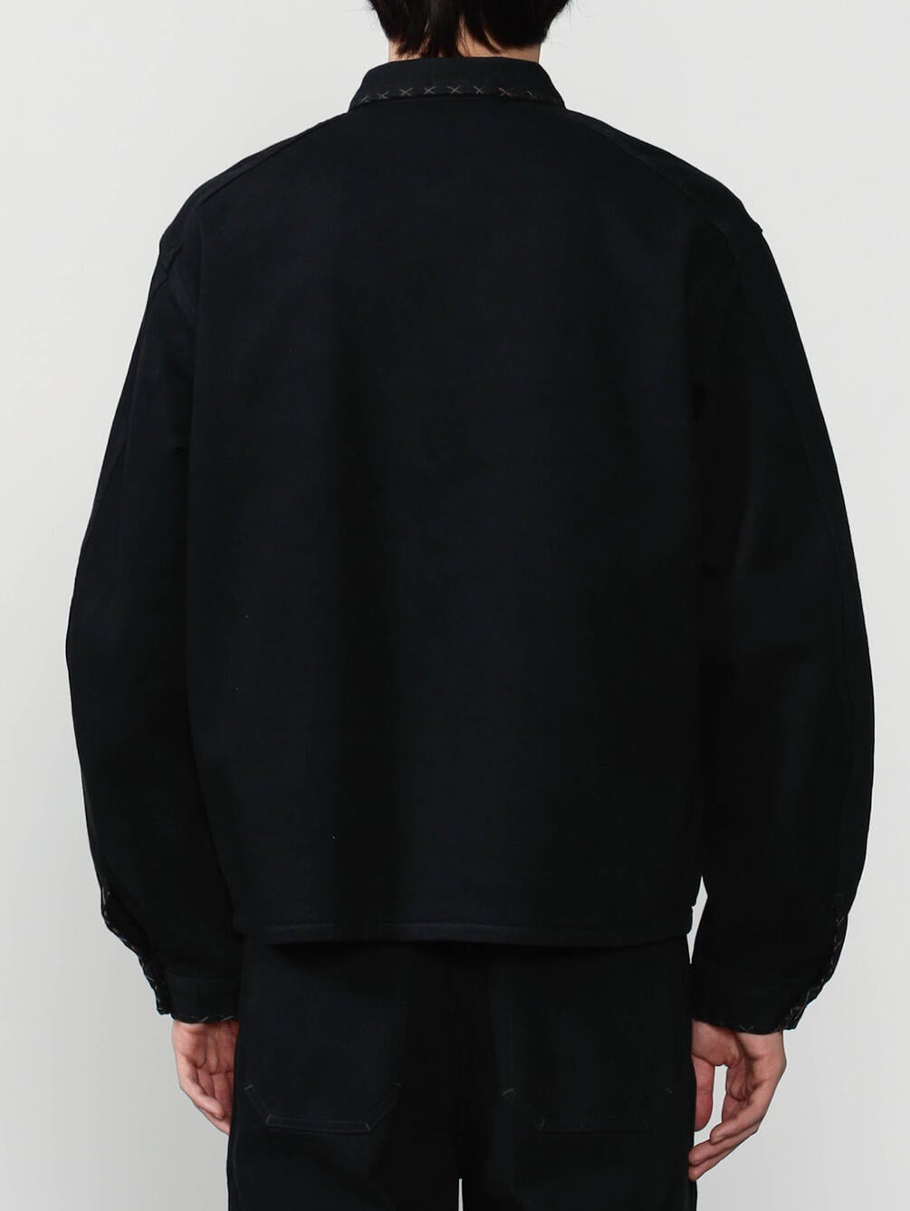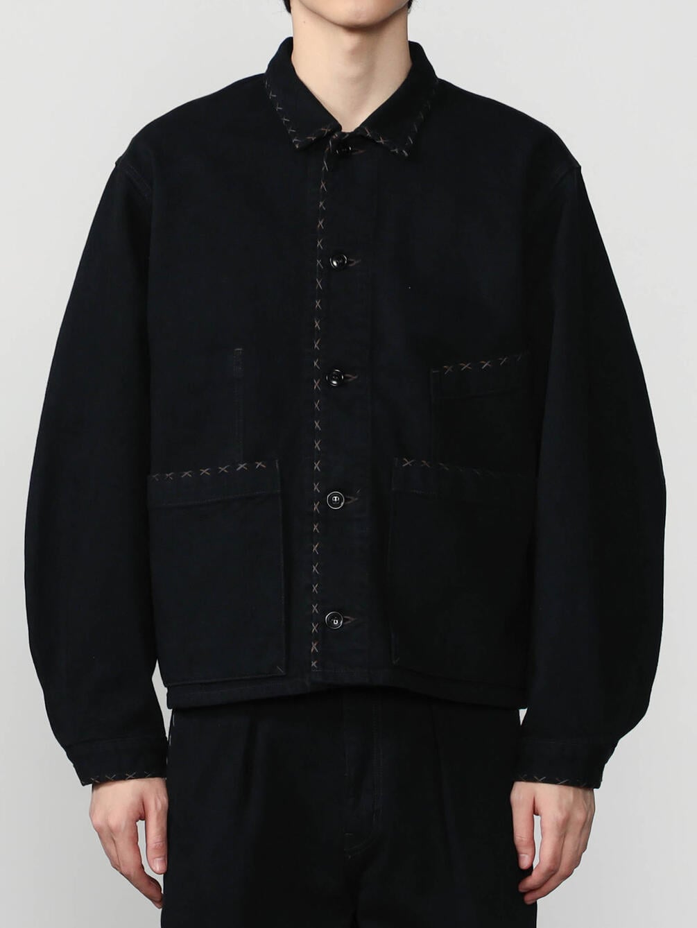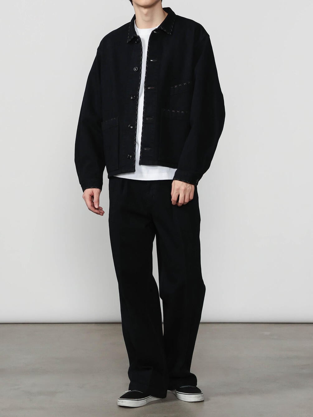 - 襟周り、フロント端、裾周り、袖口周り、胸、腰ポケット口には同系色のハンド刺繍