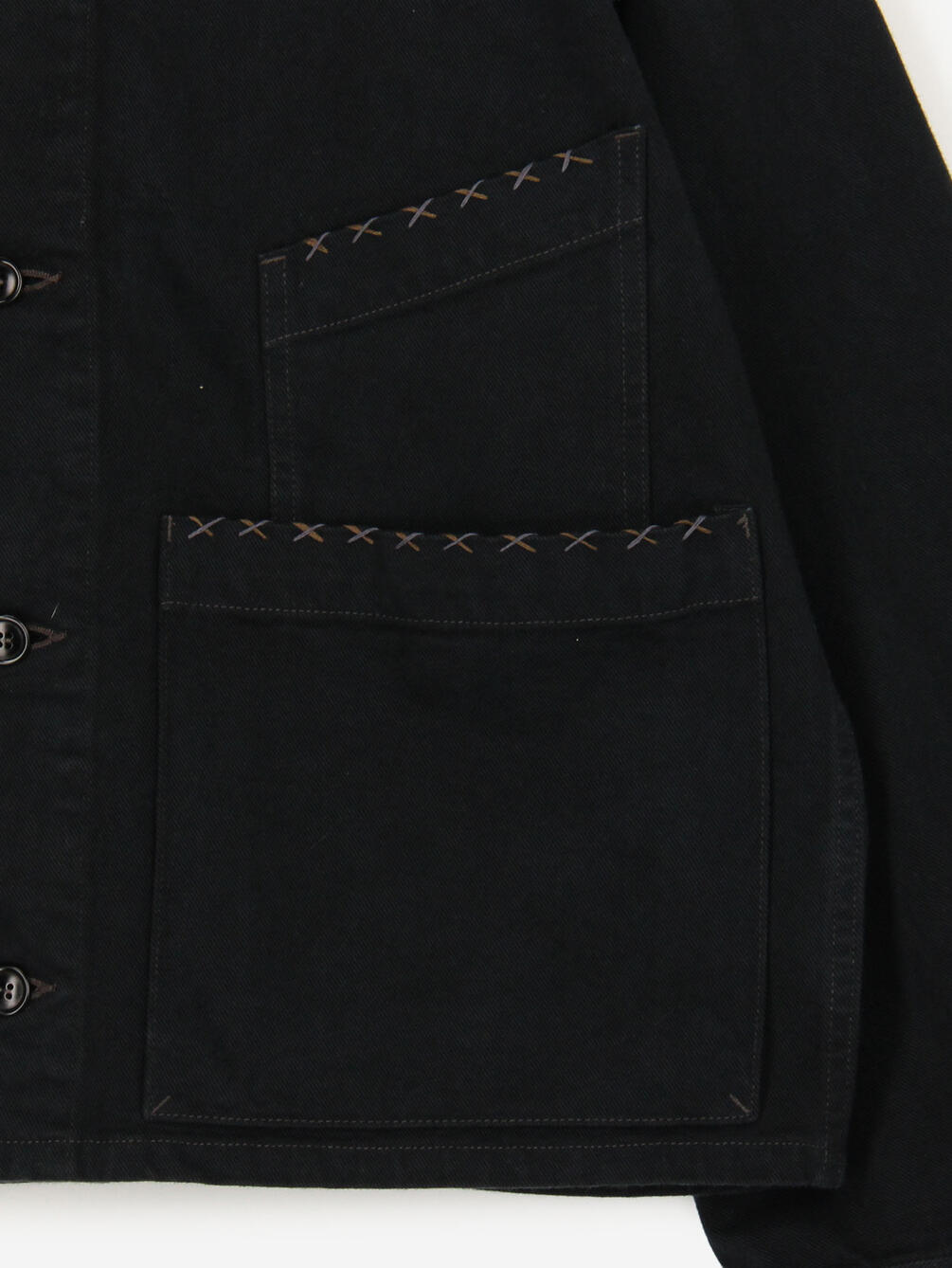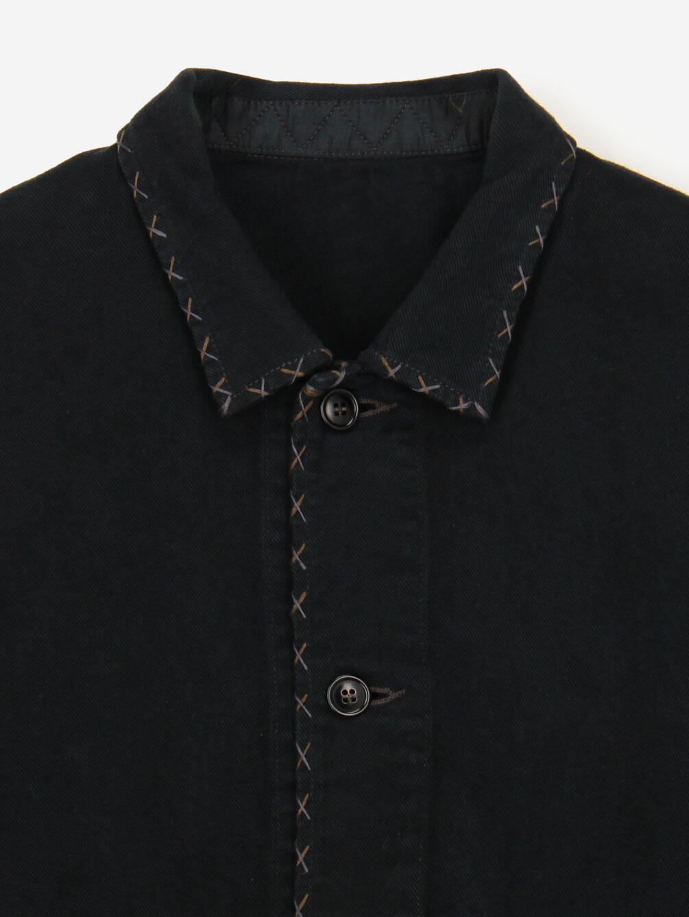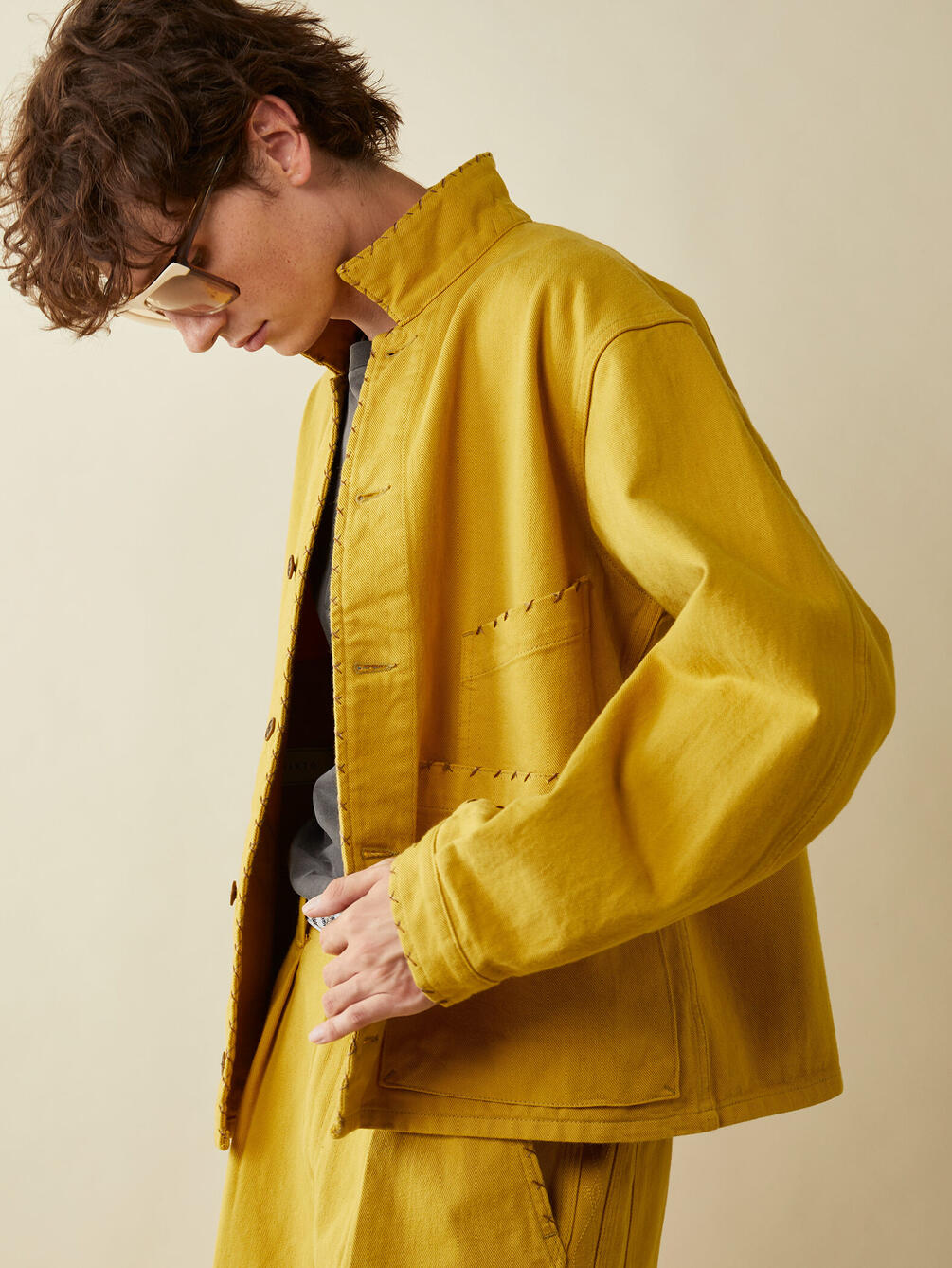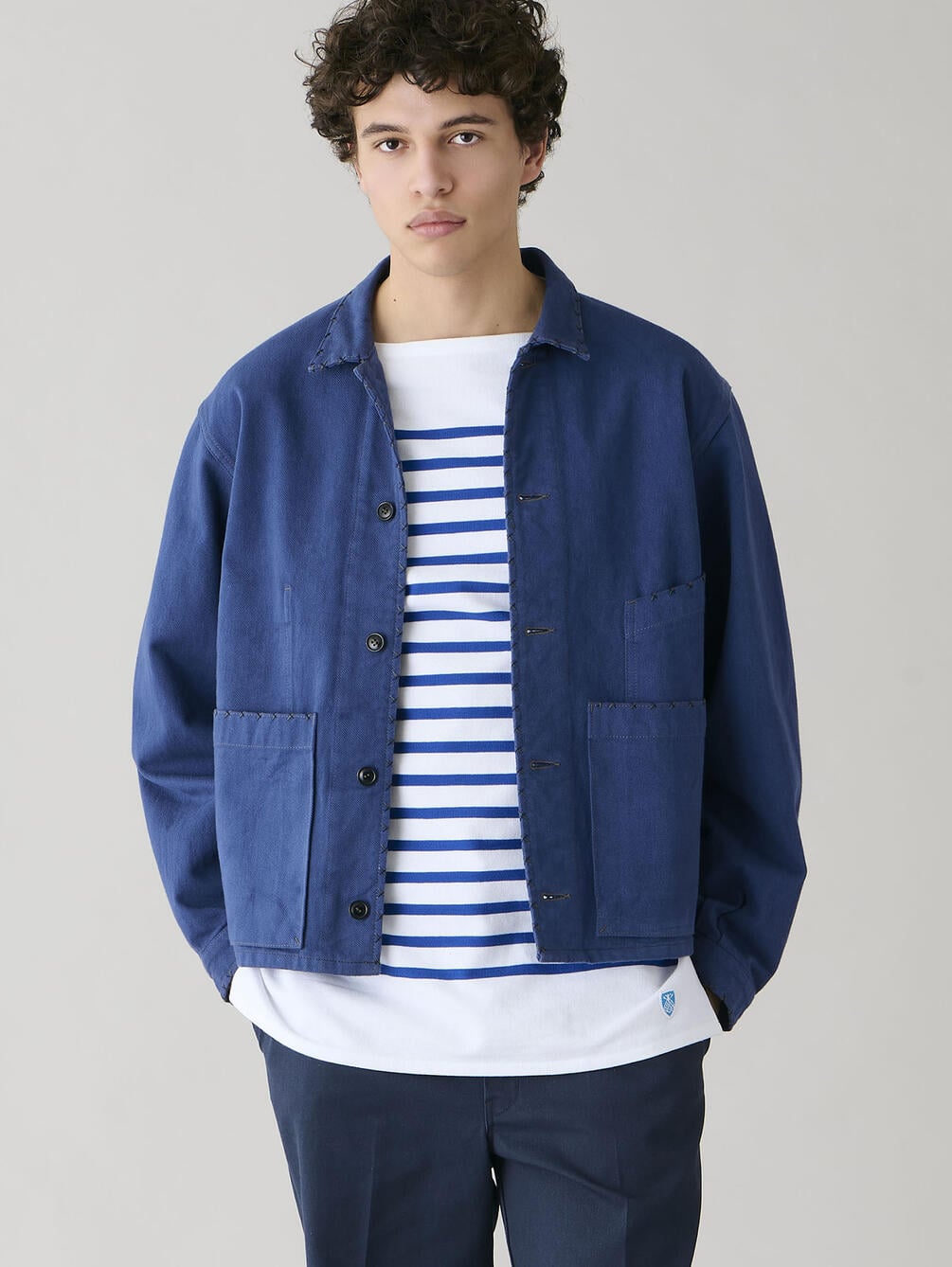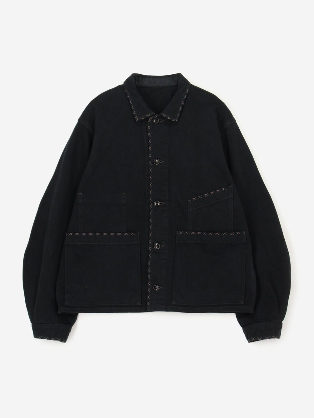 - 襟周り、フロント端、裾周り、袖口周り、胸、腰ポケット口には同系色のハンド刺繍