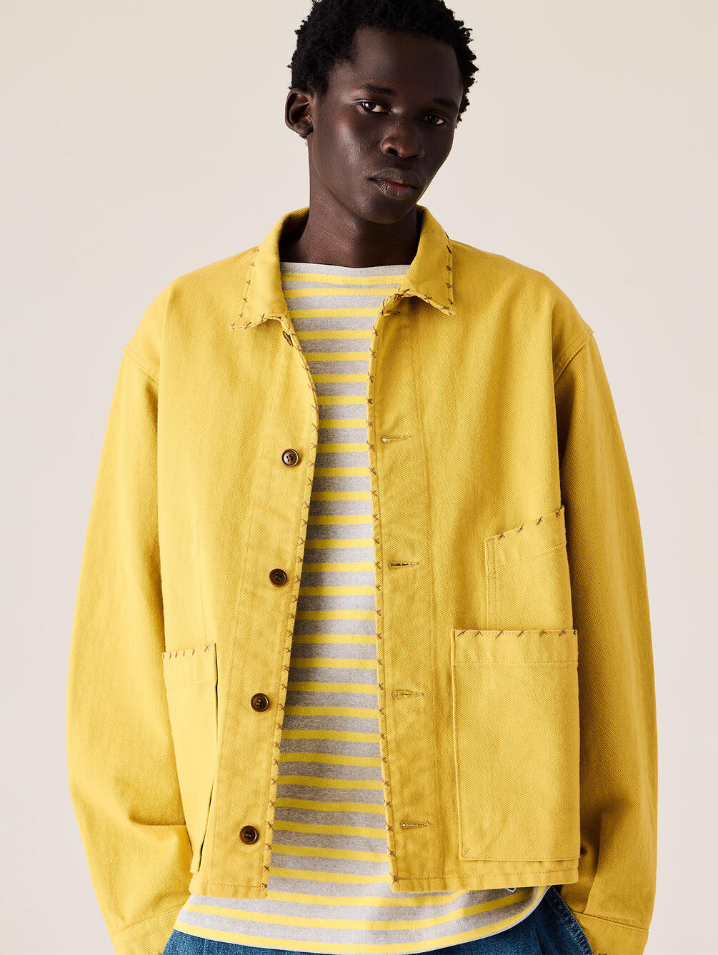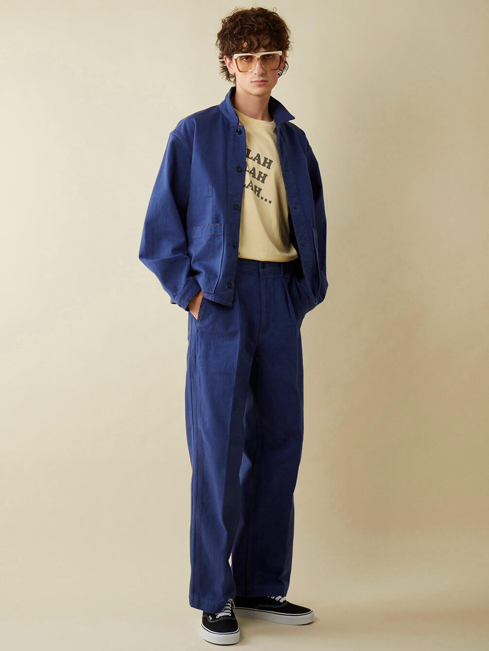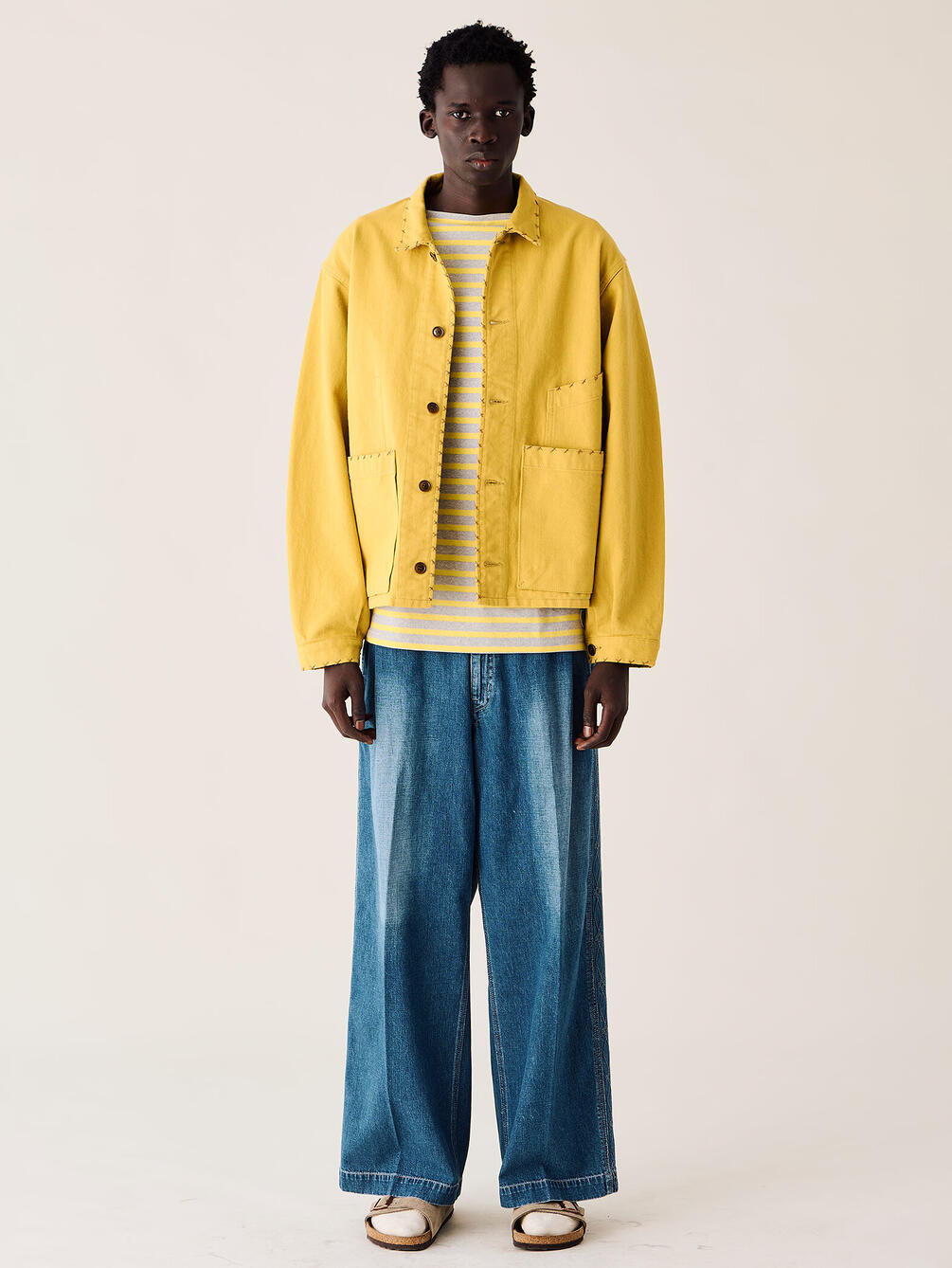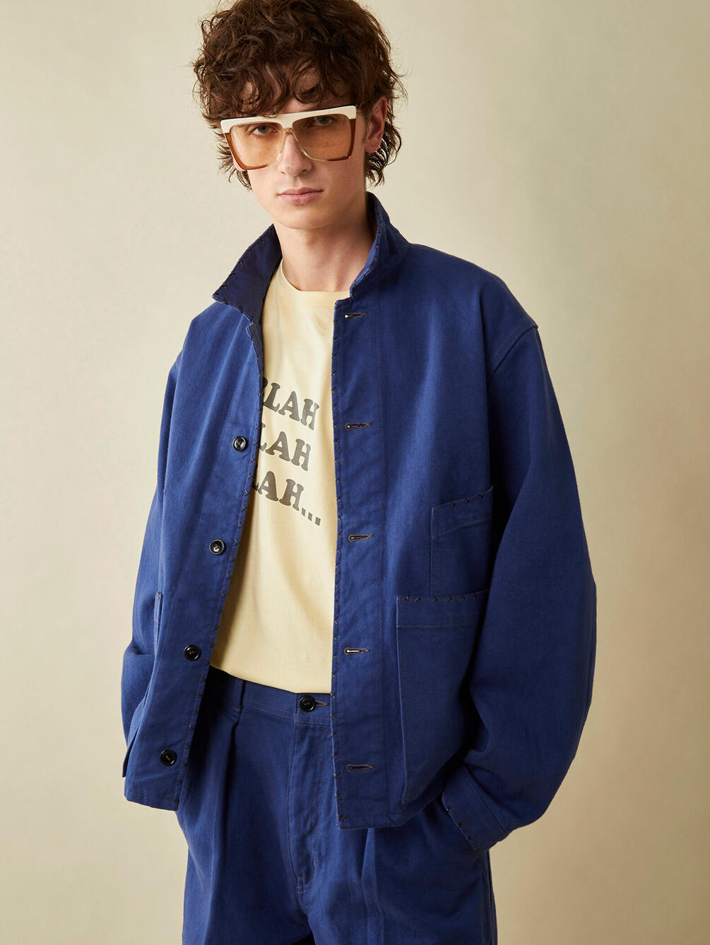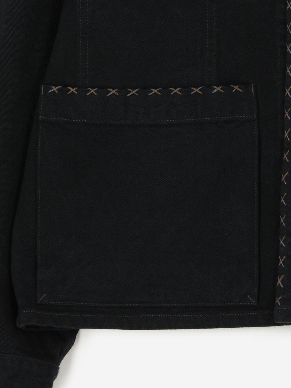 - 襟周り、フロント端、裾周り、袖口周り、胸、腰ポケット口には同系色のハンド刺繍