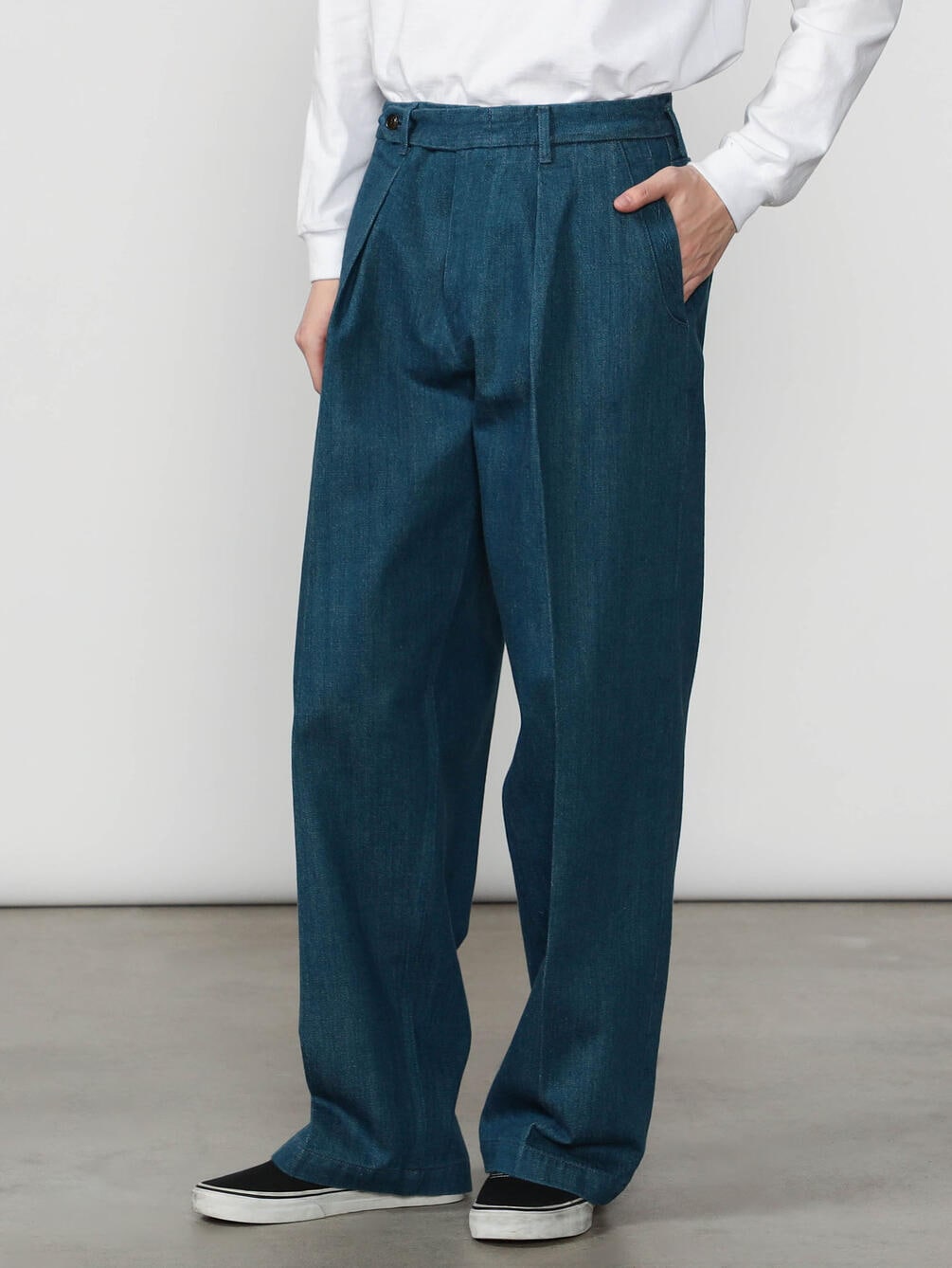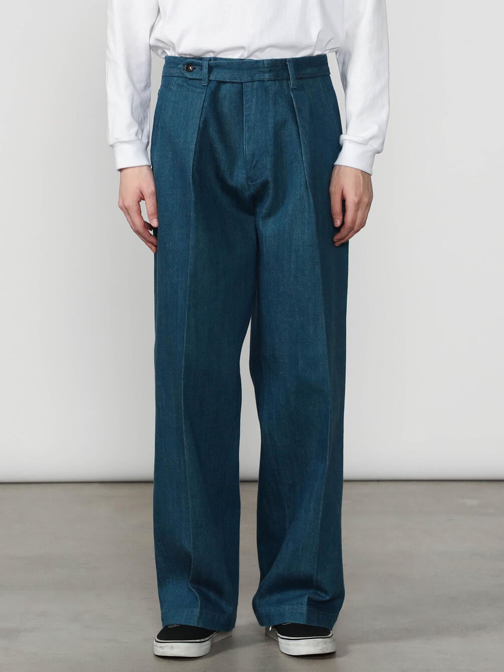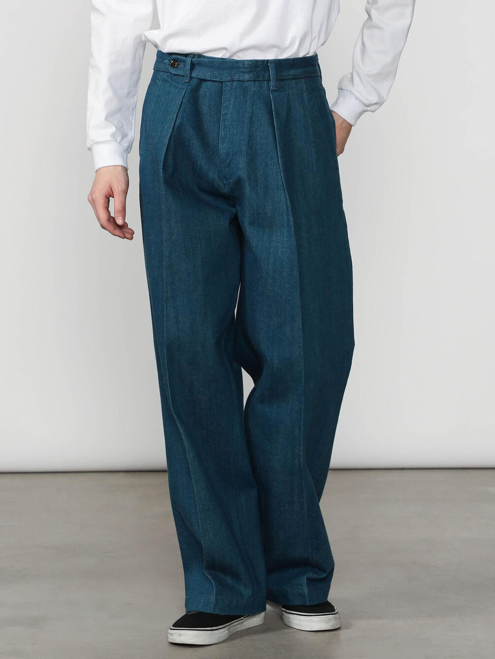 - トラウザー仕立ての1タックデニムパンツ