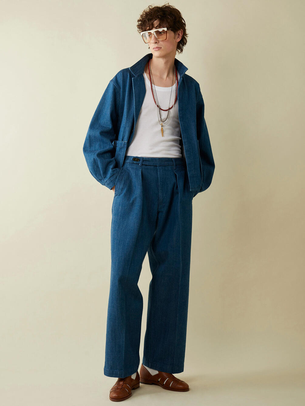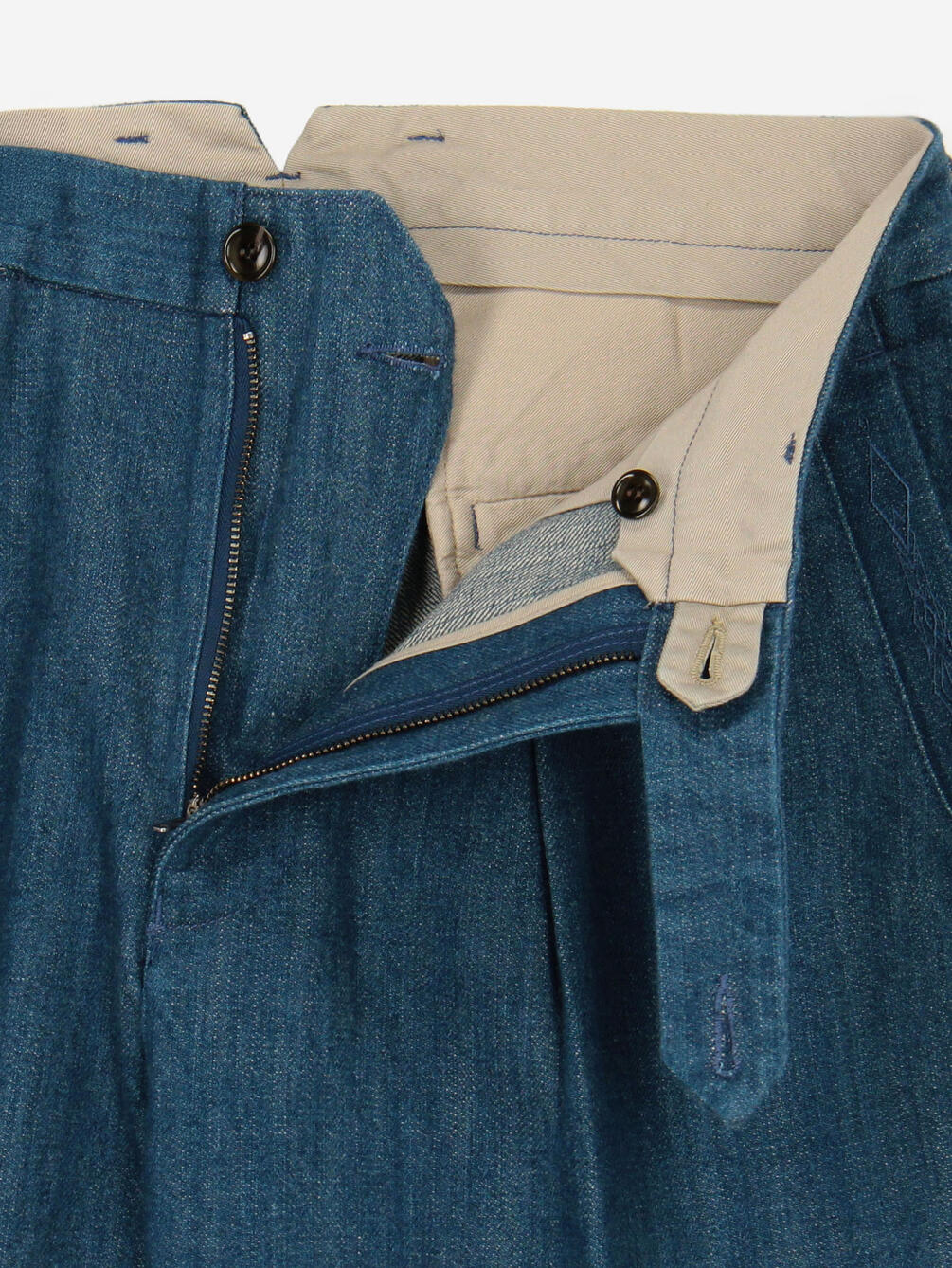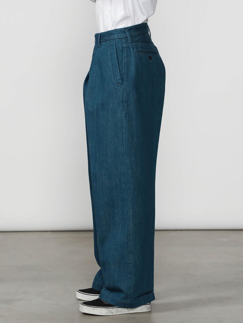 - トラウザー仕立ての1タックデニムパンツ