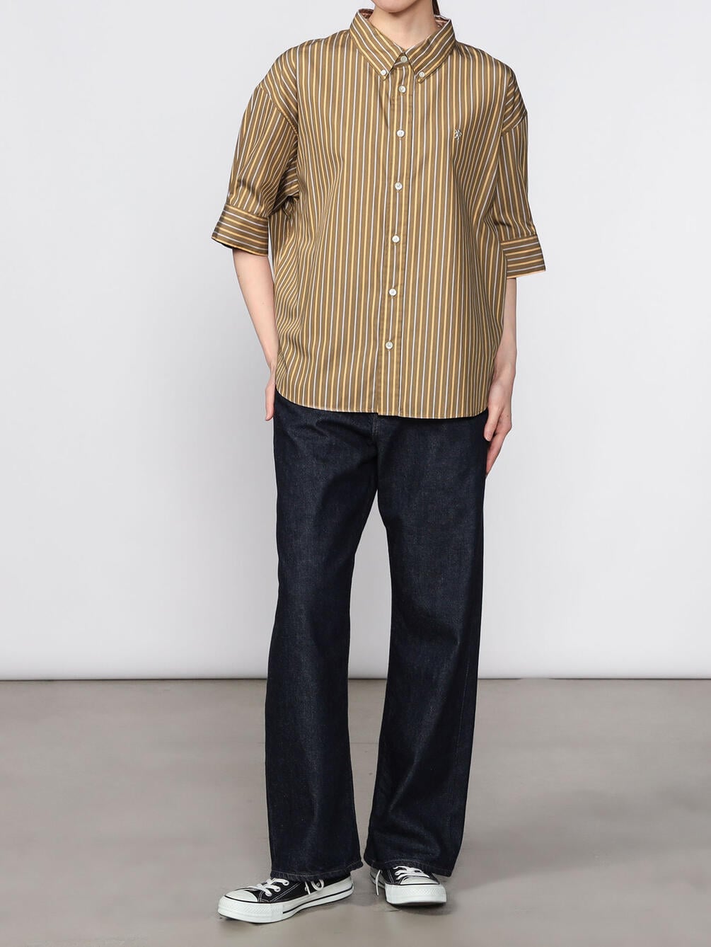 - 抜き襟のボタンダウンシャツ