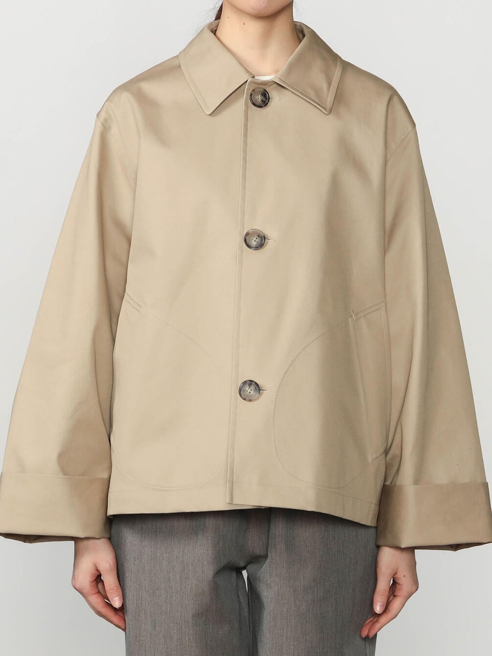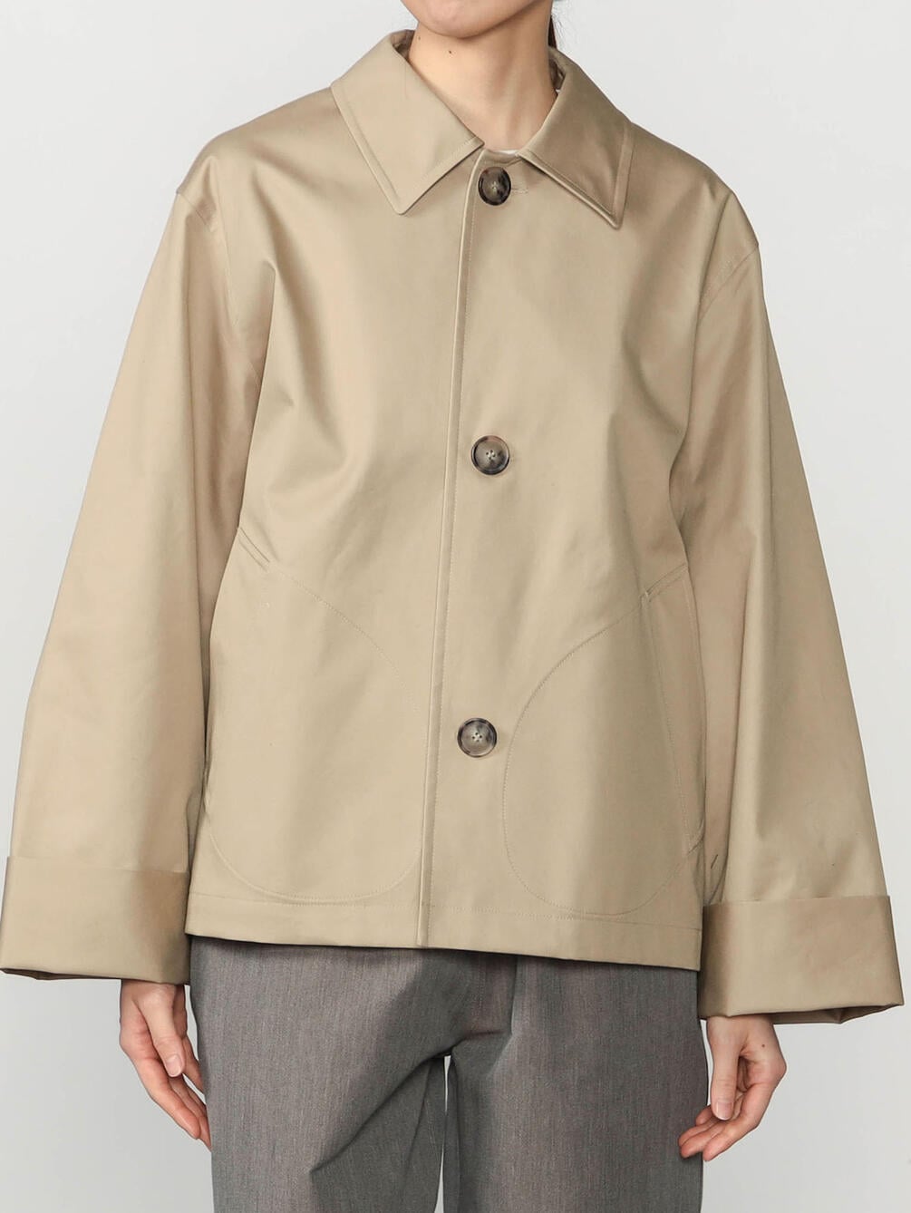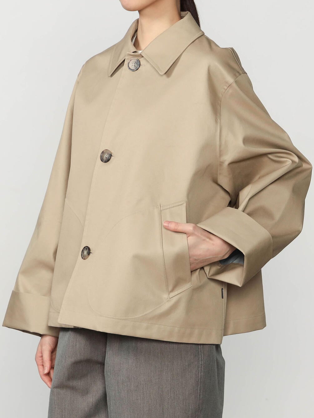 - Aラインシルエットのショートコート