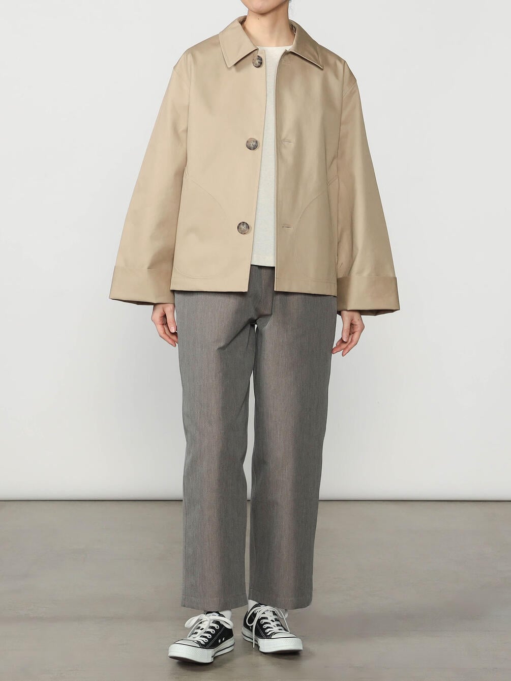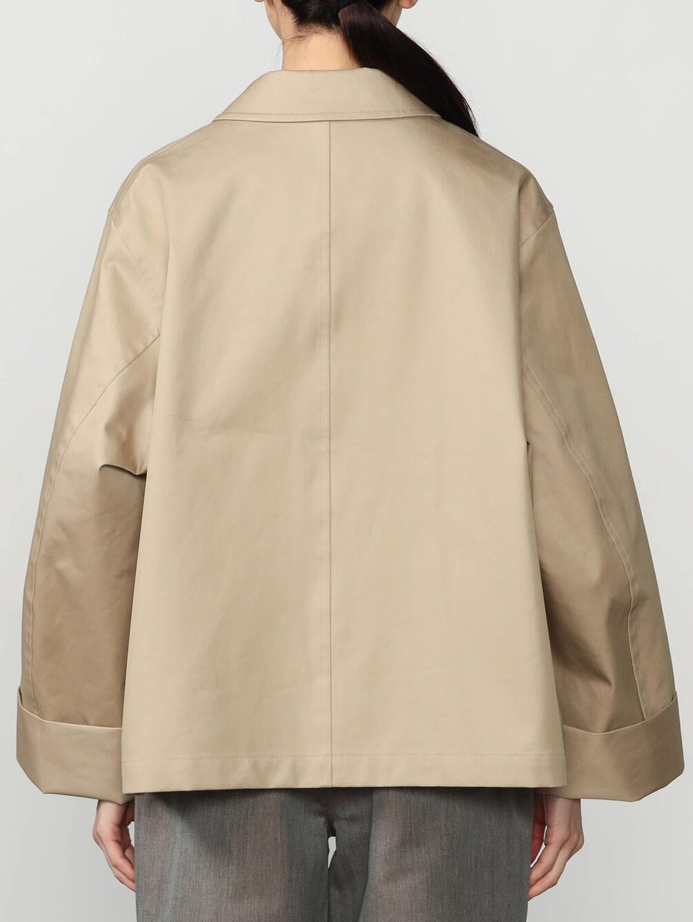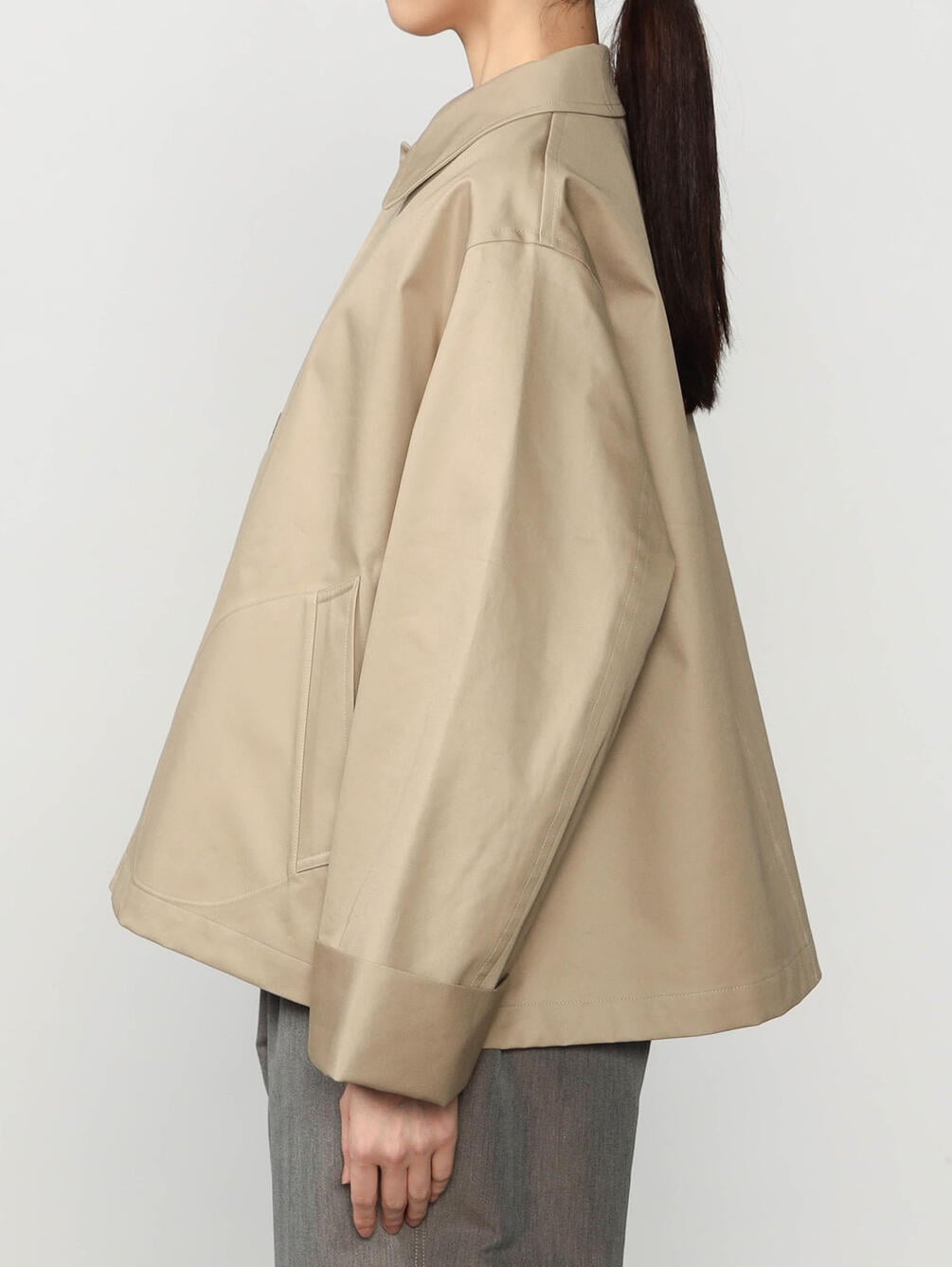 - Aラインシルエットのショートコート