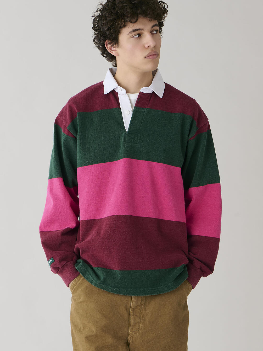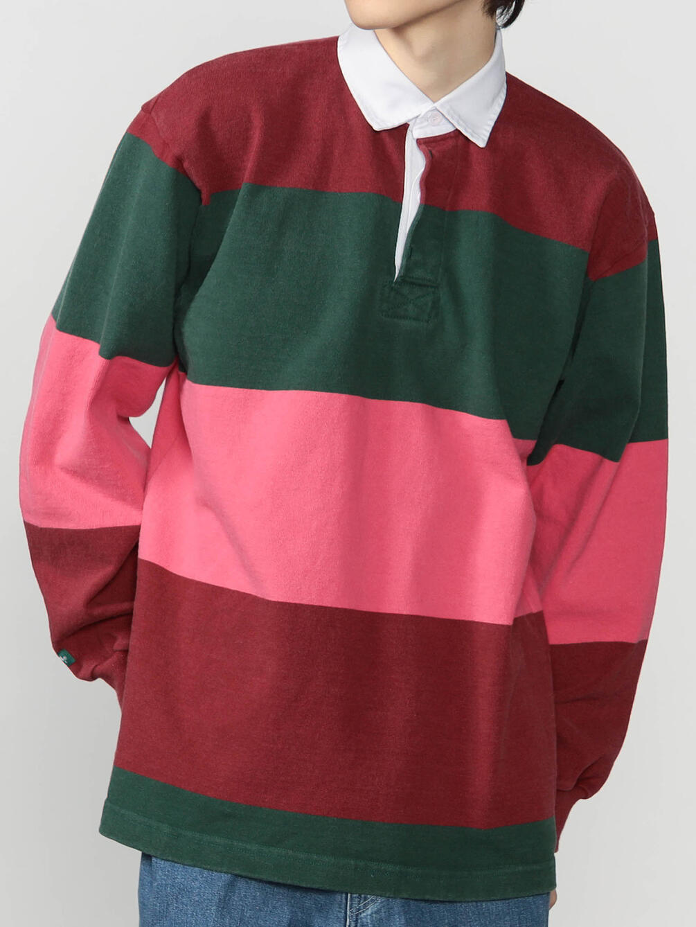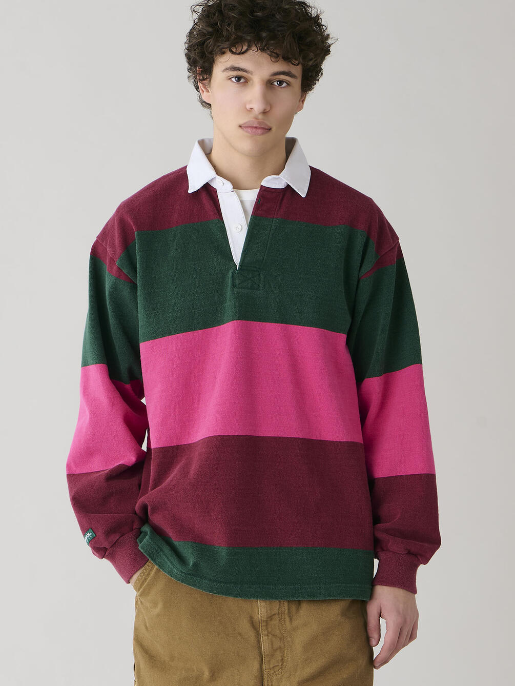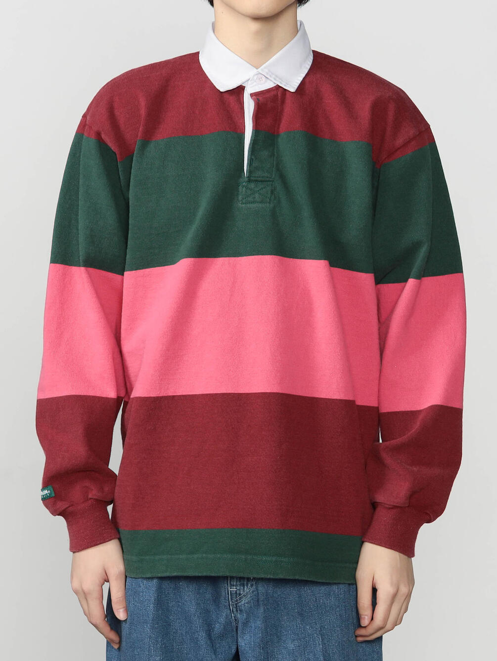 - 太いボーダーが特徴的な長袖ラグビーシャツ