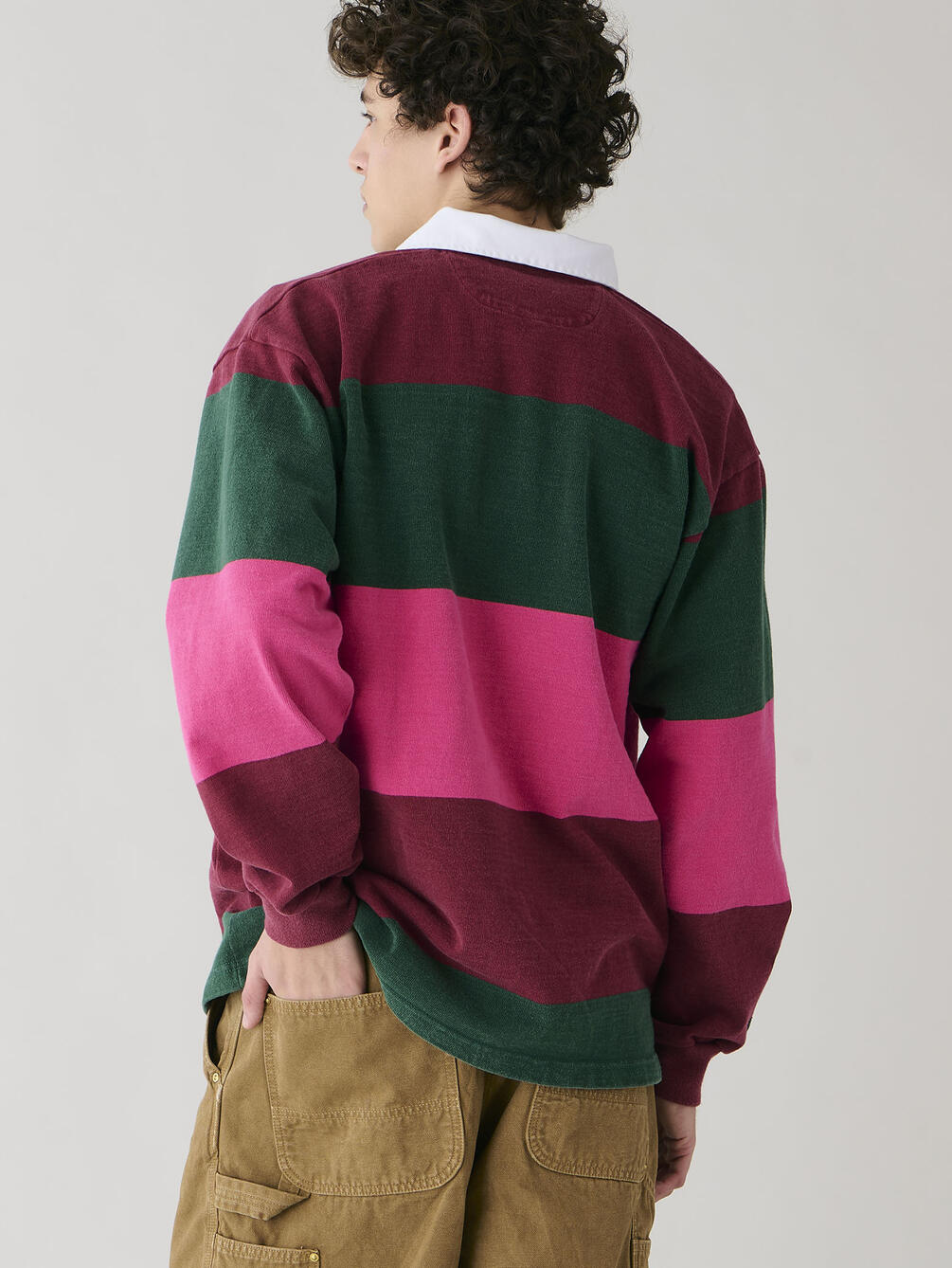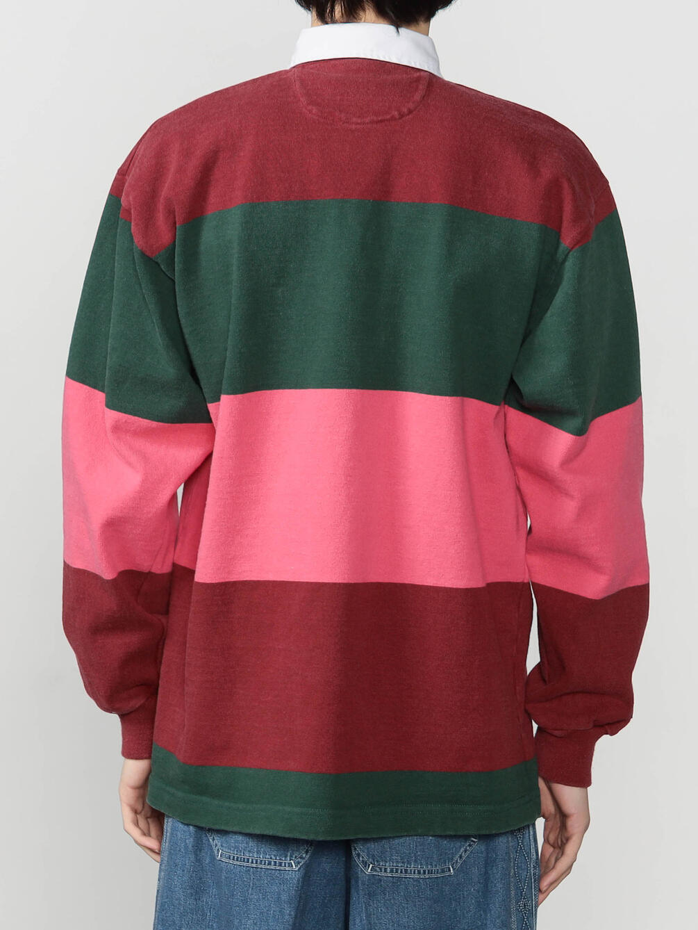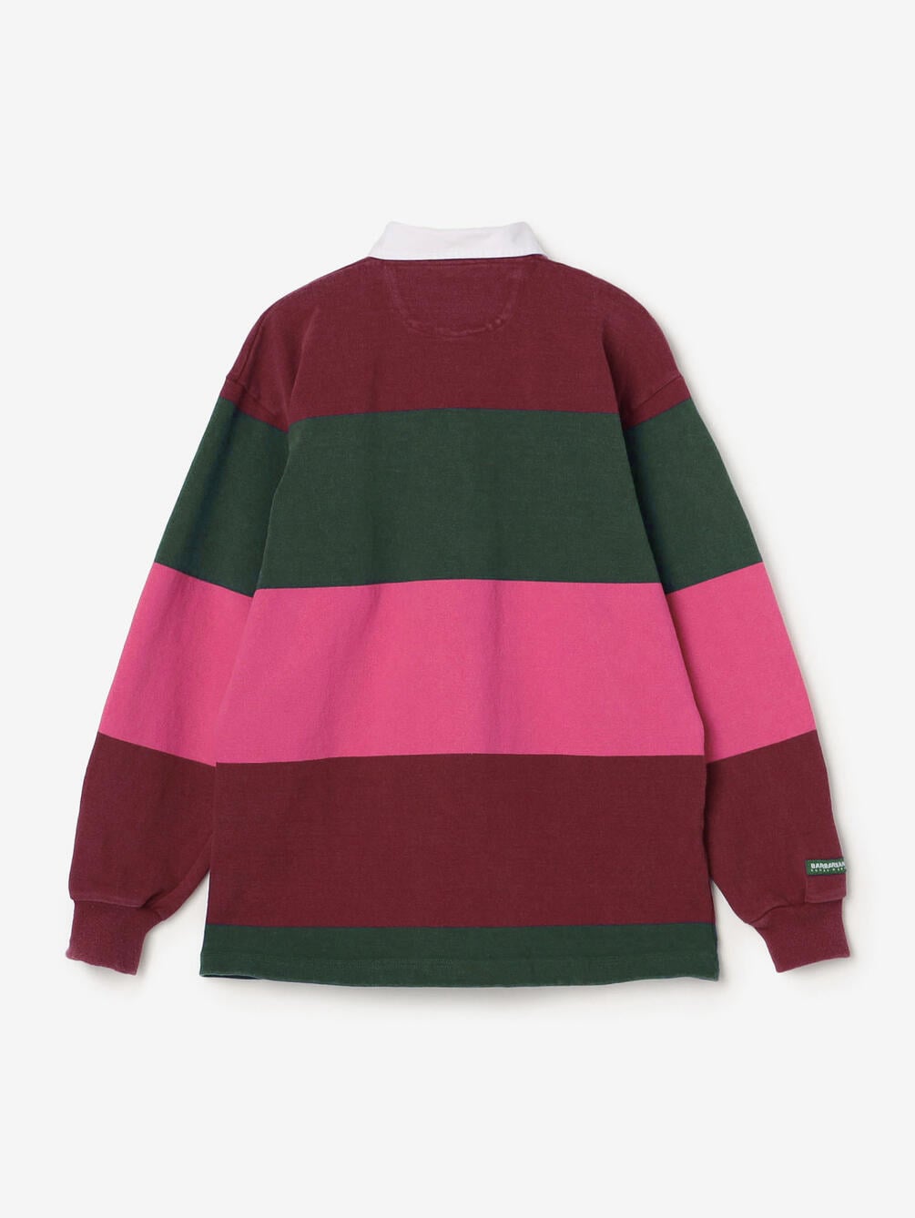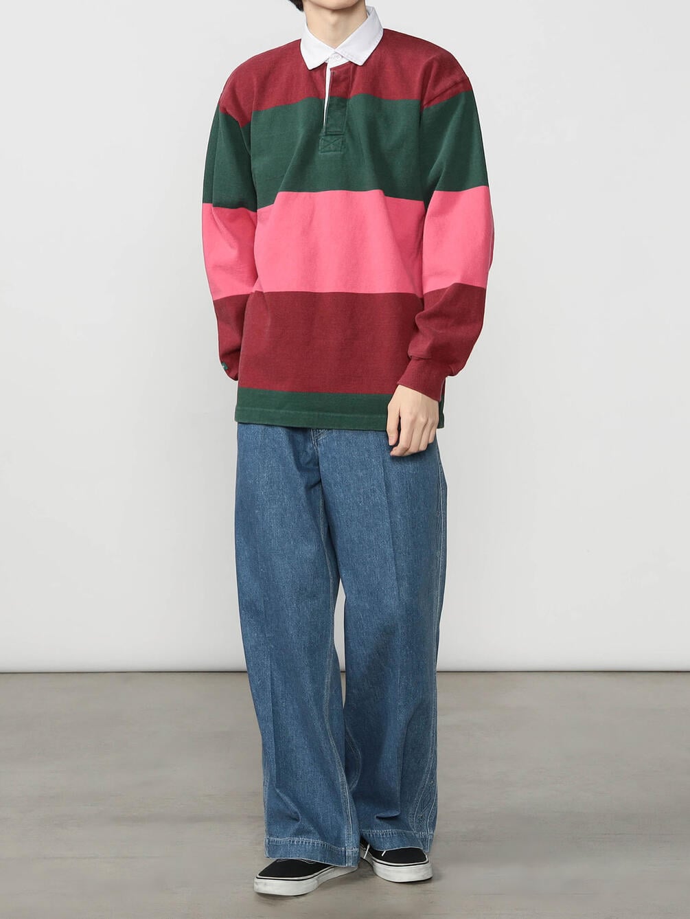 - 太いボーダーが特徴的な長袖ラグビーシャツ