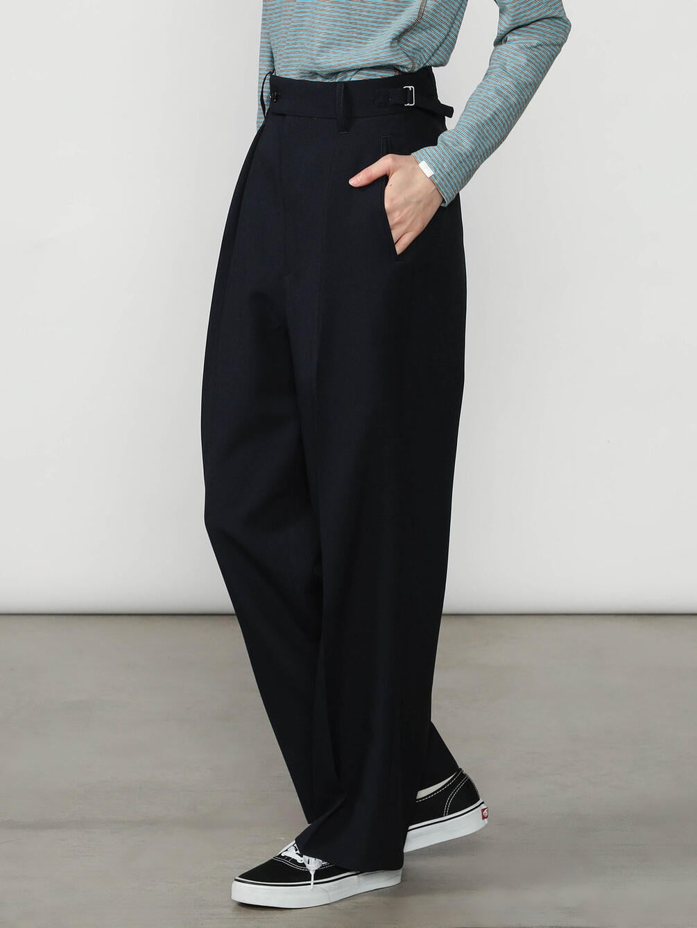 - 上品さとマニッシュな魅力を兼ね備えたスラックスパンツ
