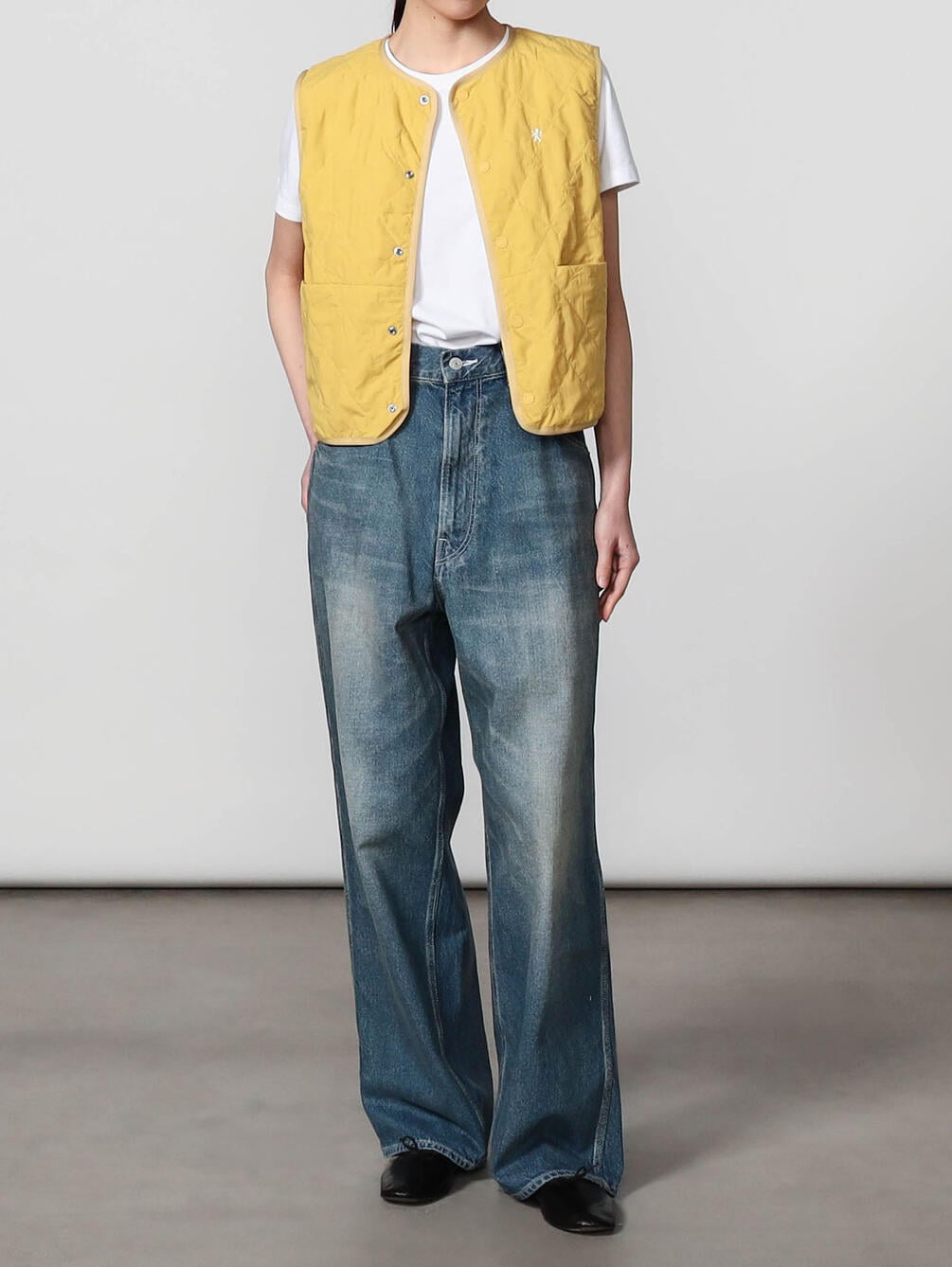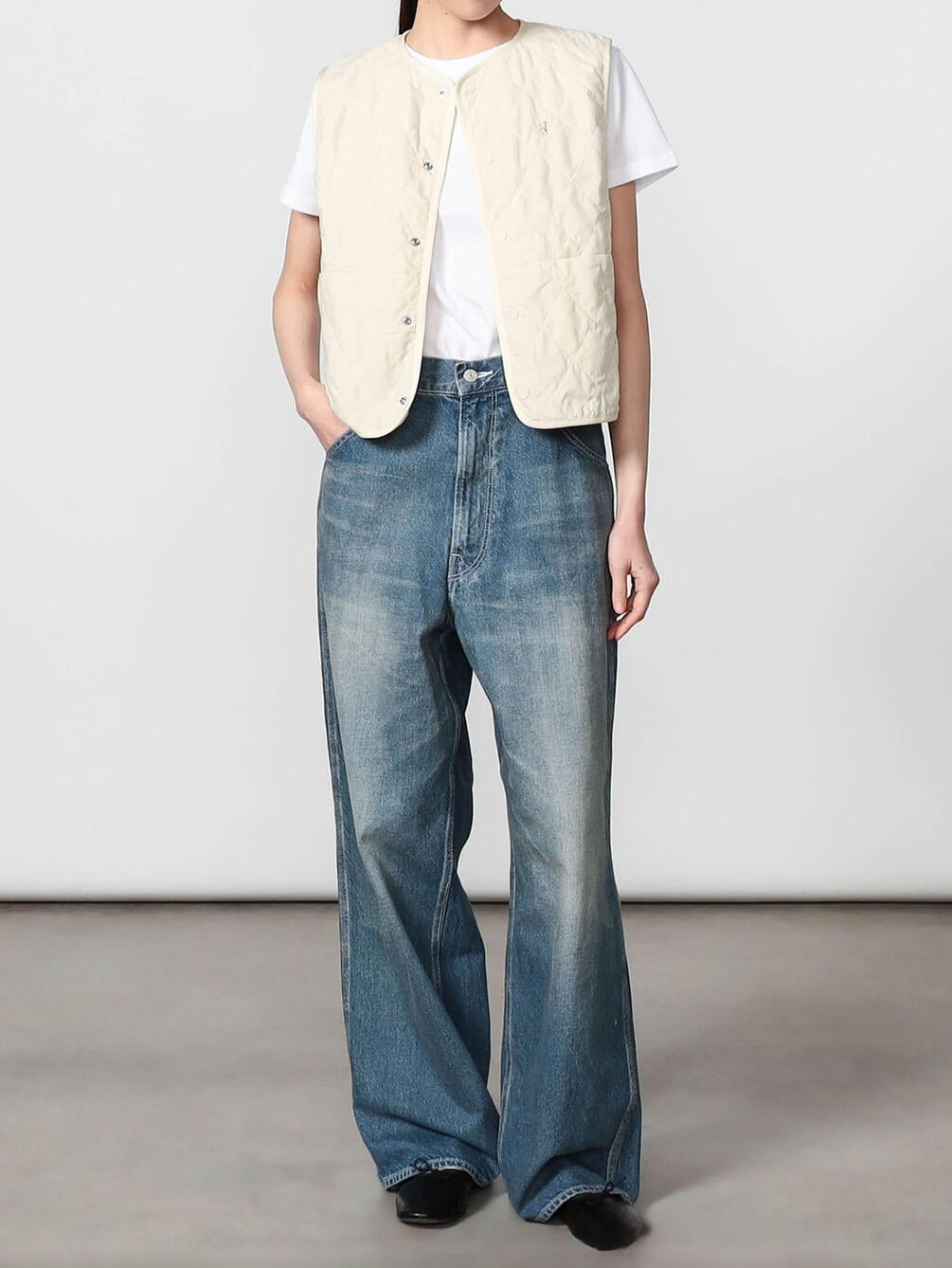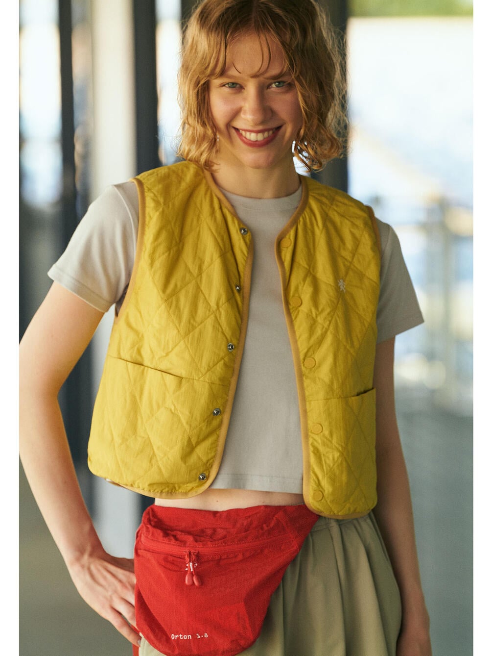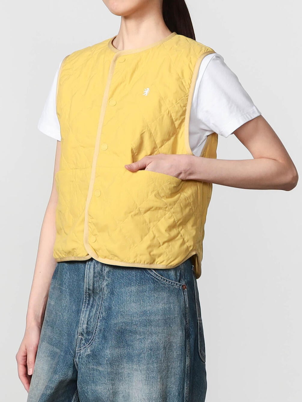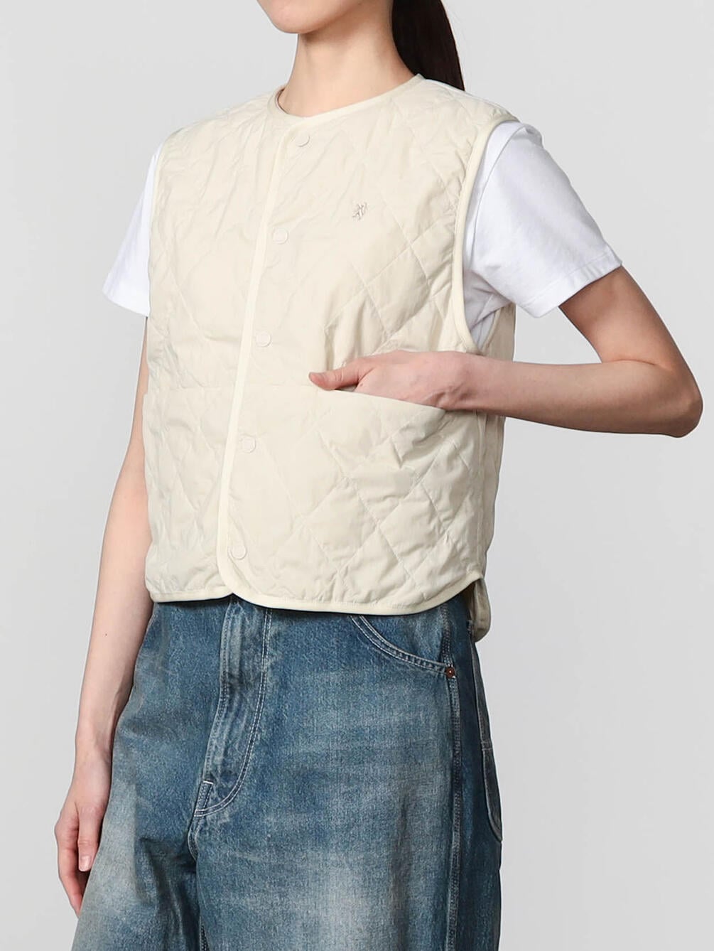 - ショート丈のインナーキルティングベスト