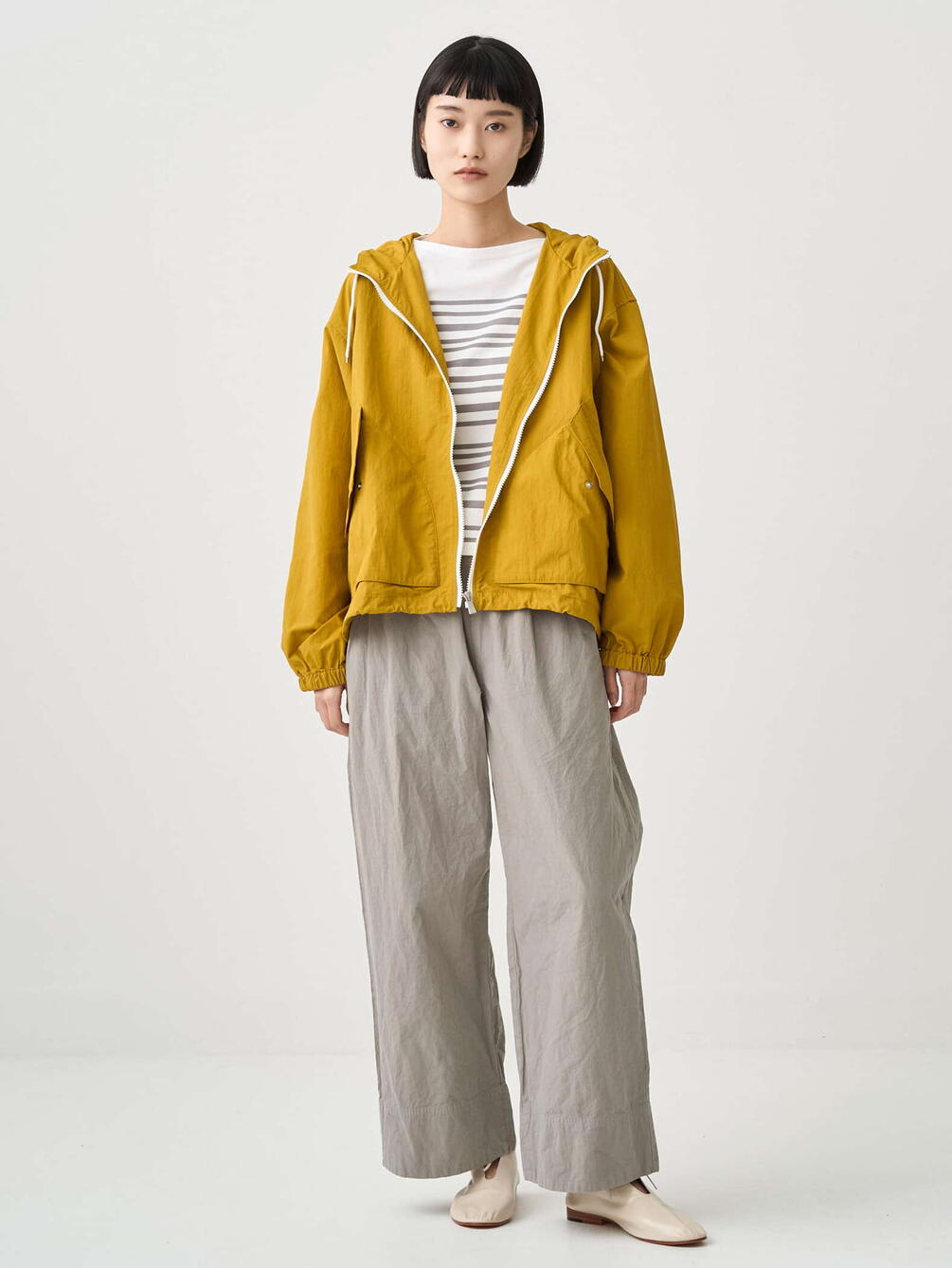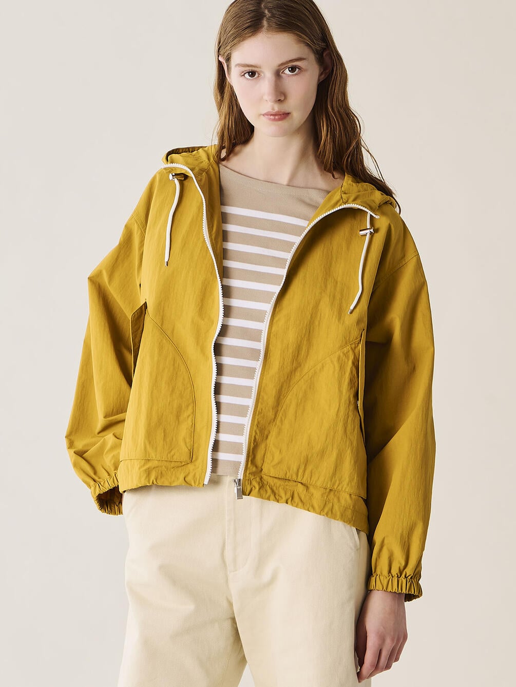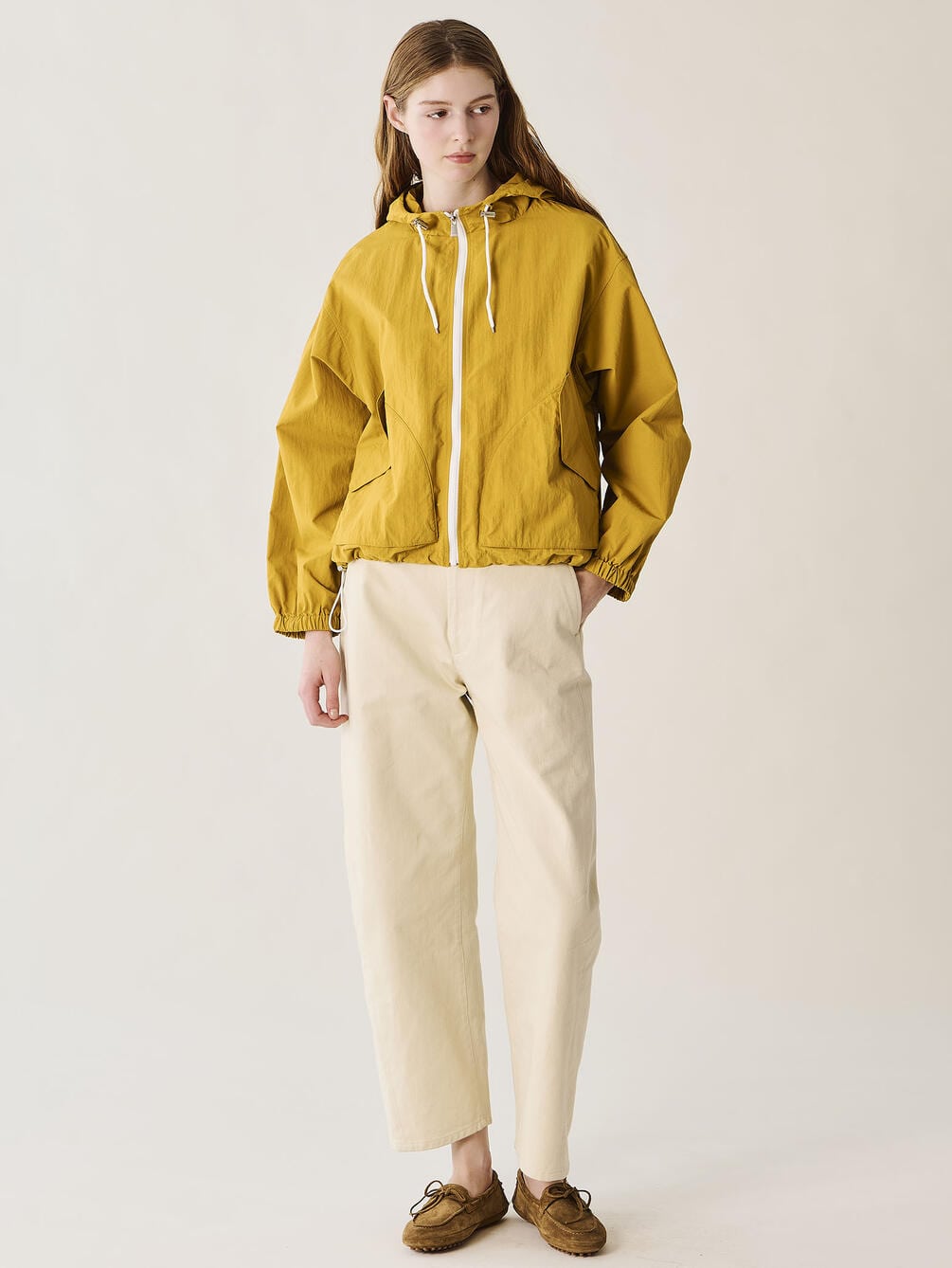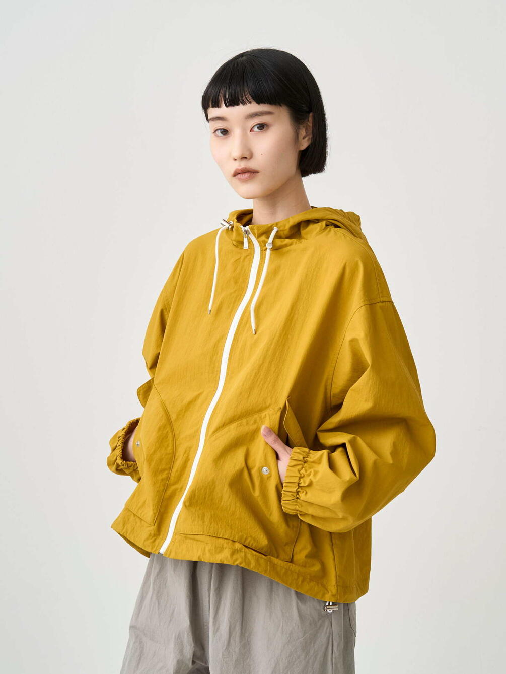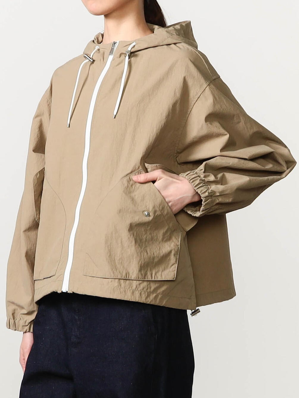 - 裾とフードのふちにドローコードを配備