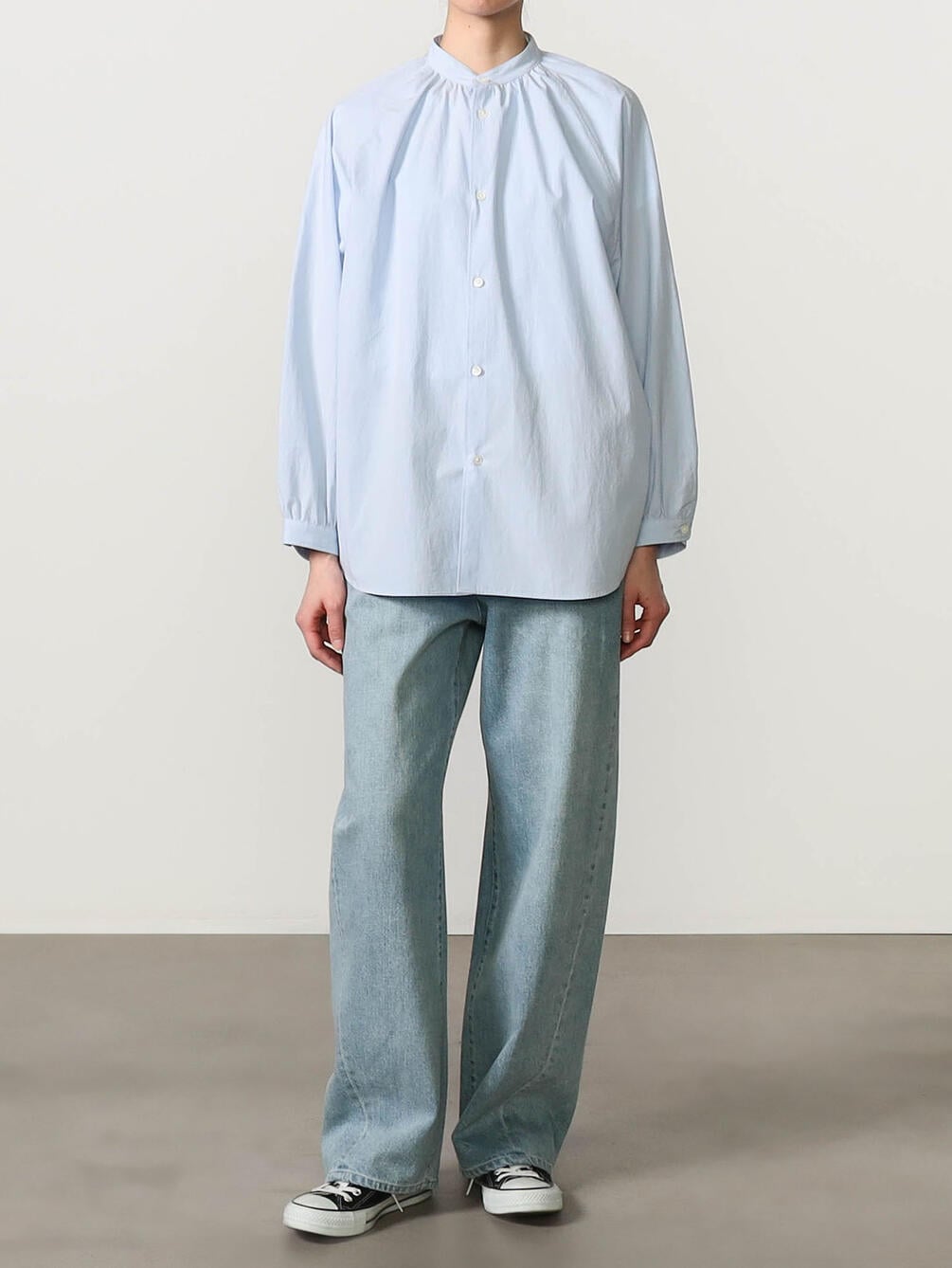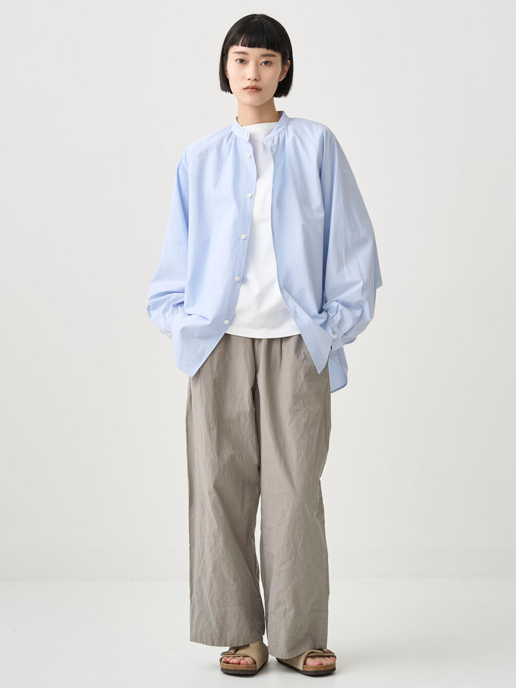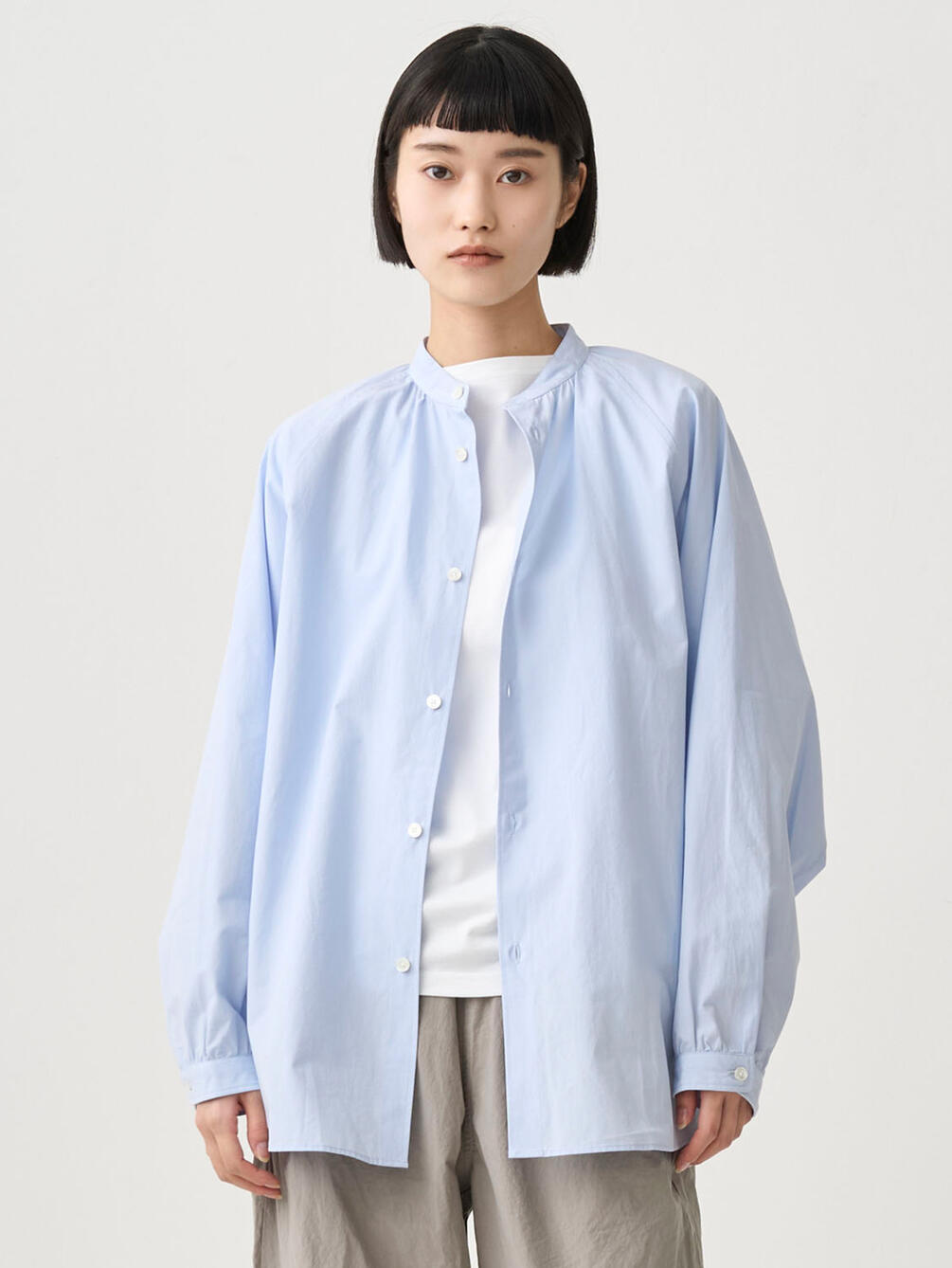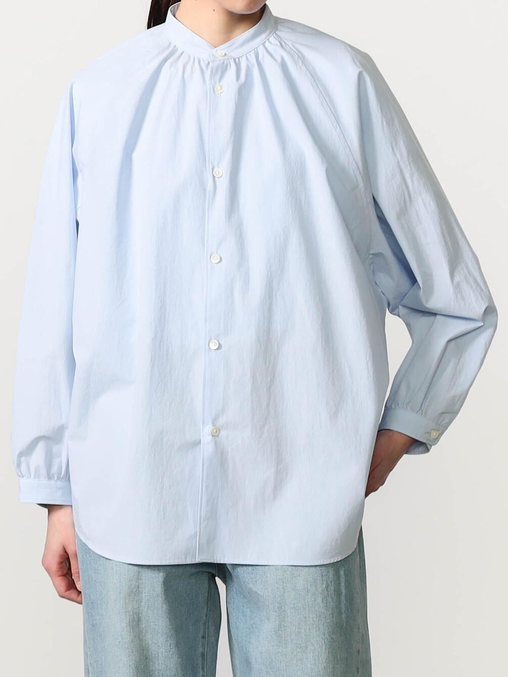 - ボリューム感の出る襟元と袖口のギャザー