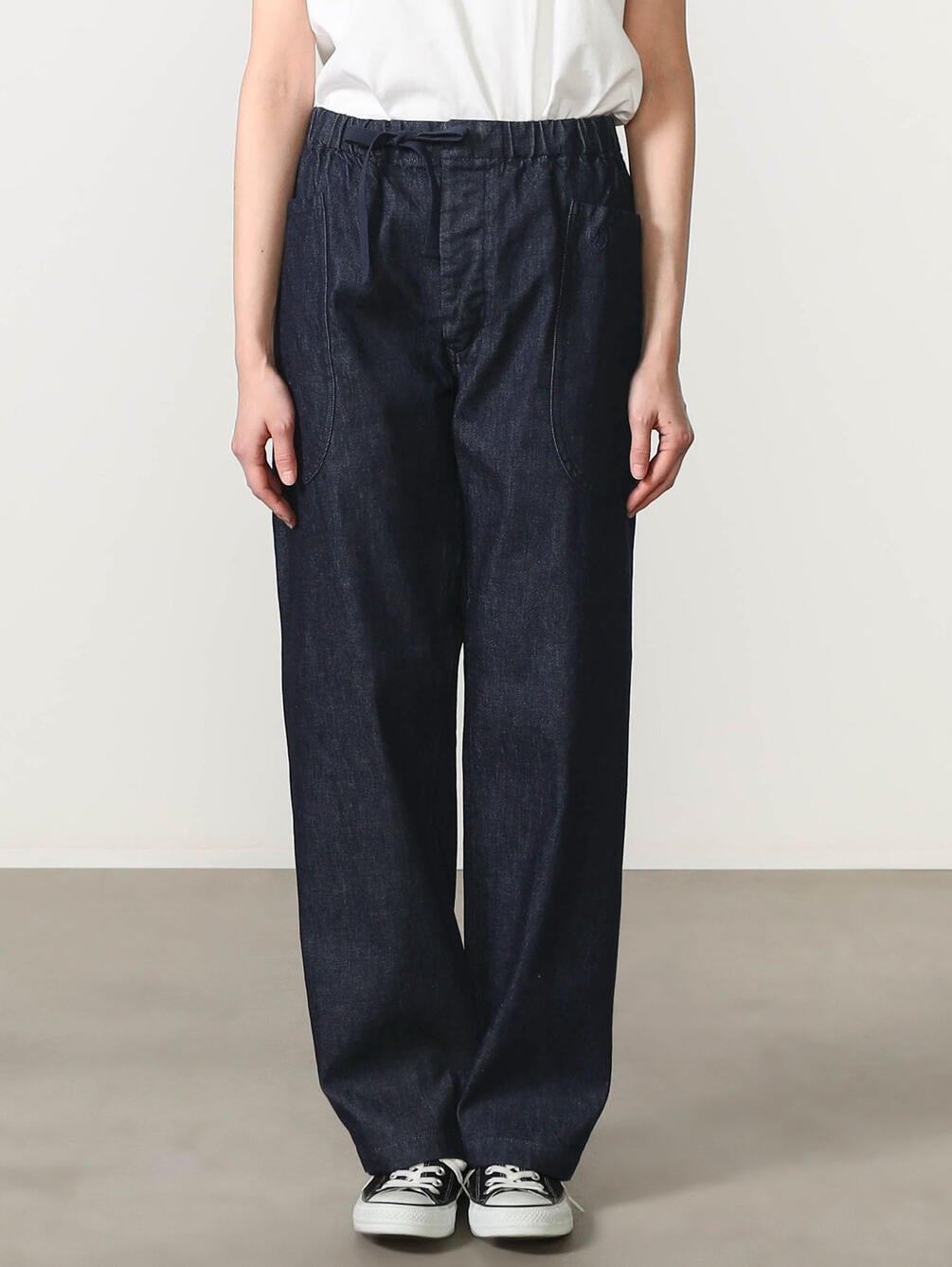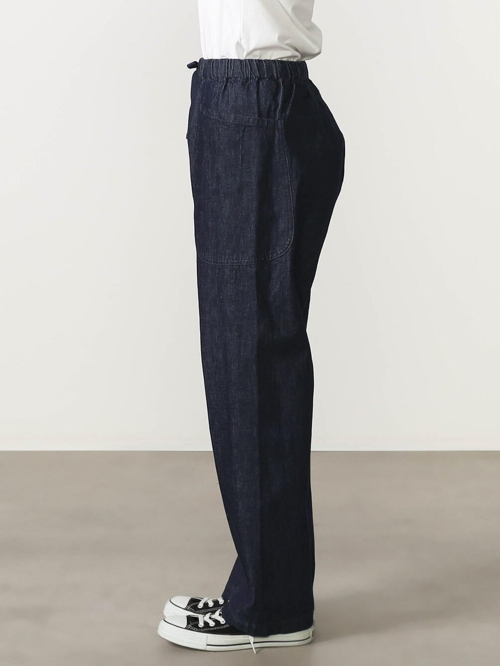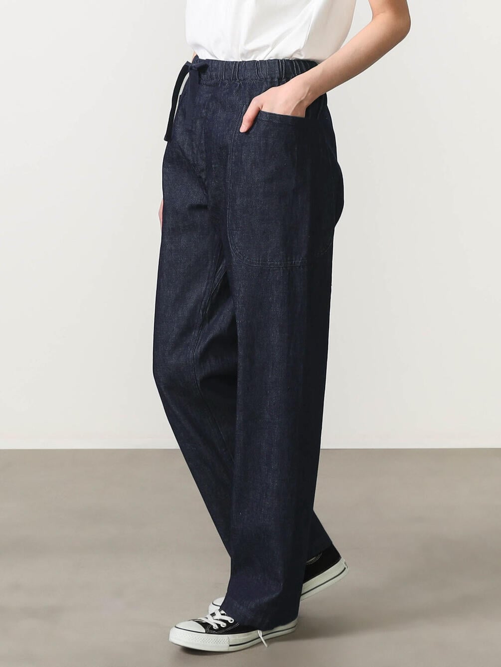 - ゴムウエストにドローコードを通したイージー仕様