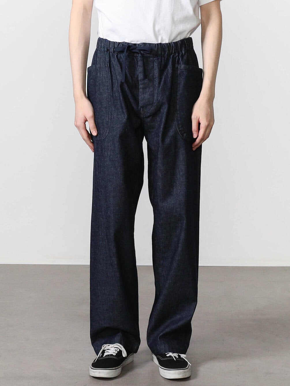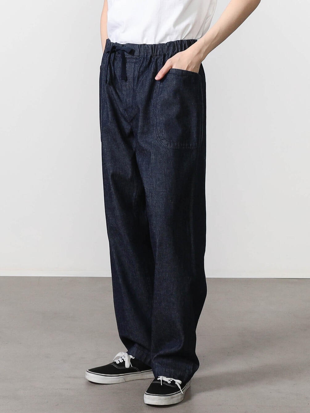 - ゴムウエストにドローコードを通したイージー仕様