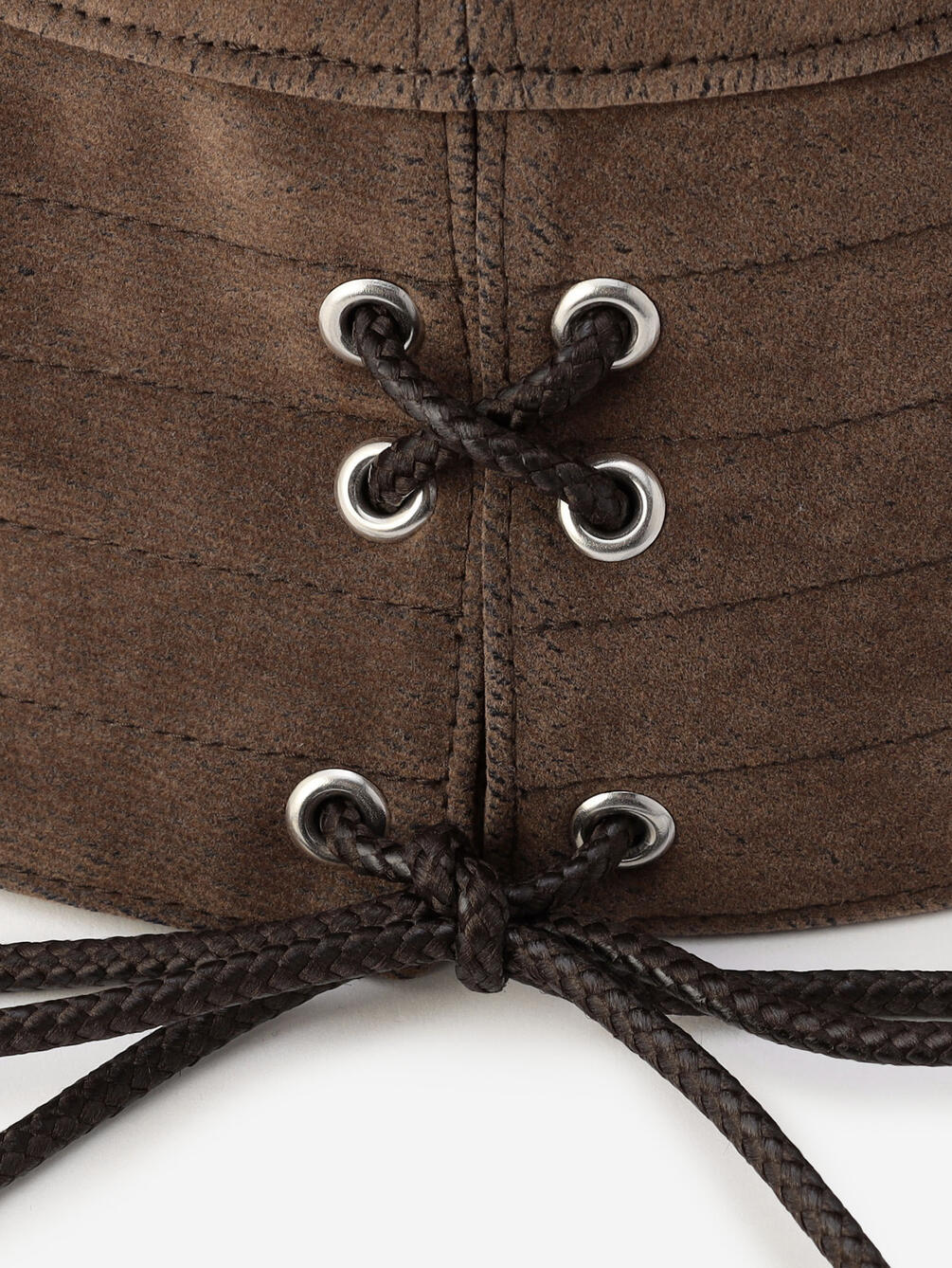 - バックにレザーライクな組紐のレースアップ