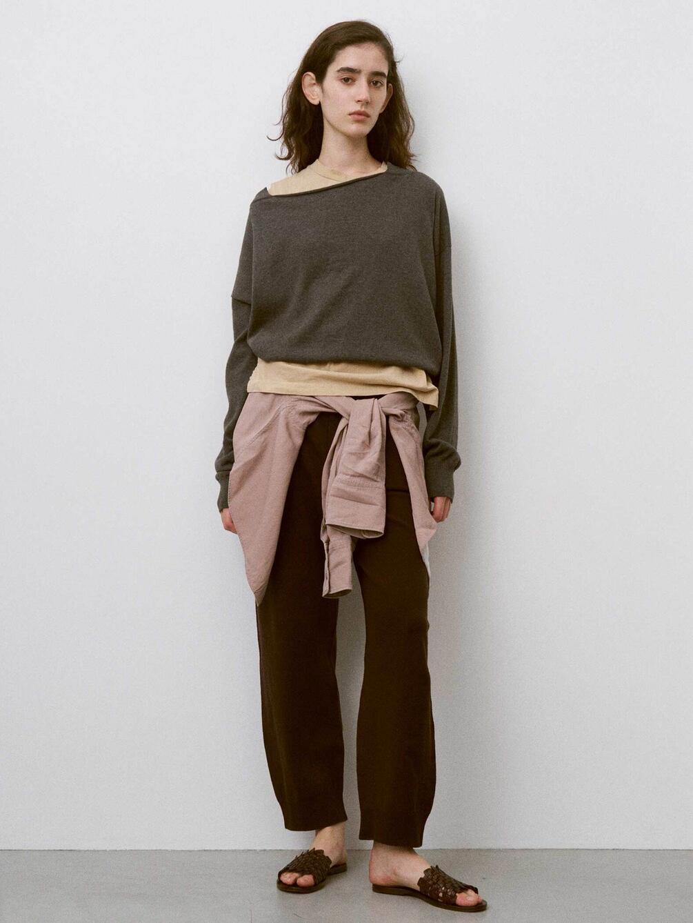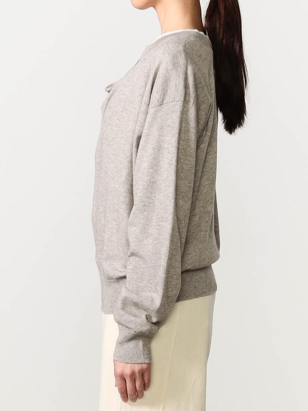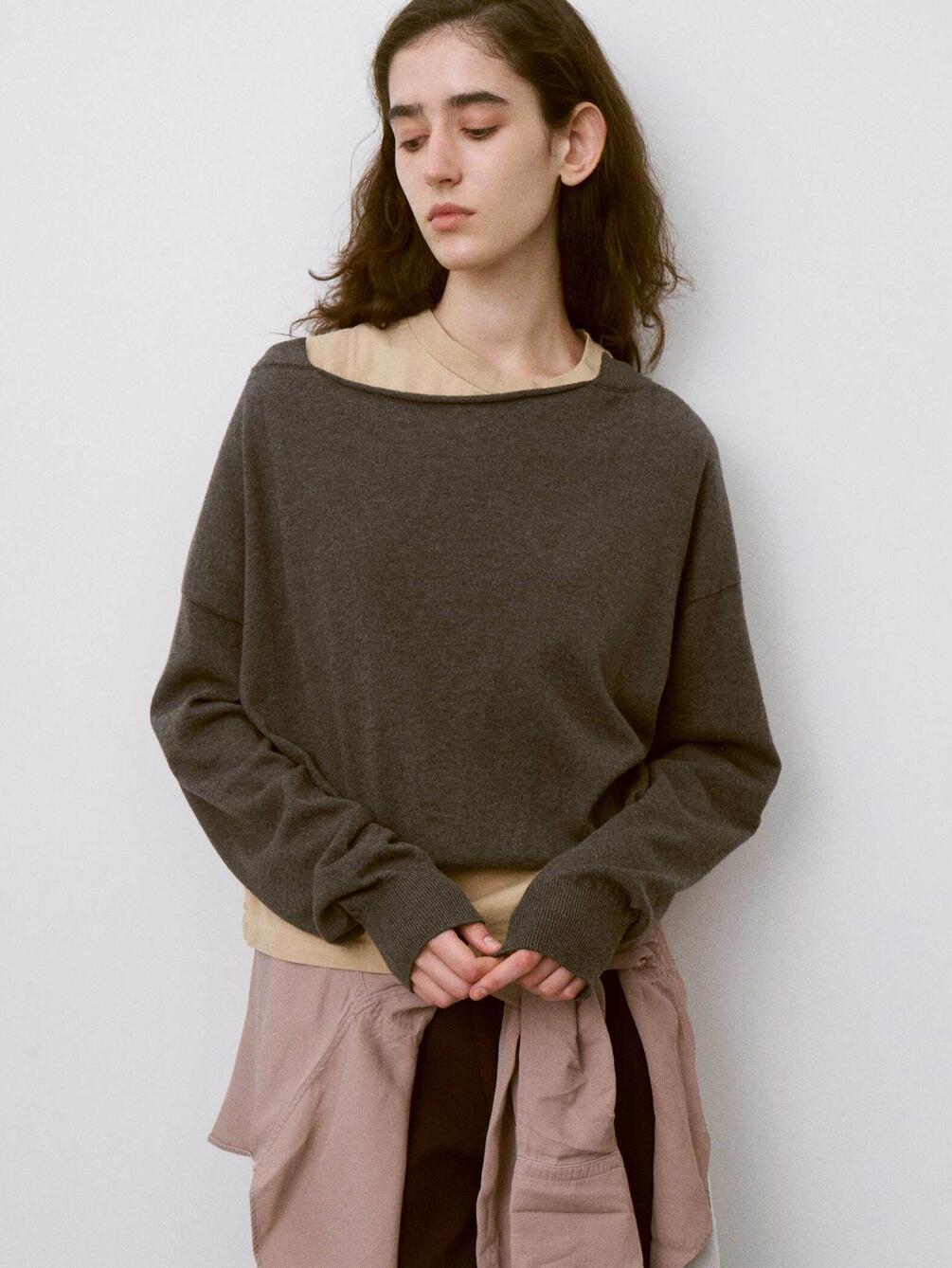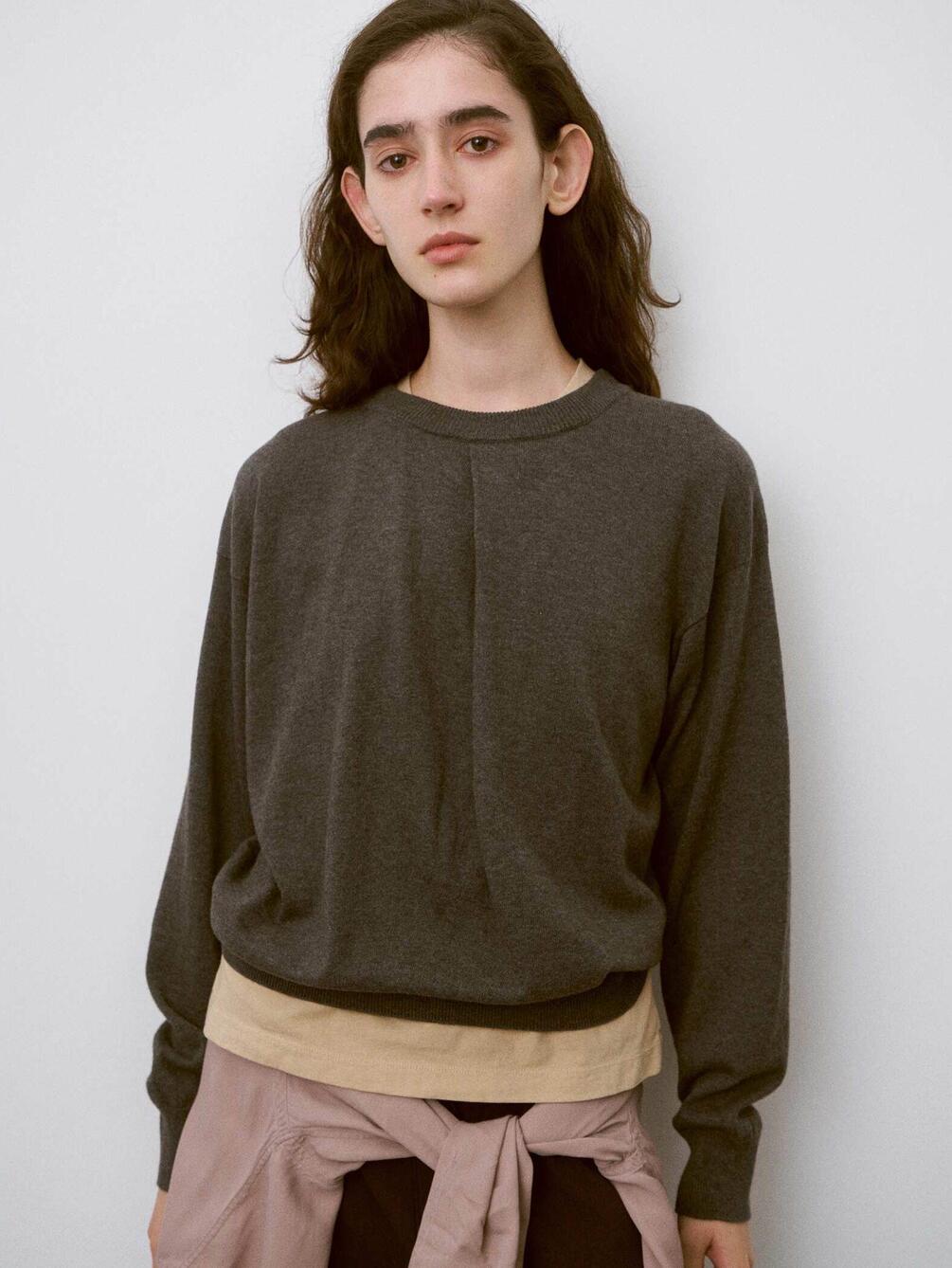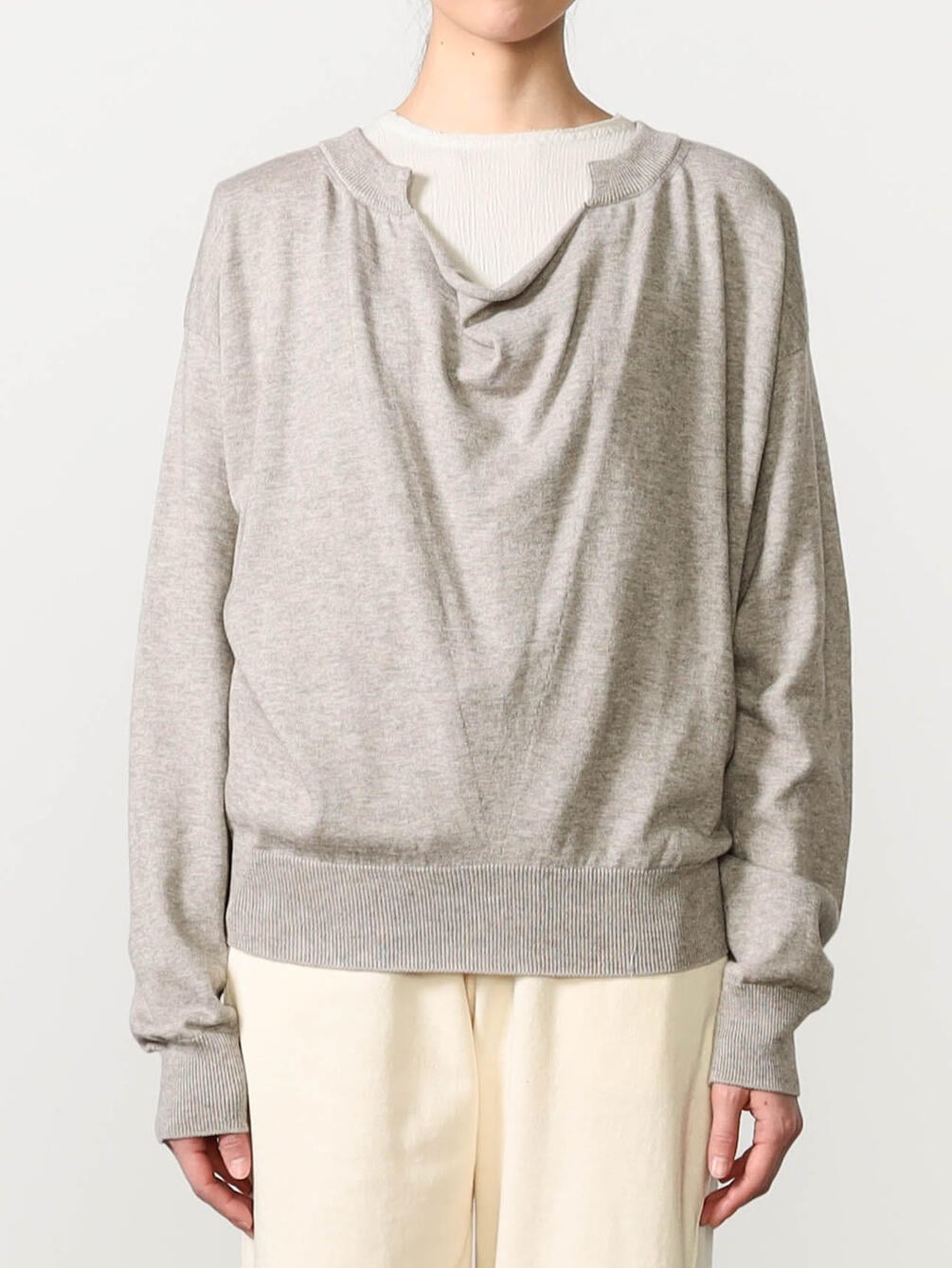 - フロントドレープがポイントの長袖ニット