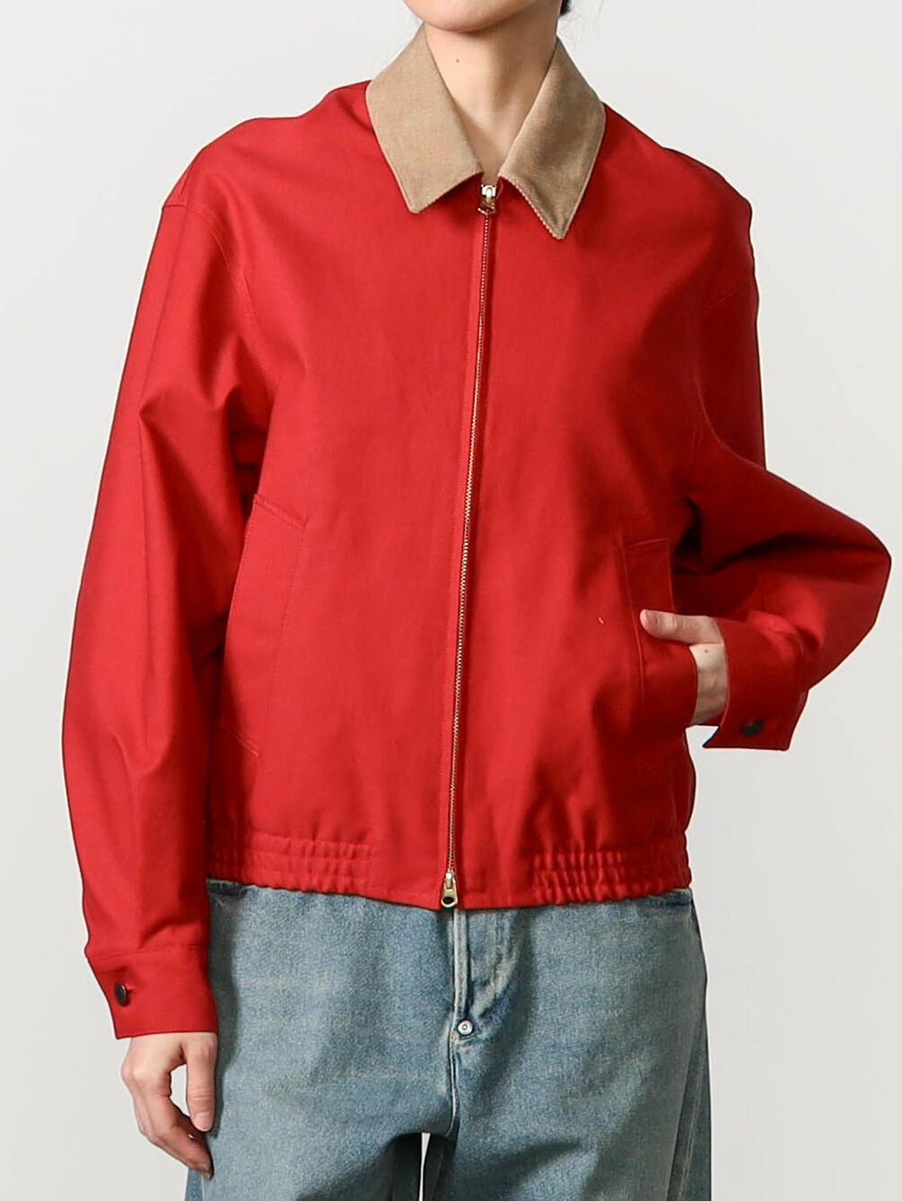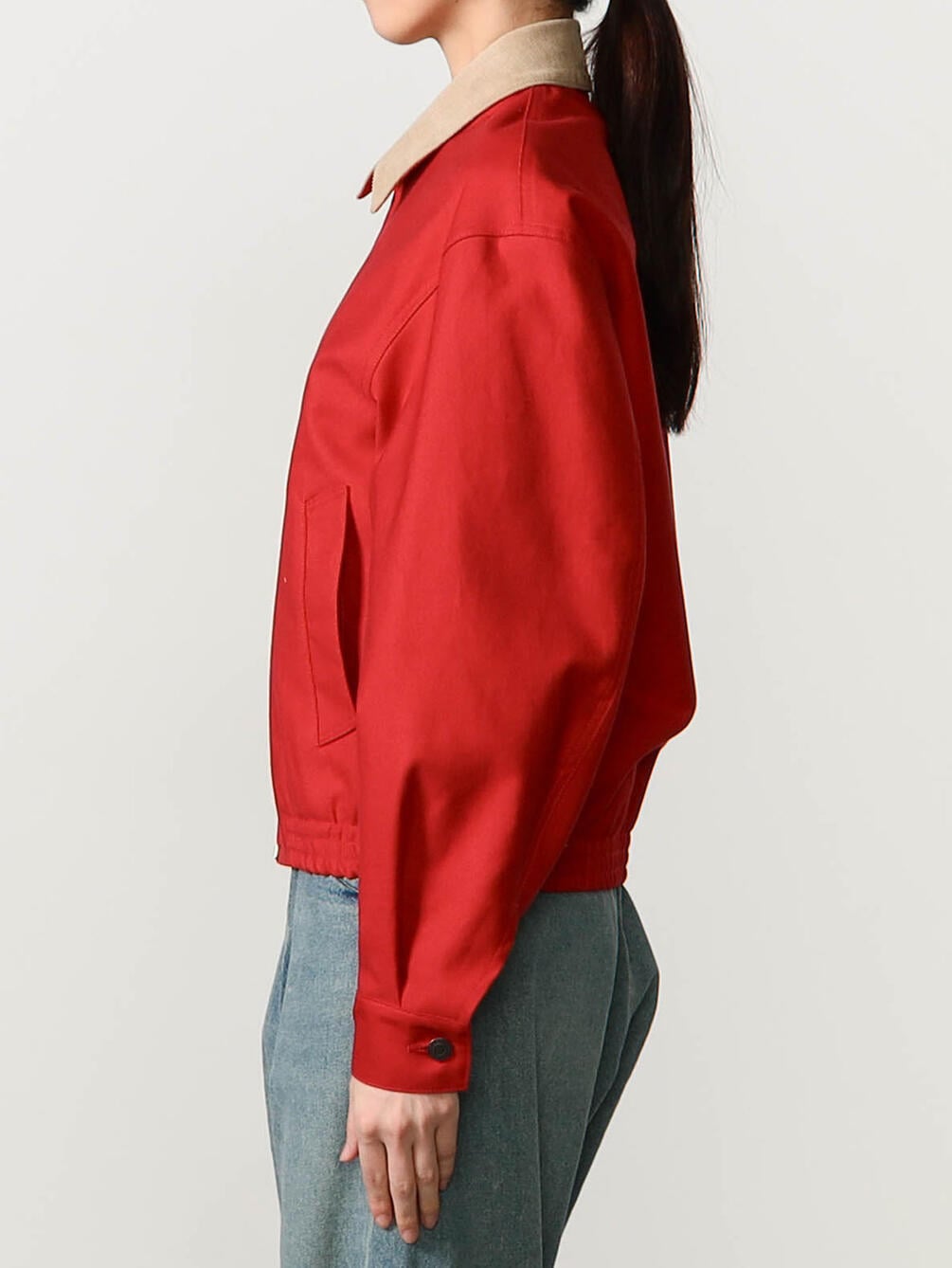 - コントラストが際立つコーデュロイの襟