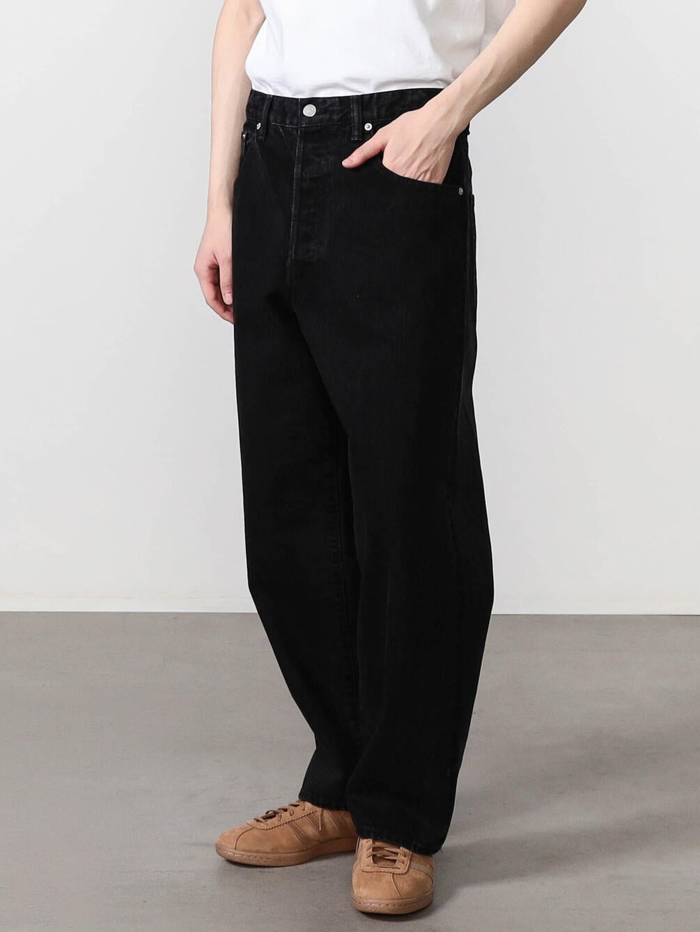 - 洗いのかかったしなやかなセルビッチブラックデニム