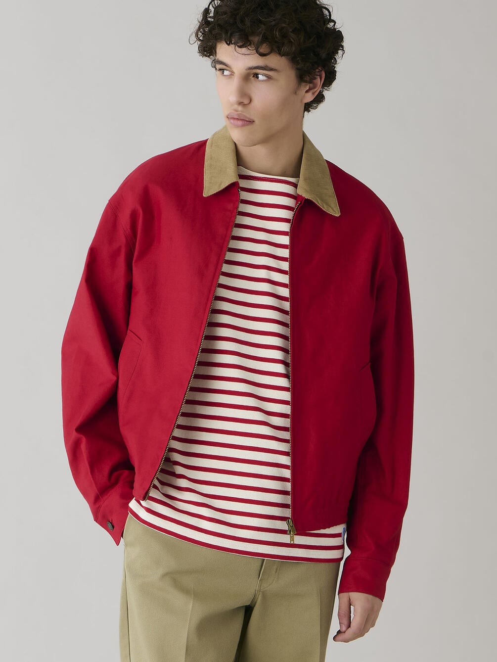 - コントラストが際立つコーデュロイの襟